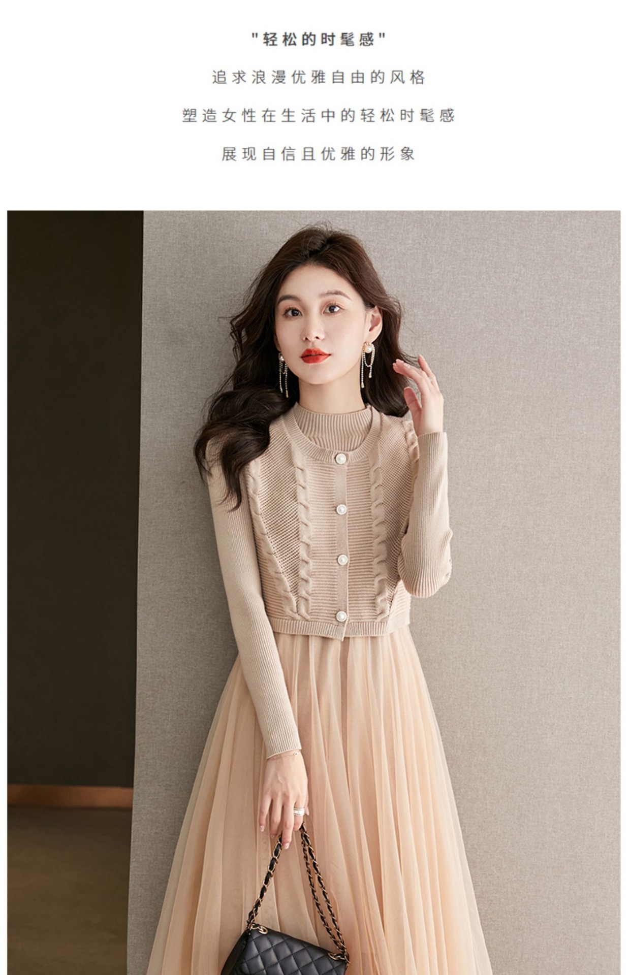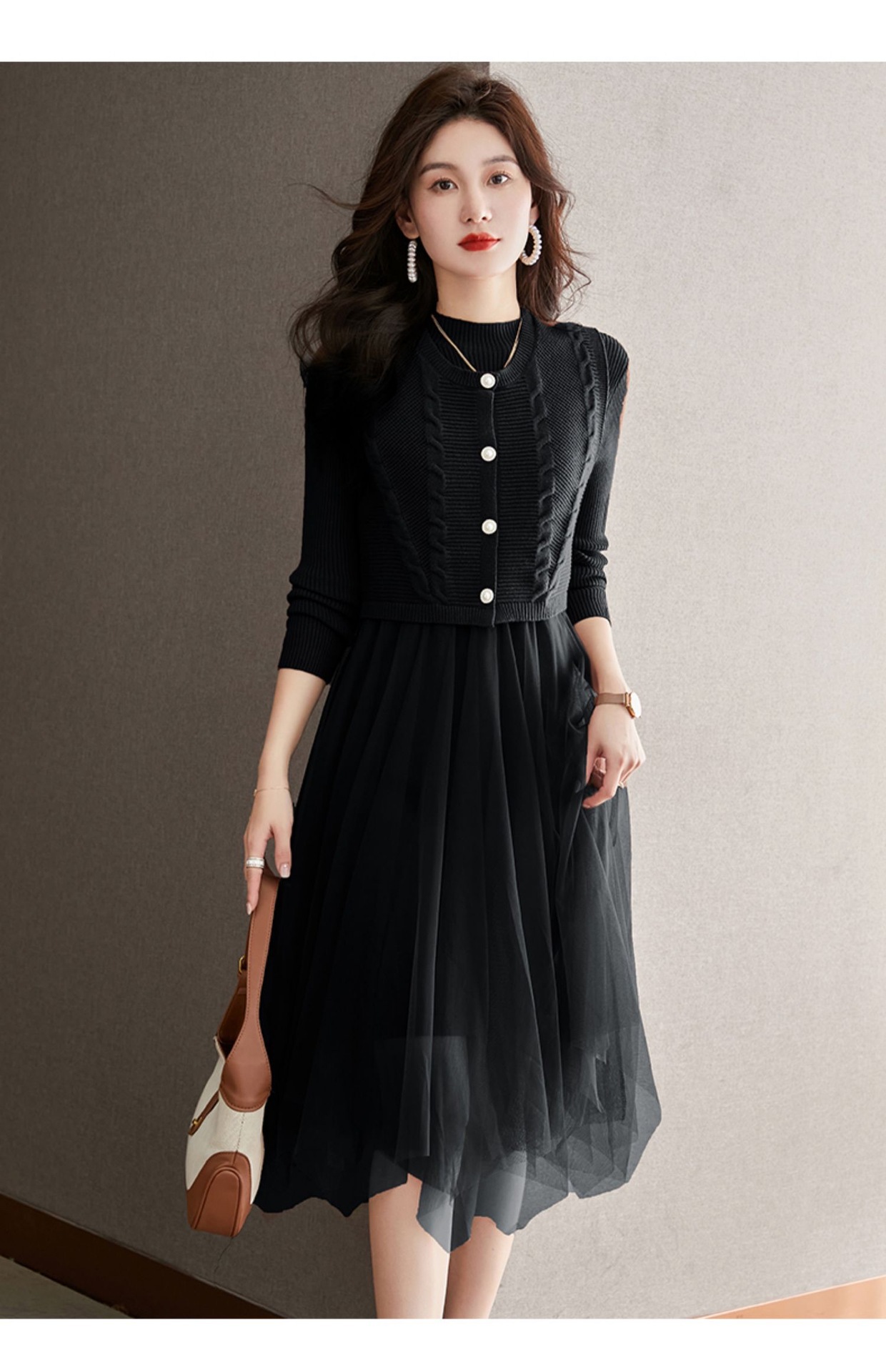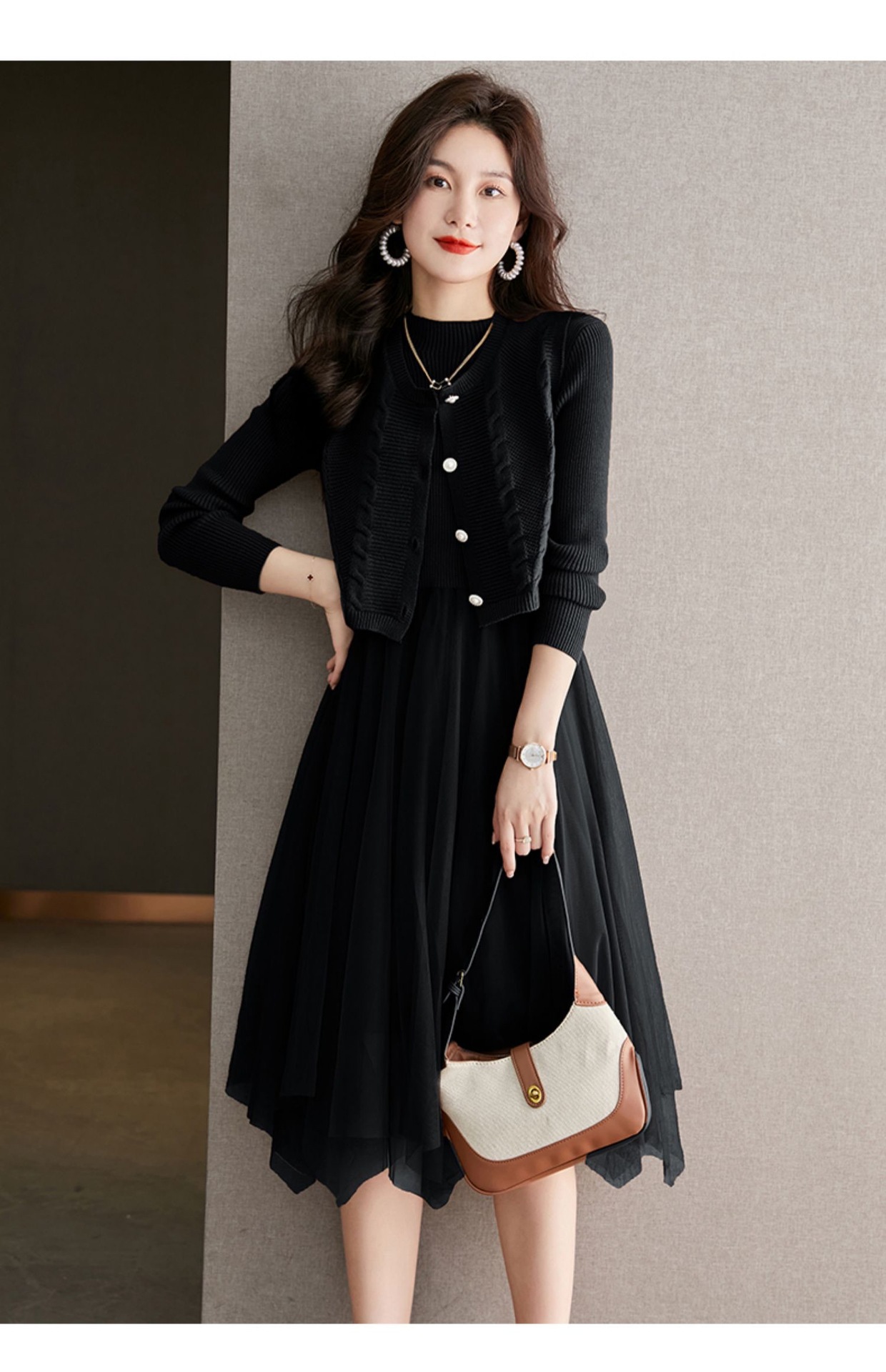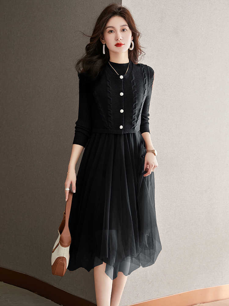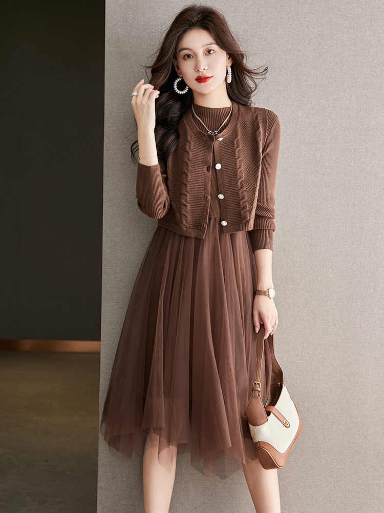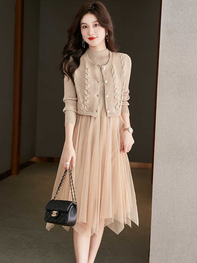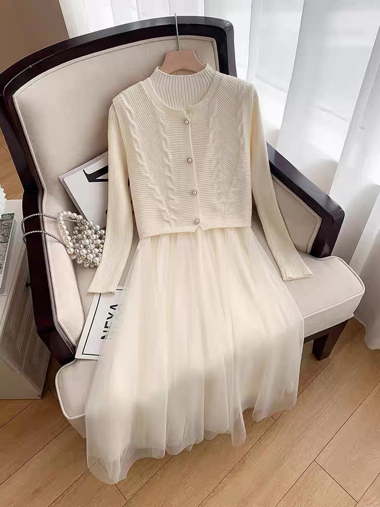 베이직 원피스 투피스 세트 2024 신상 의상 스웨터 이너 니트 조끼 세트 여성 우아함