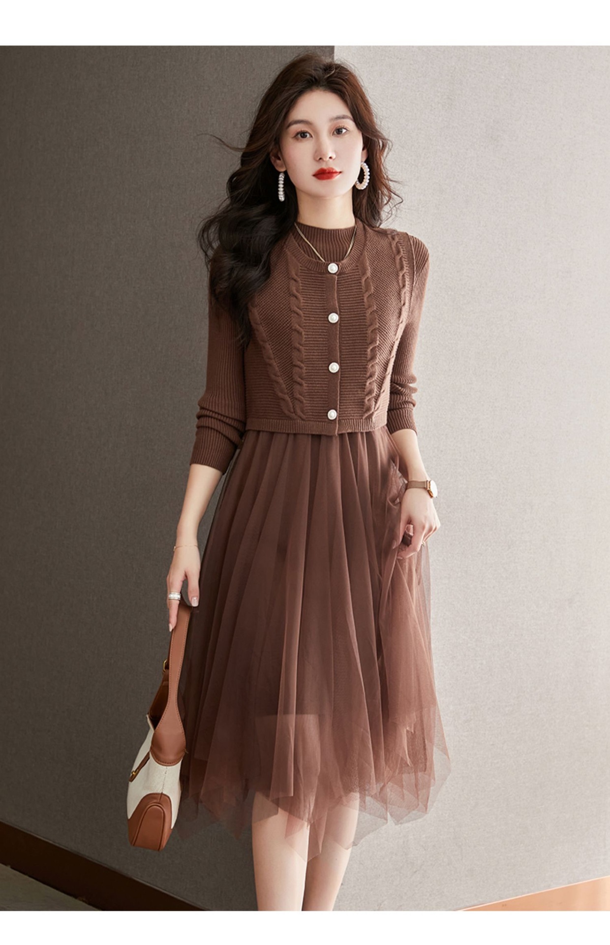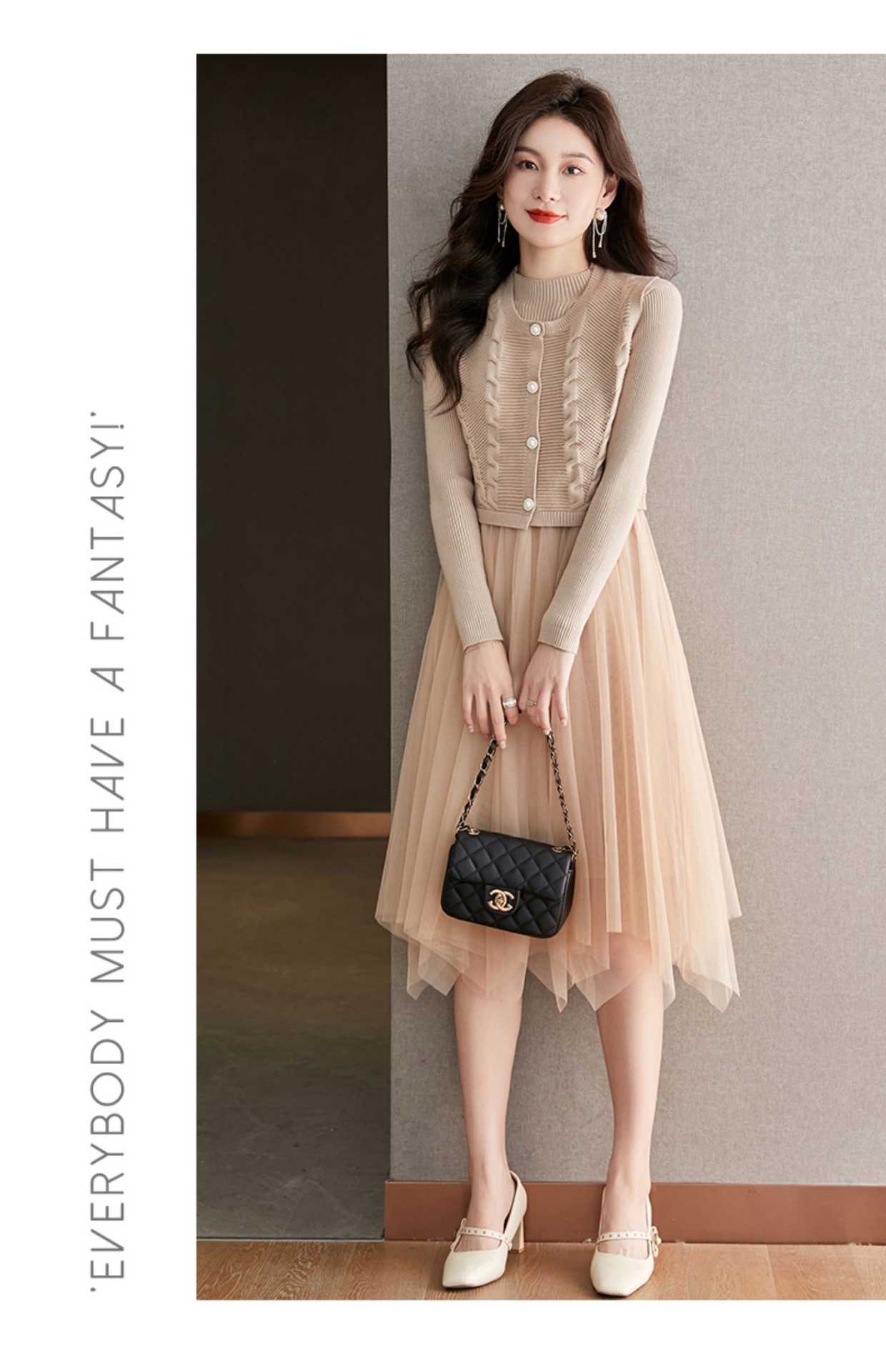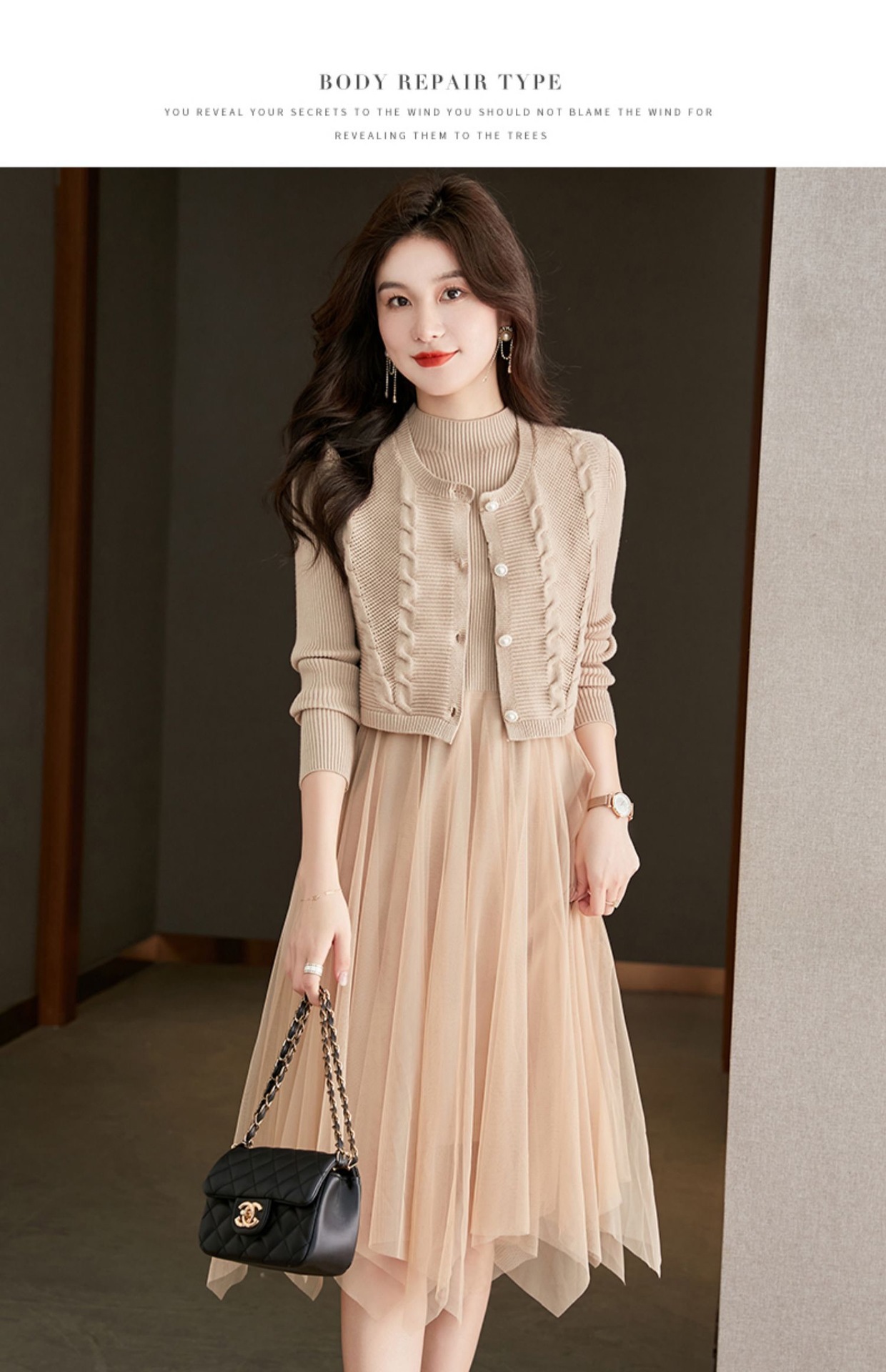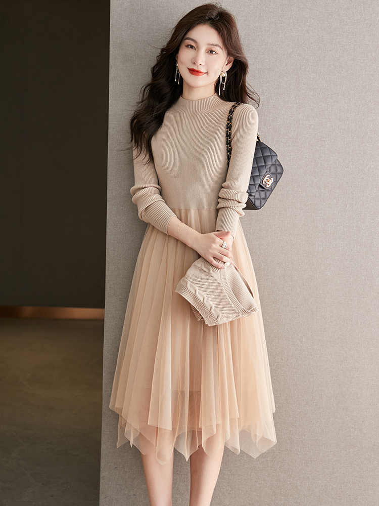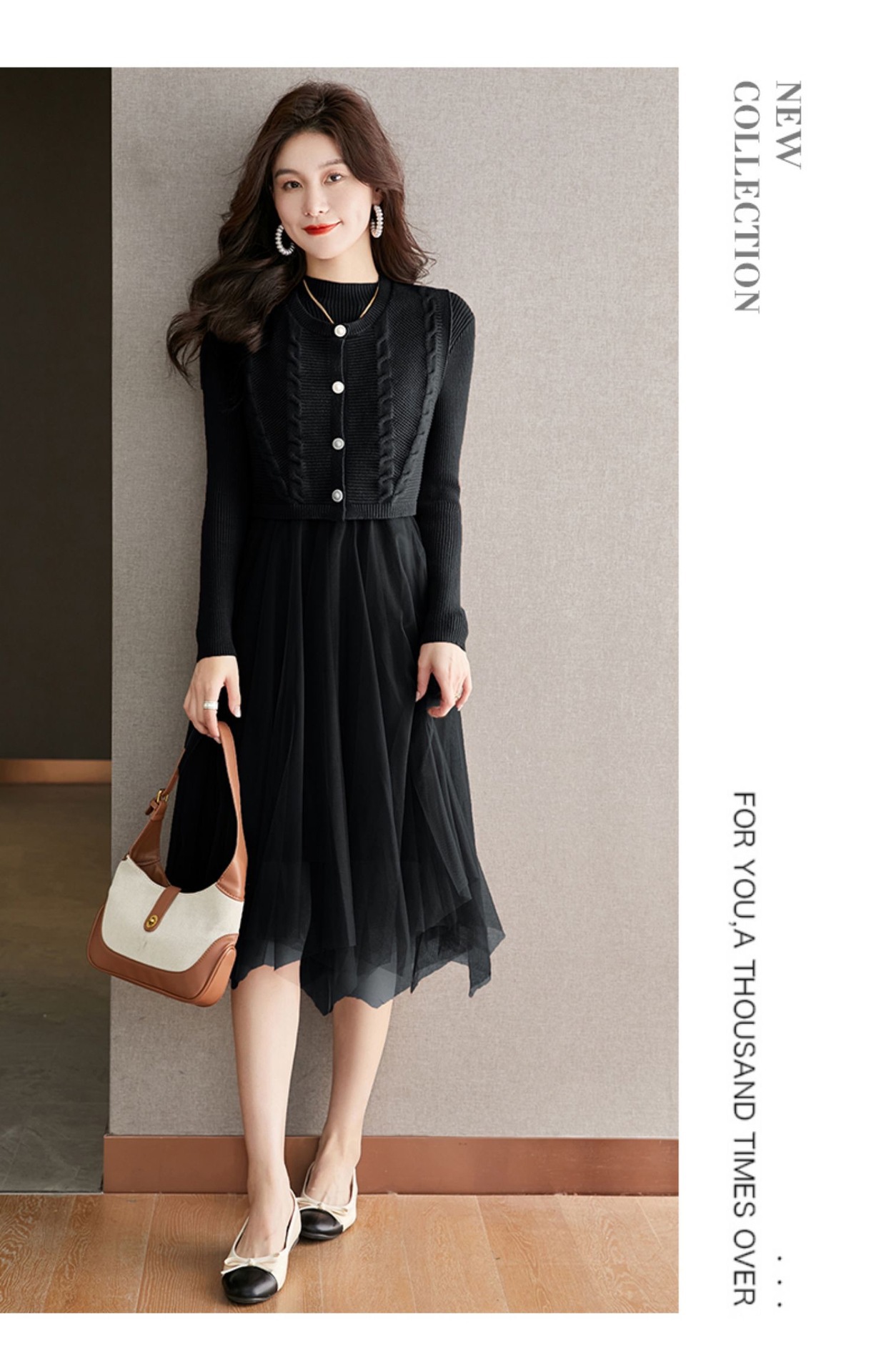 베이직 원피스 투피스 세트 2024 신상 의상 스웨터 이너 니트 조끼 세트 여성 우아함