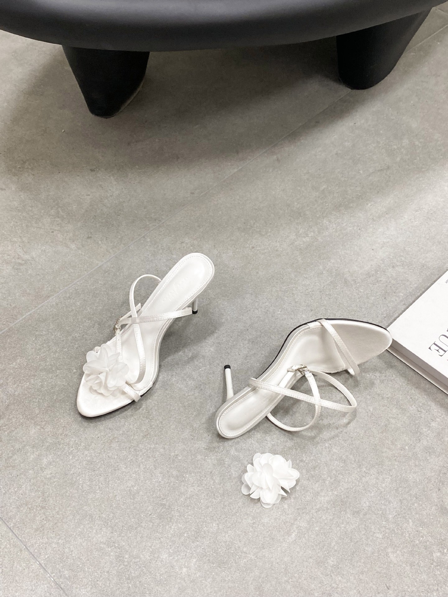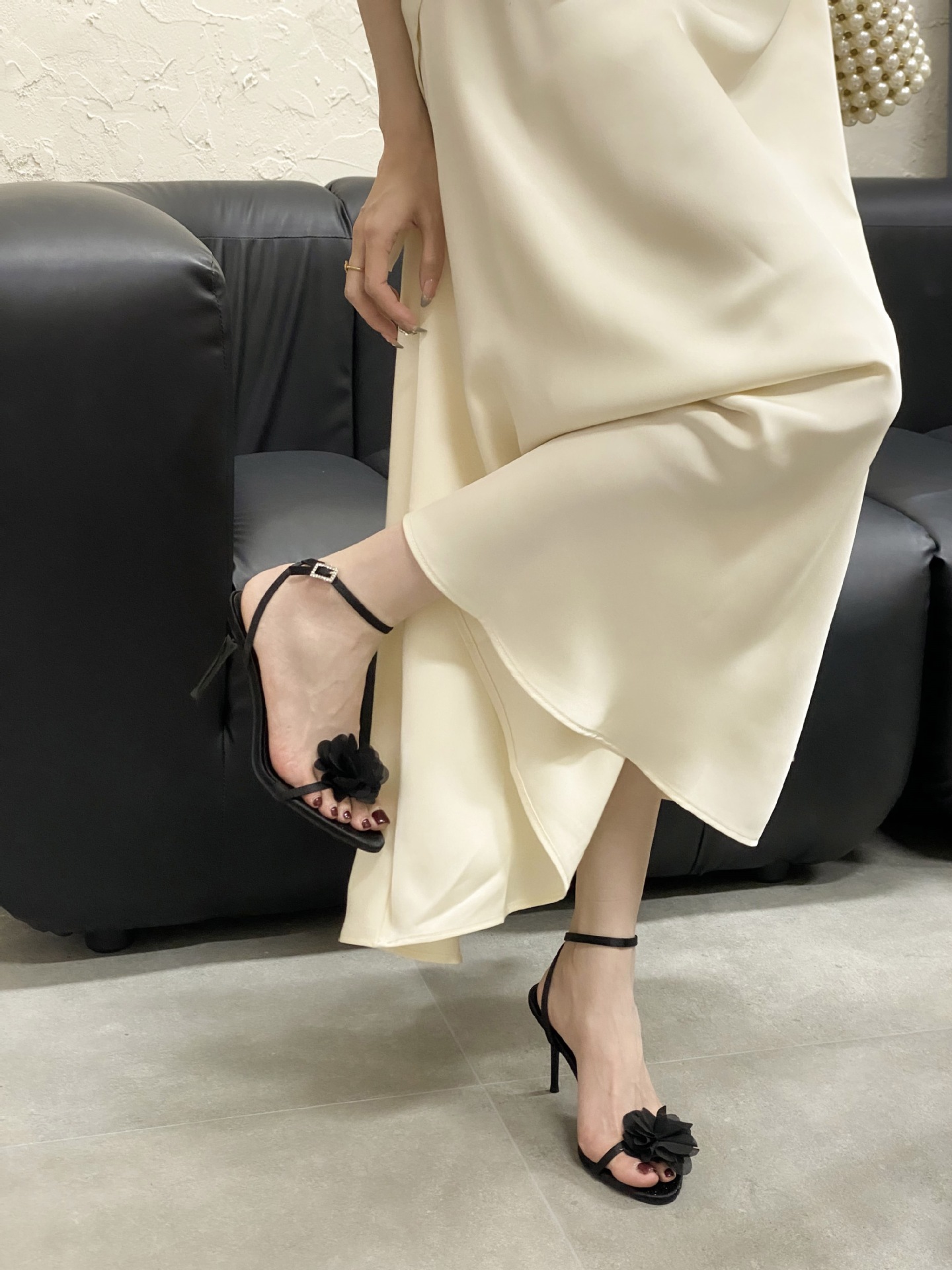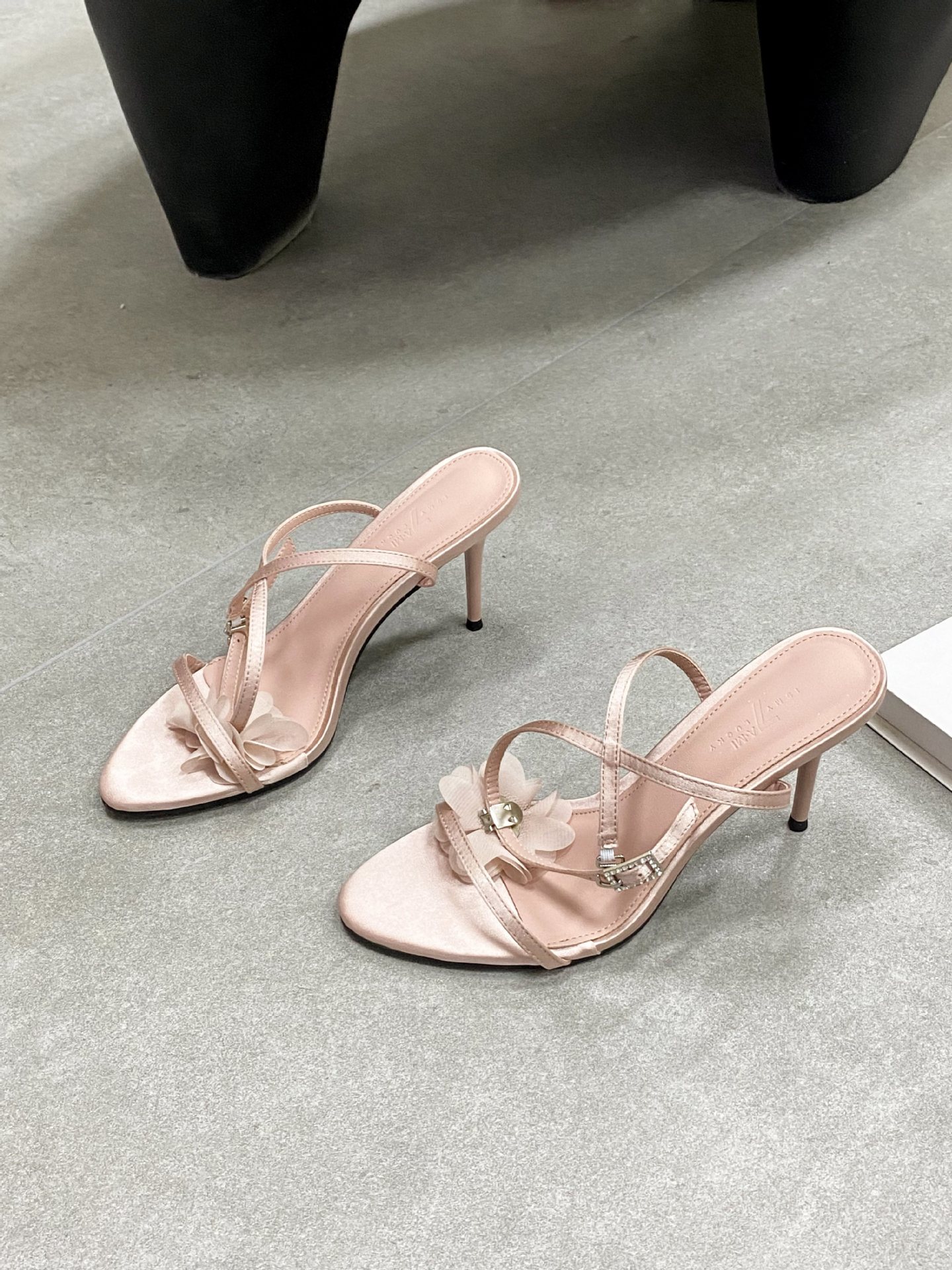 봄 2025 새로운 라운드 발가락 얇은 뒤꿈치 하이힐 우아한 슬리밍 프랑스 세련된 아름다운 여성 오픈 발가락 샌들
