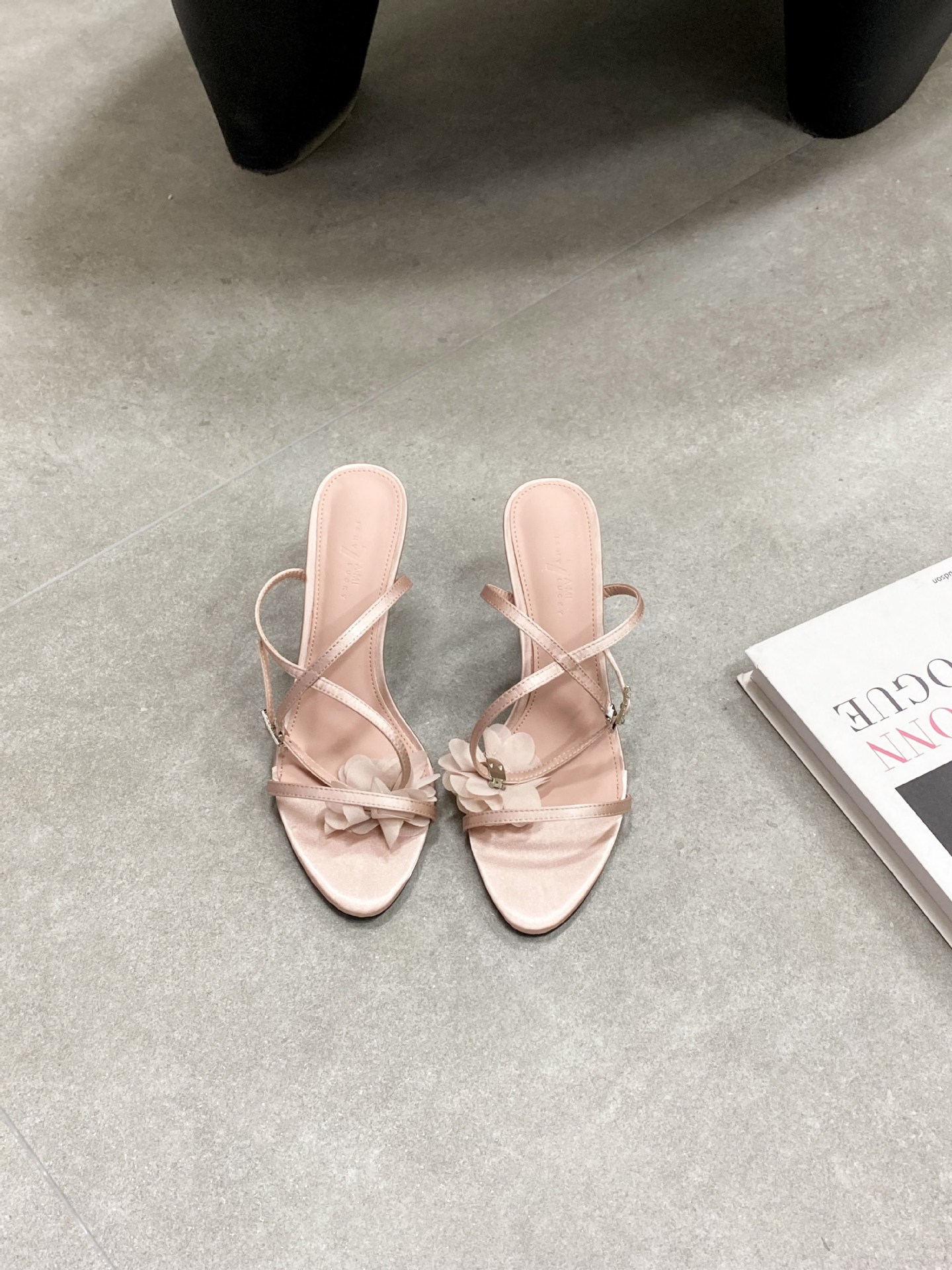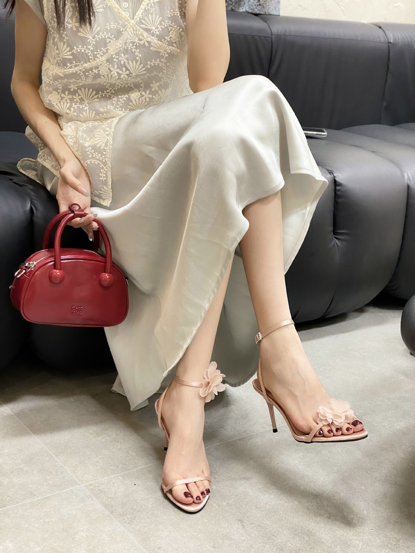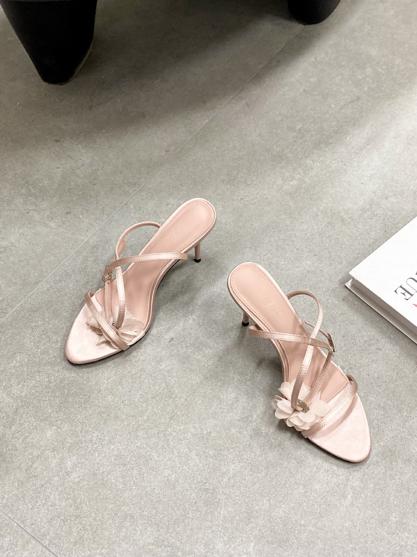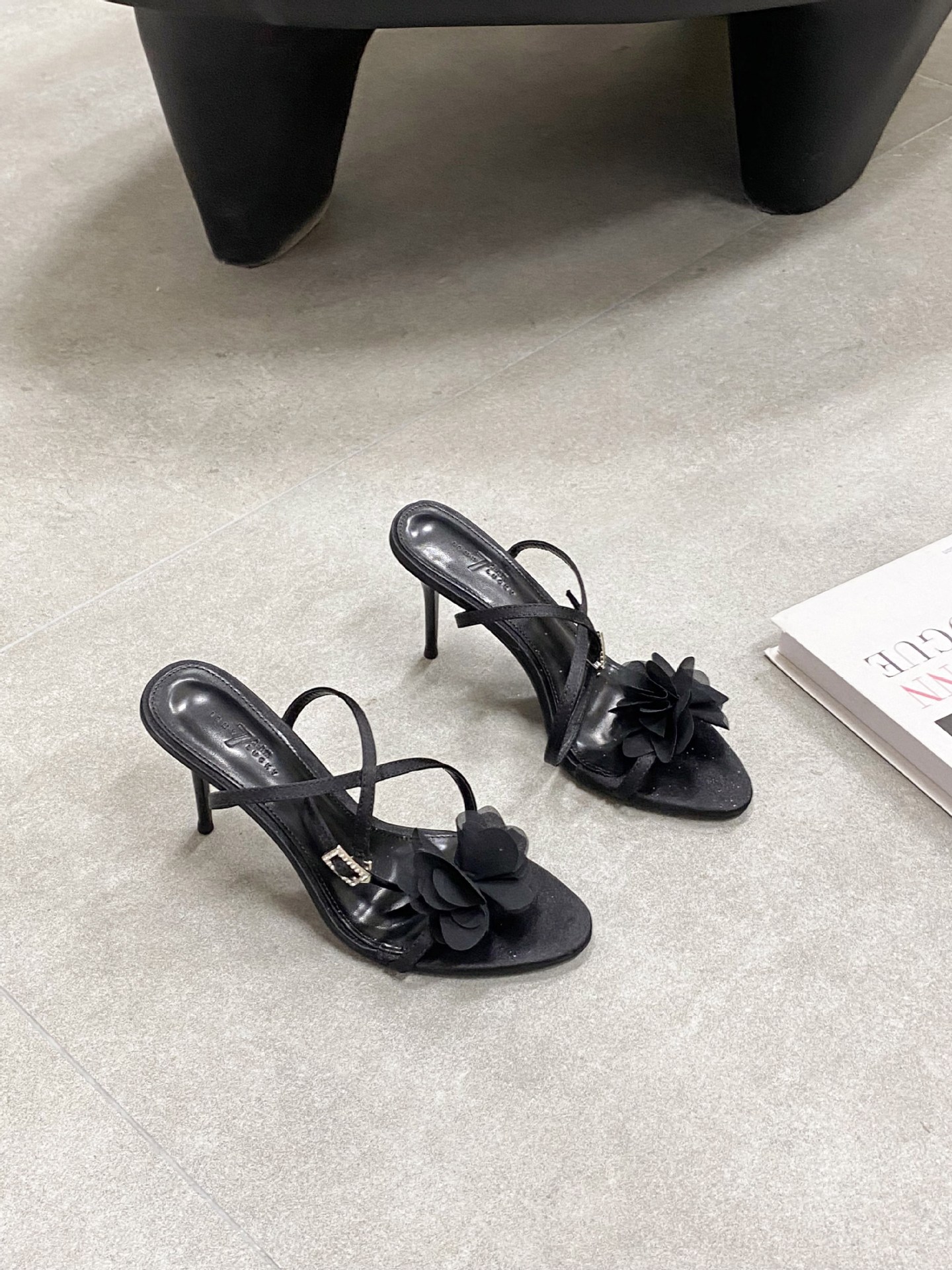 봄 2025 새로운 라운드 발가락 얇은 뒤꿈치 하이힐 우아한 슬리밍 프랑스 세련된 아름다운 여성 오픈 발가락 샌들