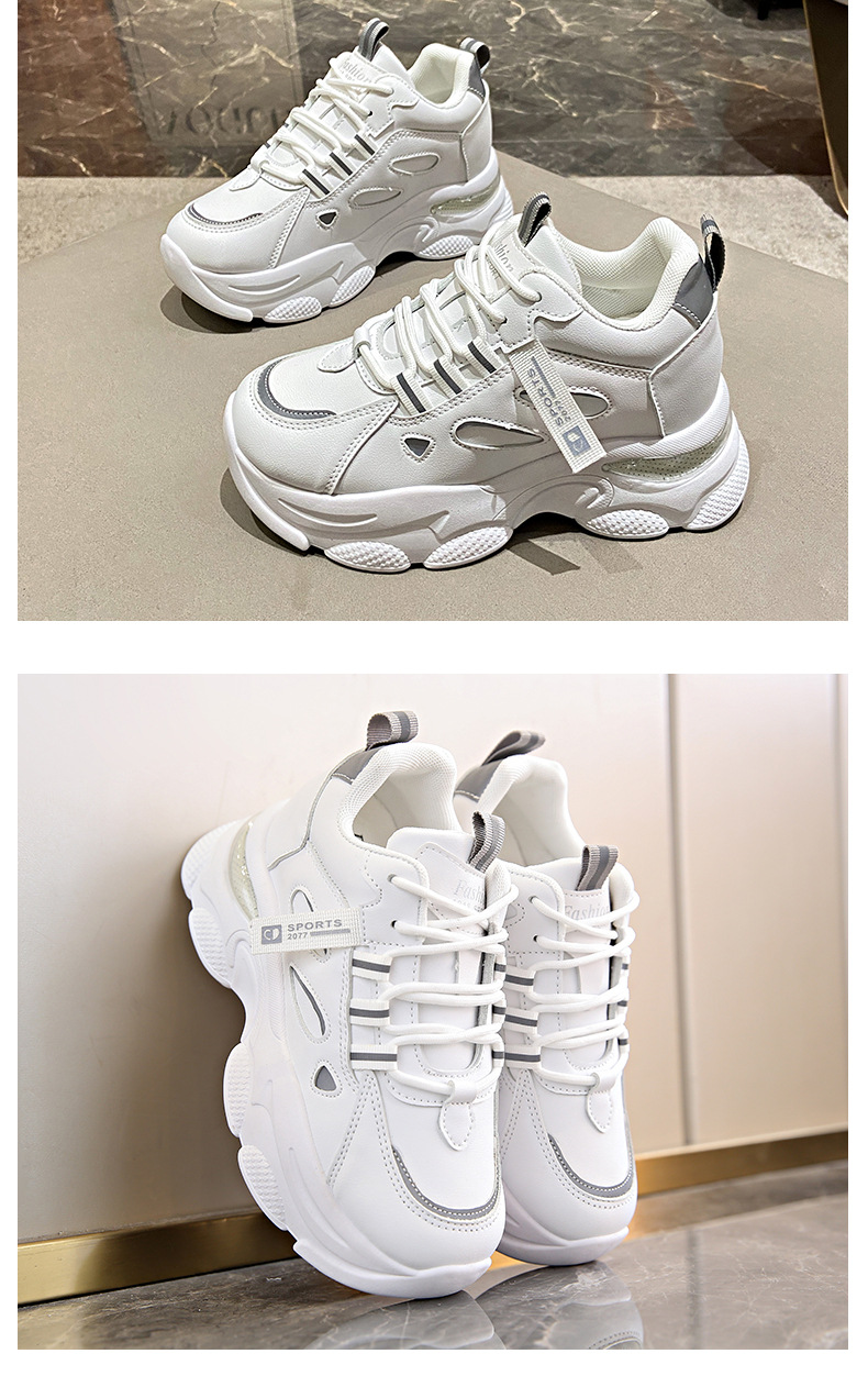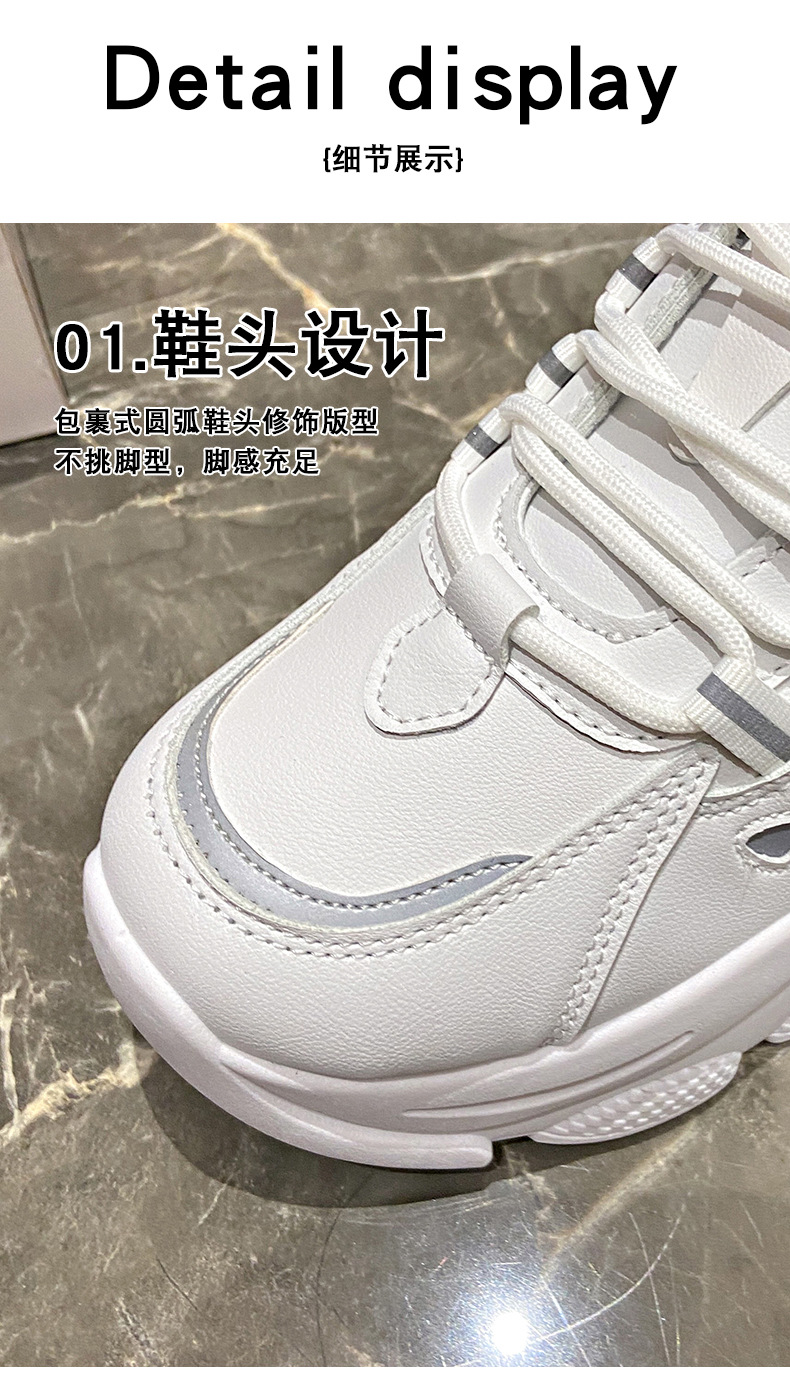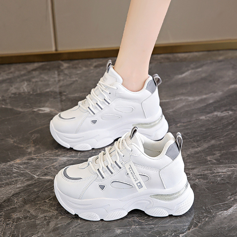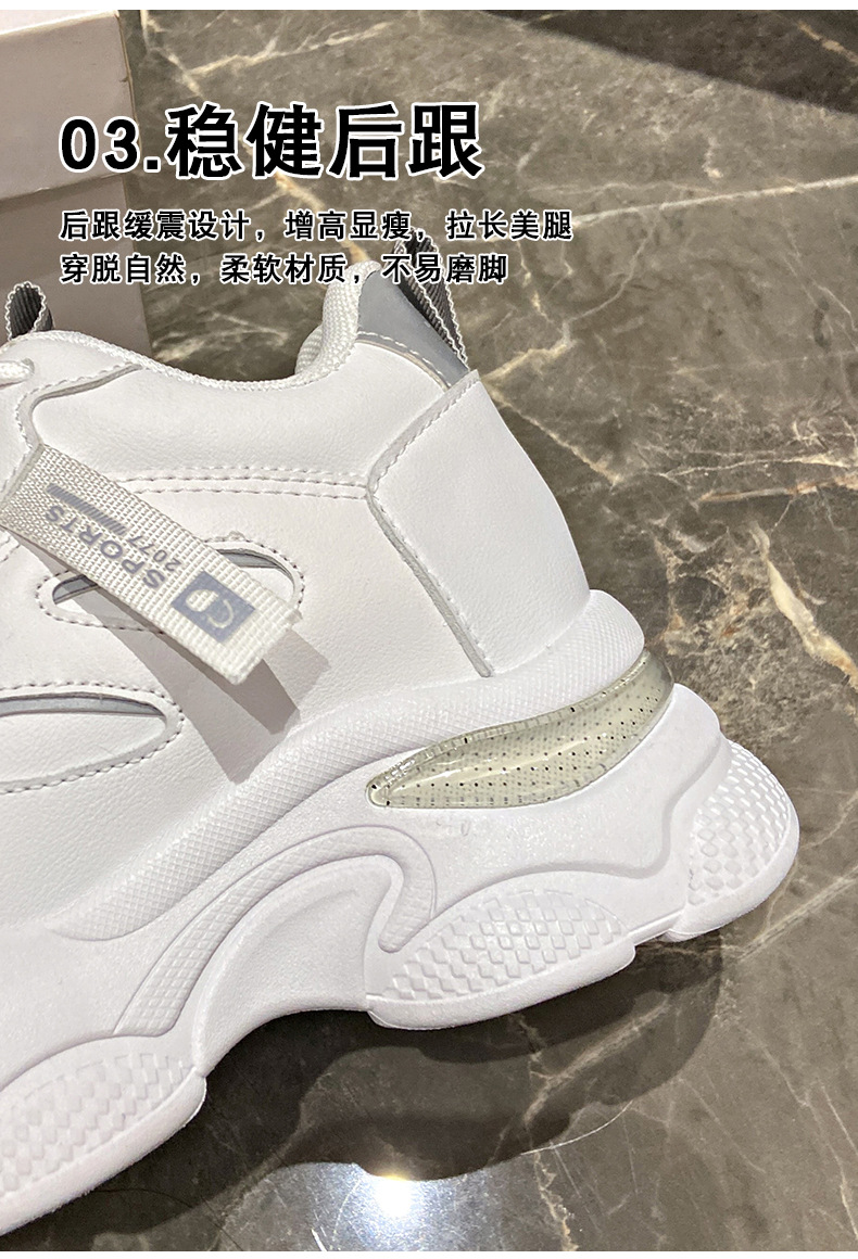 대외 무역 핫 스타일 2025 새로운 봄, 가을 다목적 흰색 가죽 내부 높이 증가 운동화 두꺼운 밑창 캐주얼 아빠 신발스토어 가기
