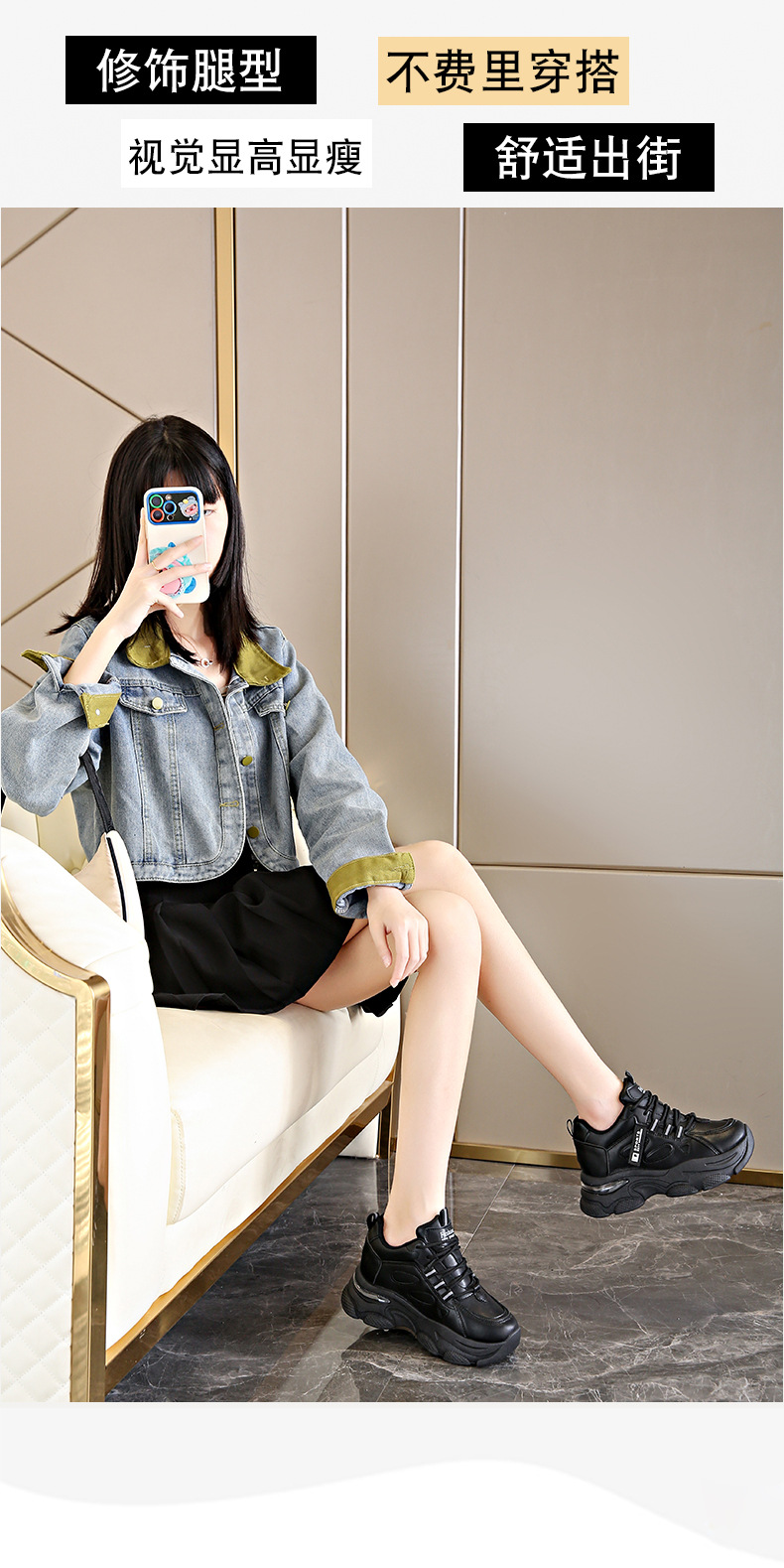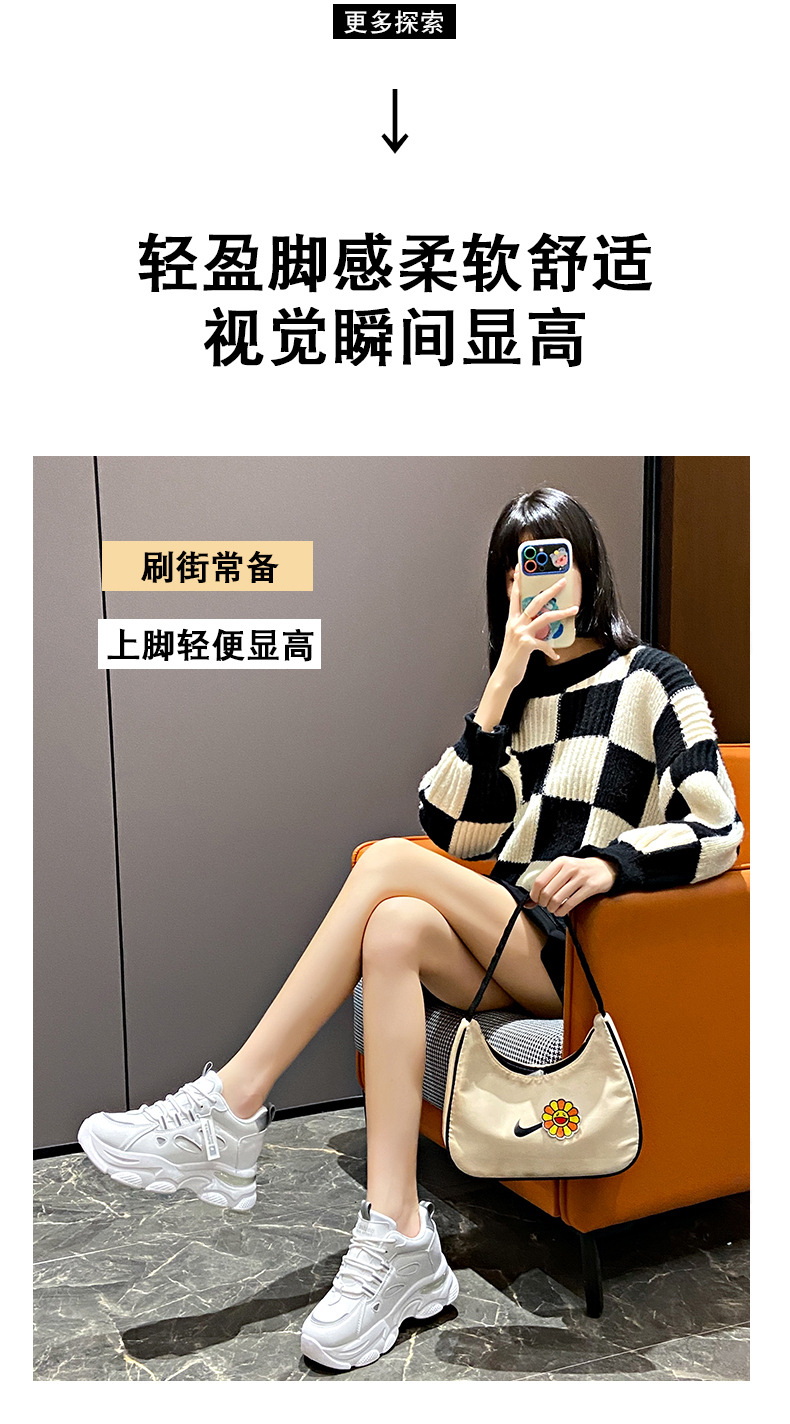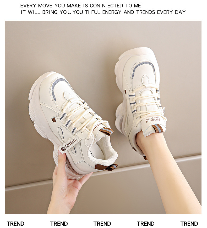 대외 무역 핫 스타일 2025 새로운 봄, 가을 다목적 흰색 가죽 내부 높이 증가 운동화 두꺼운 밑창 캐주얼 아빠 신발스토어 가기