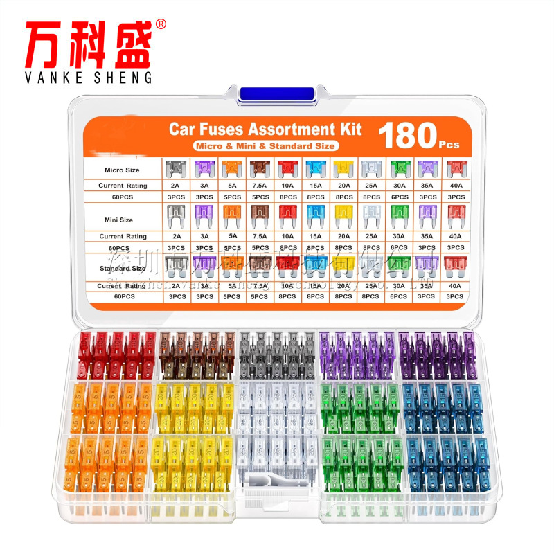 180PCS 새로운 자동차 퓨즈 박스형 소형 퓨즈 중형 퓨즈 미니 아연 퓨즈