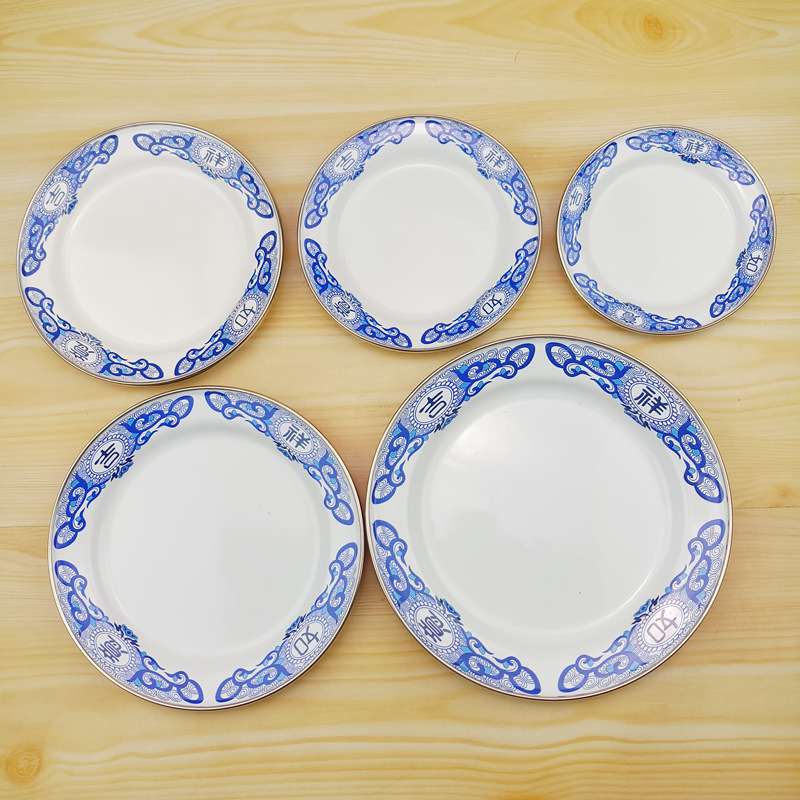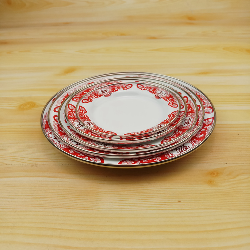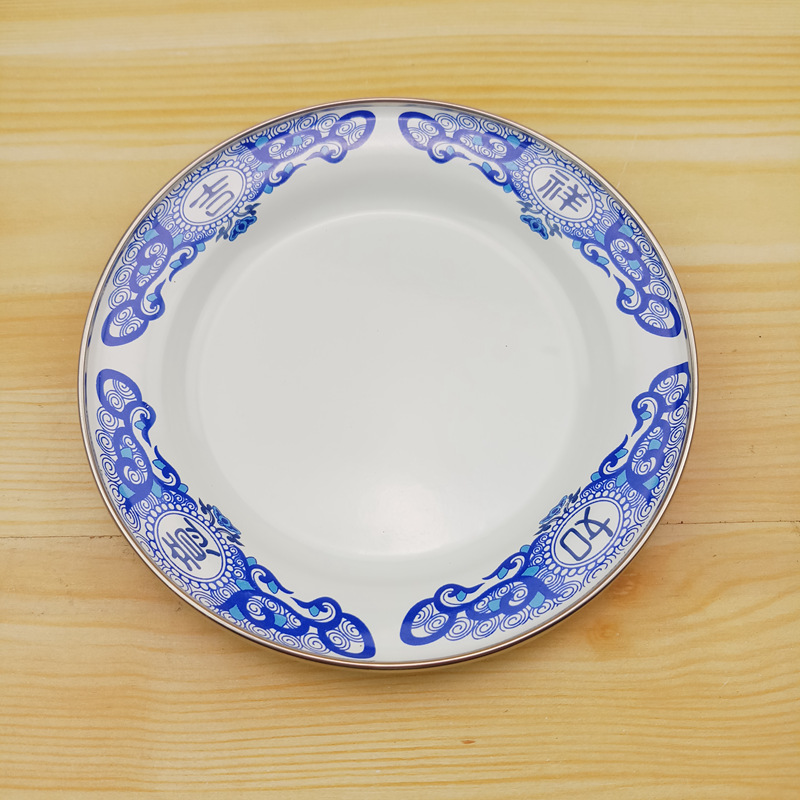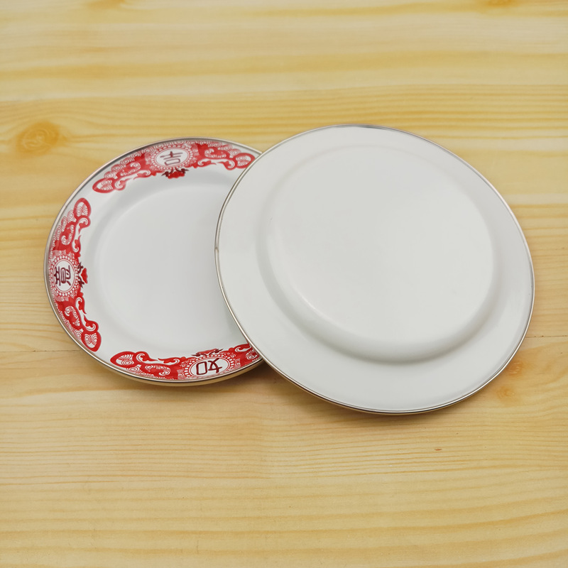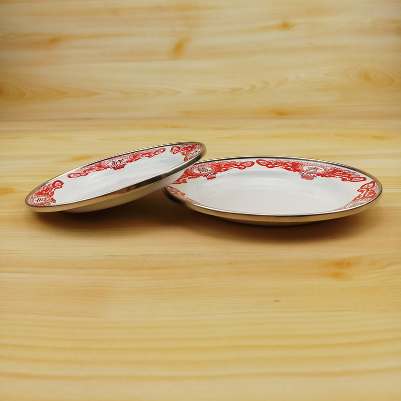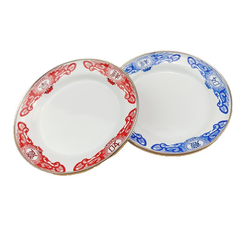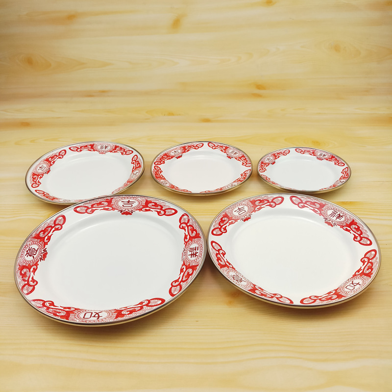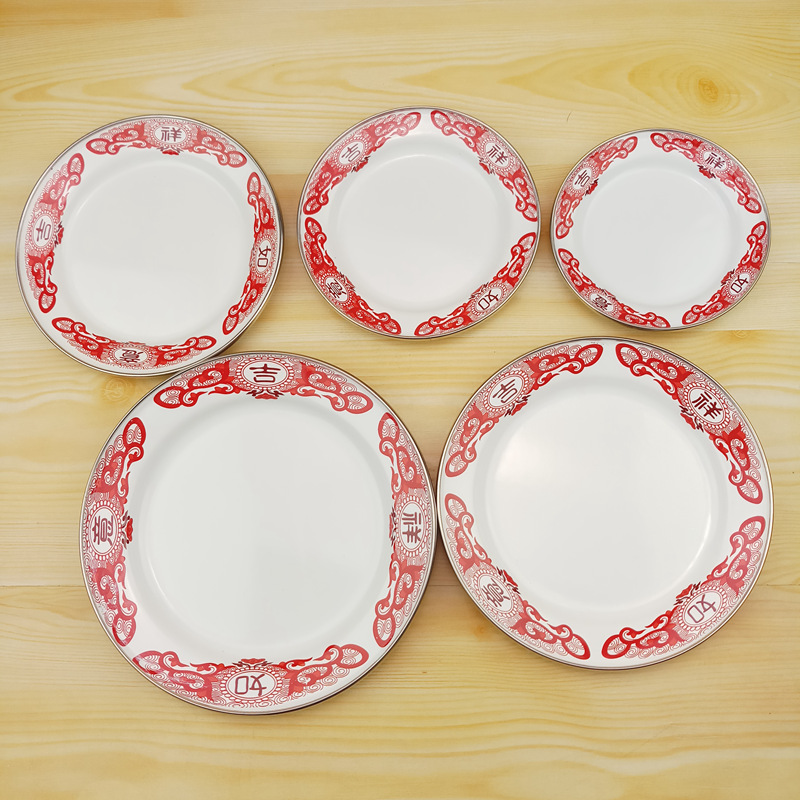 두꺼운 에나멜 접시, 붉은색 상서로운 럭키 플랫 플레이트, 스테인레스 스틸 에나멜 두꺼운 접시, 스낵 접시, 전골 꼬치
