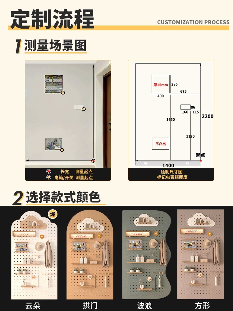 스토리지 홀 보드 포치 솔리드 우드 교수형 코트 랙 스토리지 랙 맞춤형 홈 전기 미터 박스, 구름 벽 열 차단