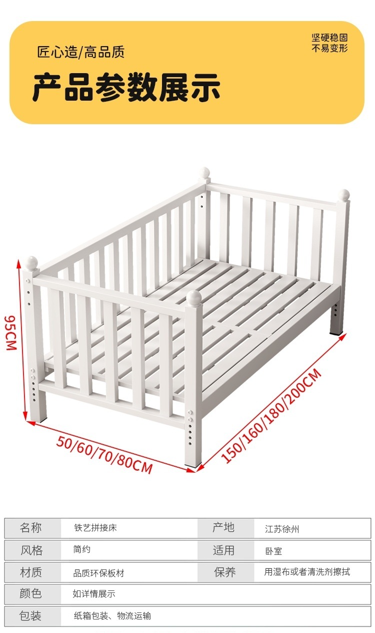 어린이 접합 침대 철 아기 싱글 침대 가드 레일 아기 확장 사이드 침대 어린이 낙하 방지 리프팅 유아용 침대