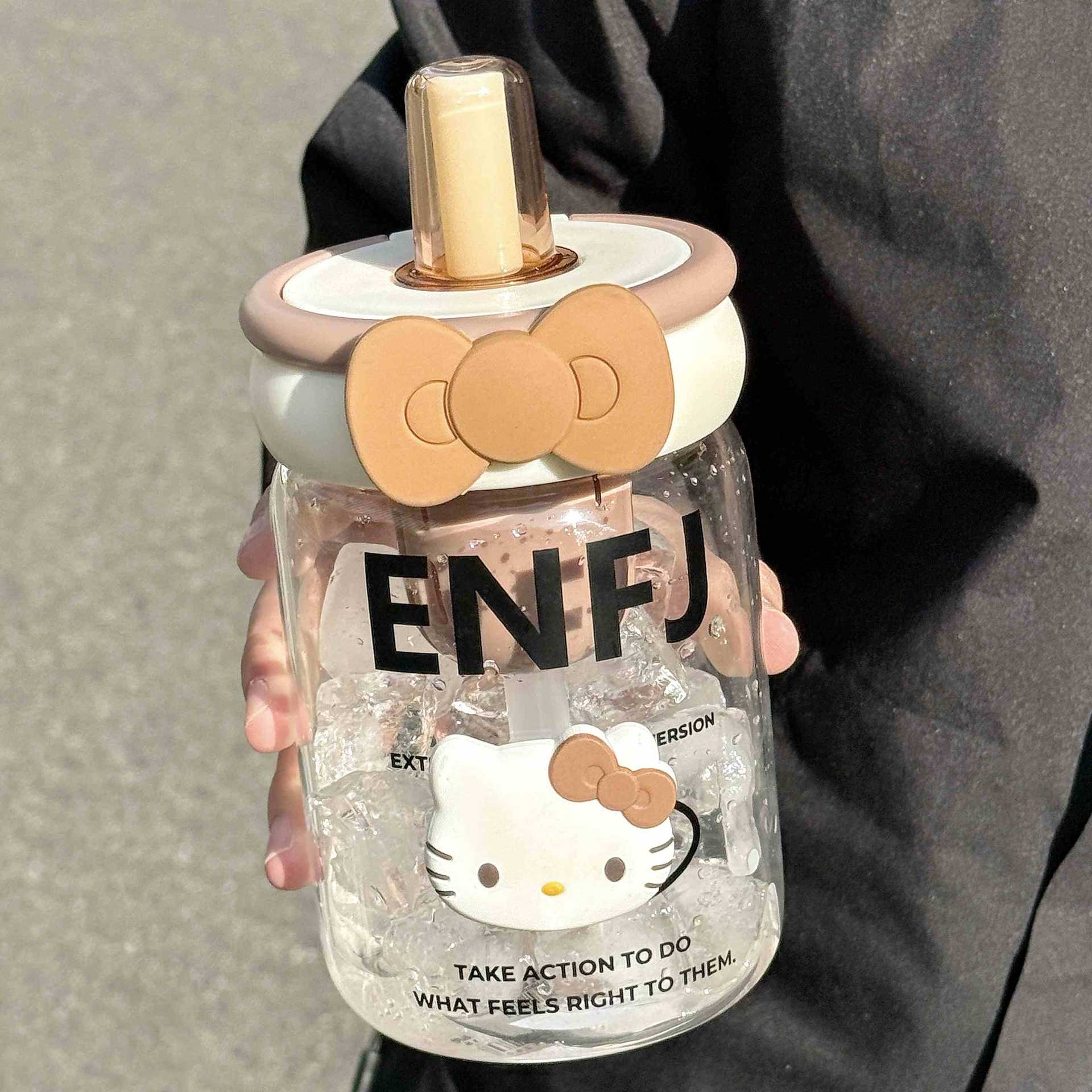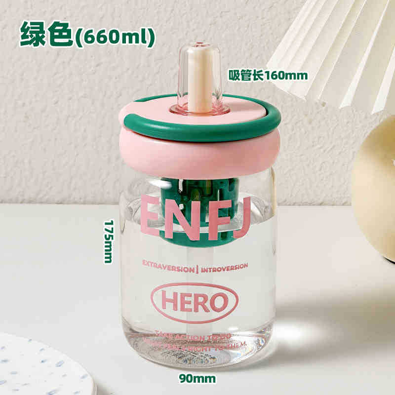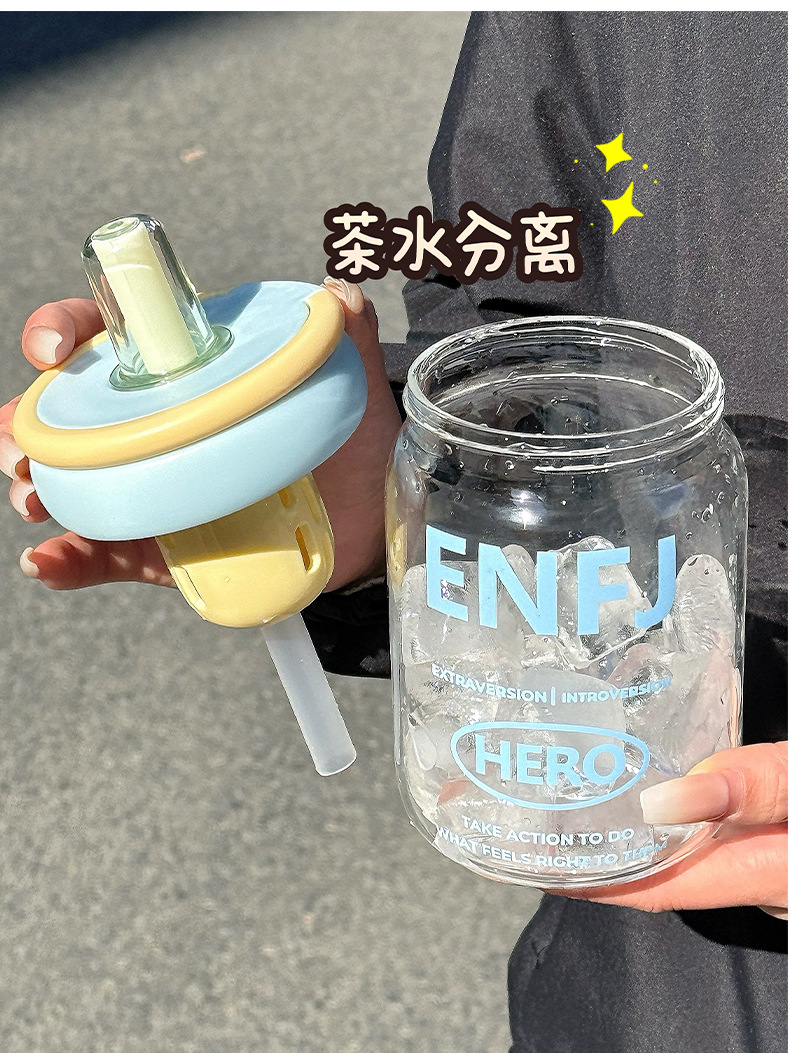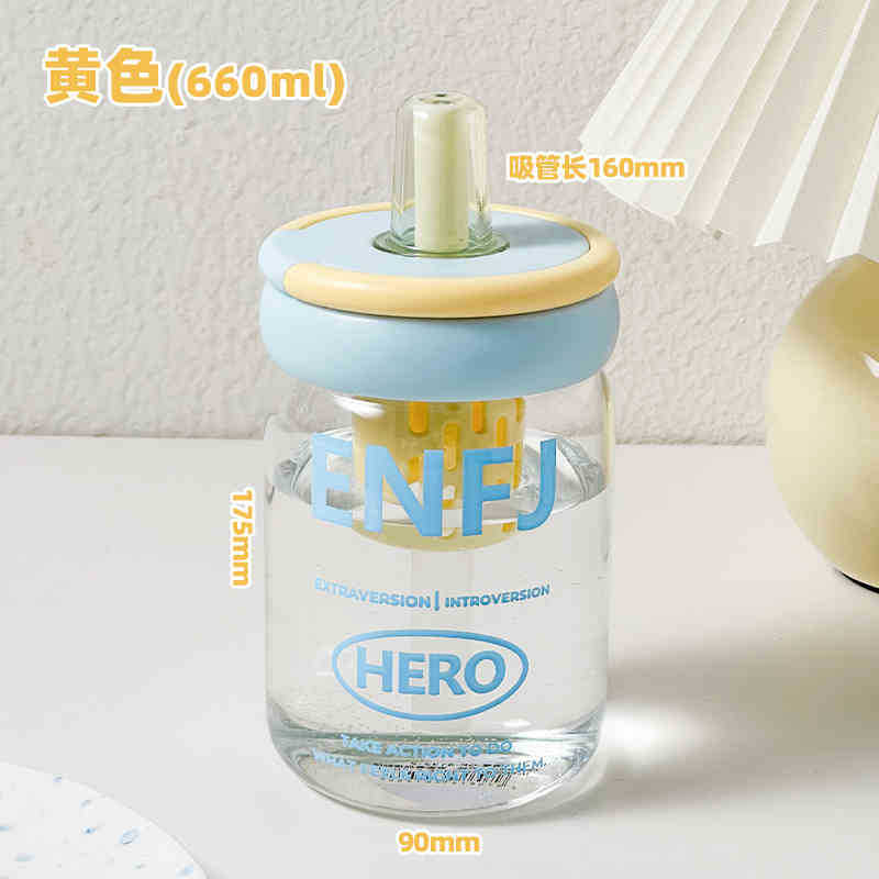 소녀를위한 빨대를 가진 귀여운 유리 컵 높은 색상 가치 큰 용량 데스크탑 차 물 분리 거품 차 컵 높은 온도 저항