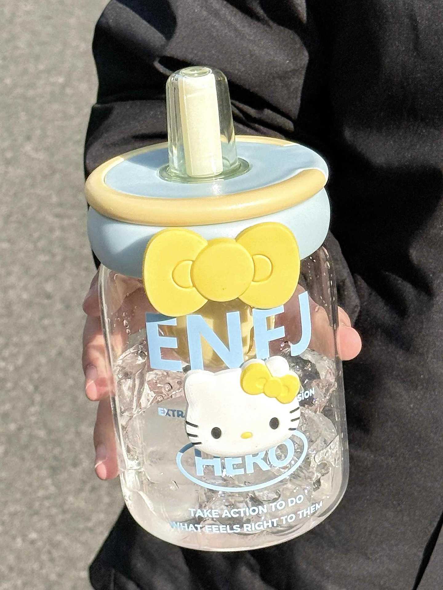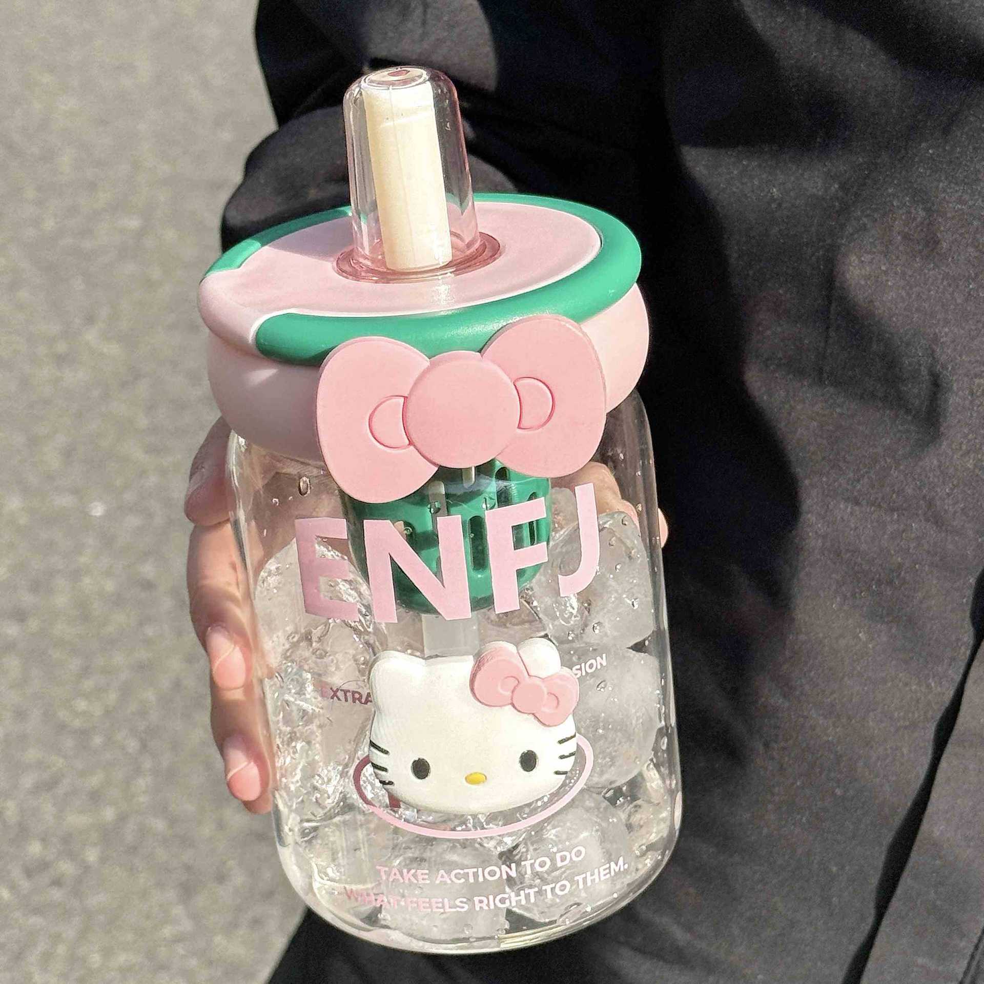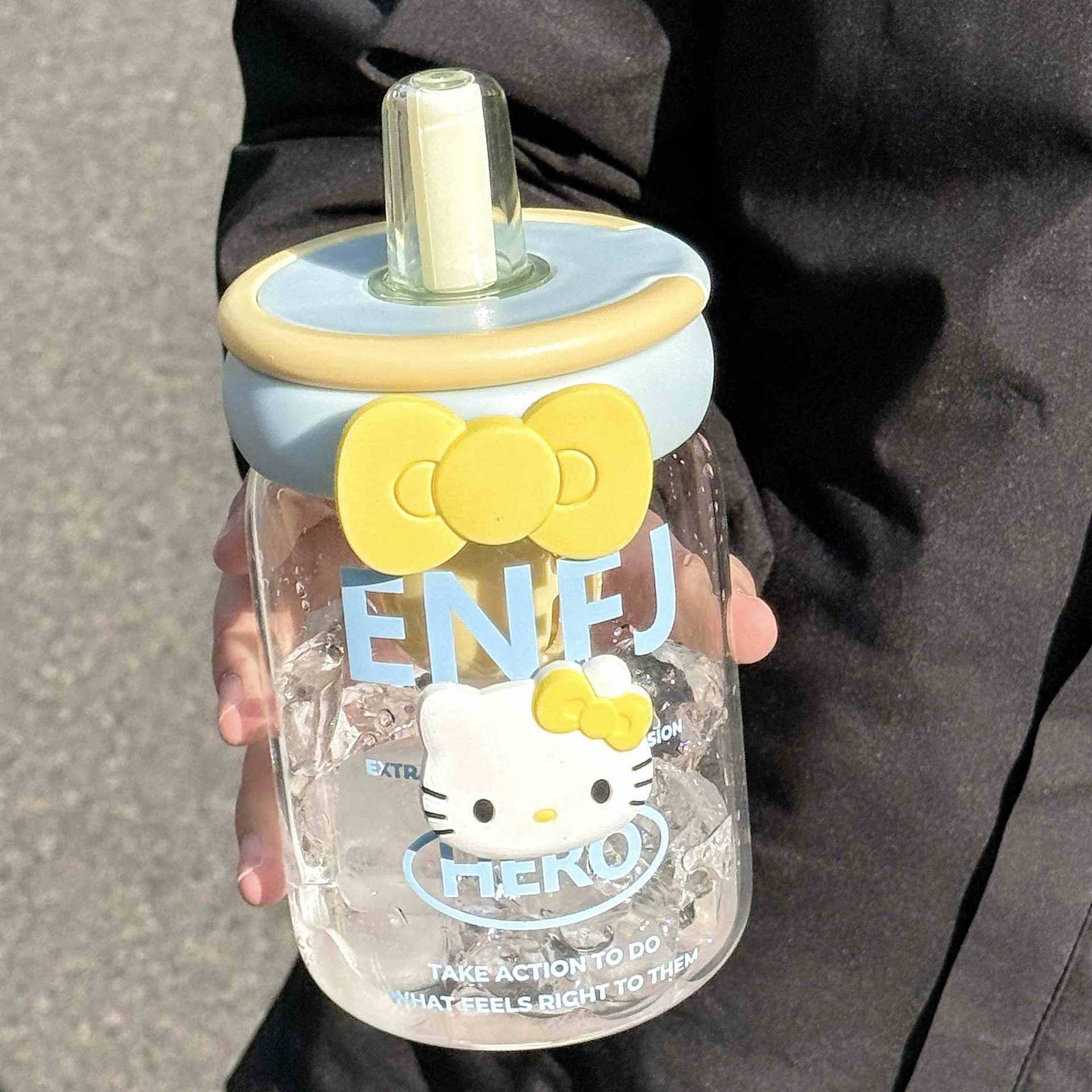 소녀를위한 빨대를 가진 귀여운 유리 컵 높은 색상 가치 큰 용량 데스크탑 차 물 분리 거품 차 컵 높은 온도 저항