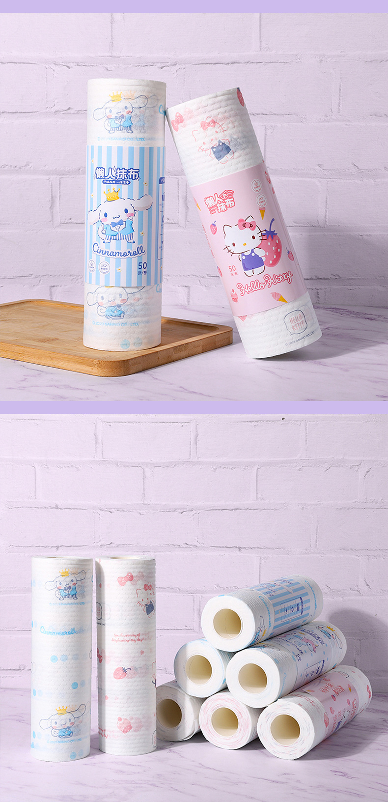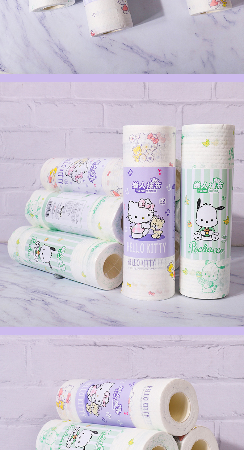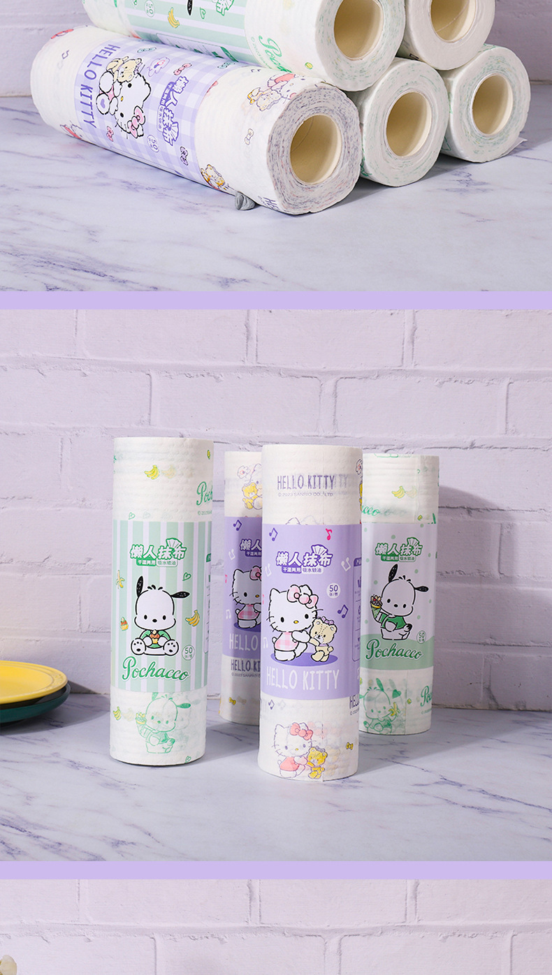 산리오 게으른 헝겊 젖은 마른 이중 사용 가정용 청소 주방 종이 두꺼운 초대형 일회용 식기 세척 천