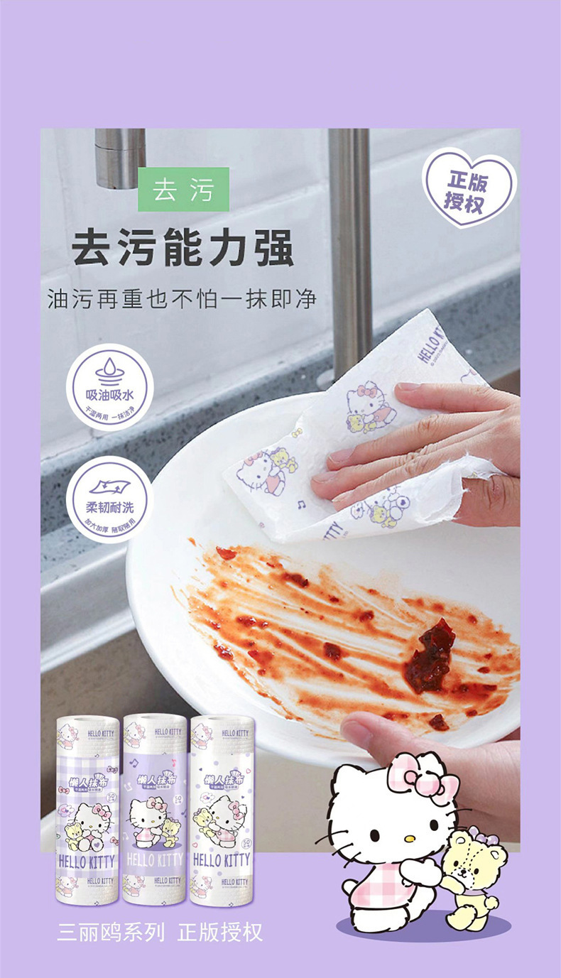 산리오 게으른 헝겊 젖은 마른 이중 사용 가정용 청소 주방 종이 두꺼운 초대형 일회용 식기 세척 천스토어 가기