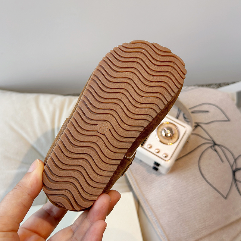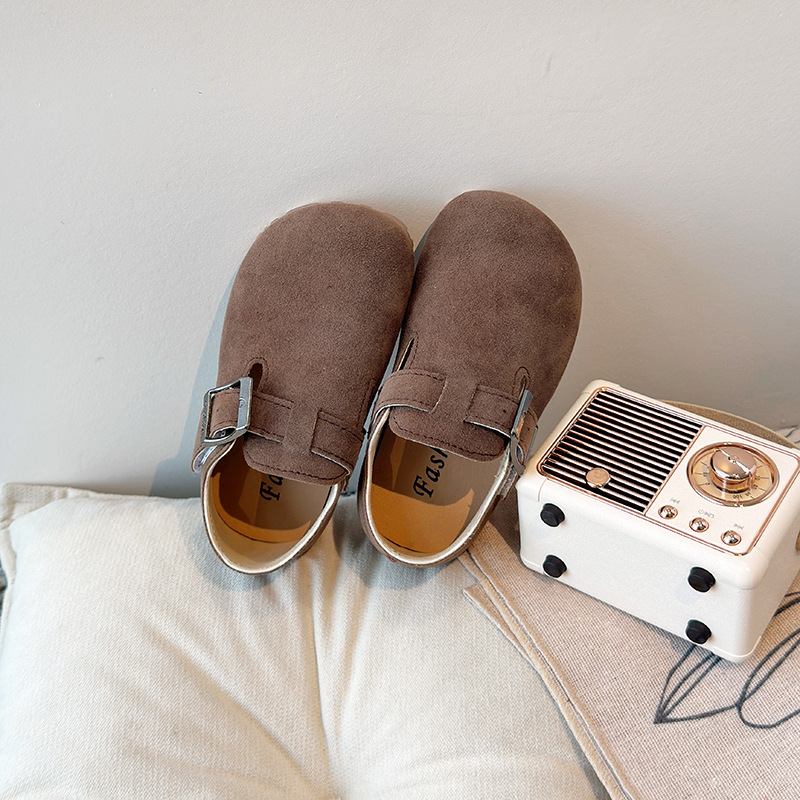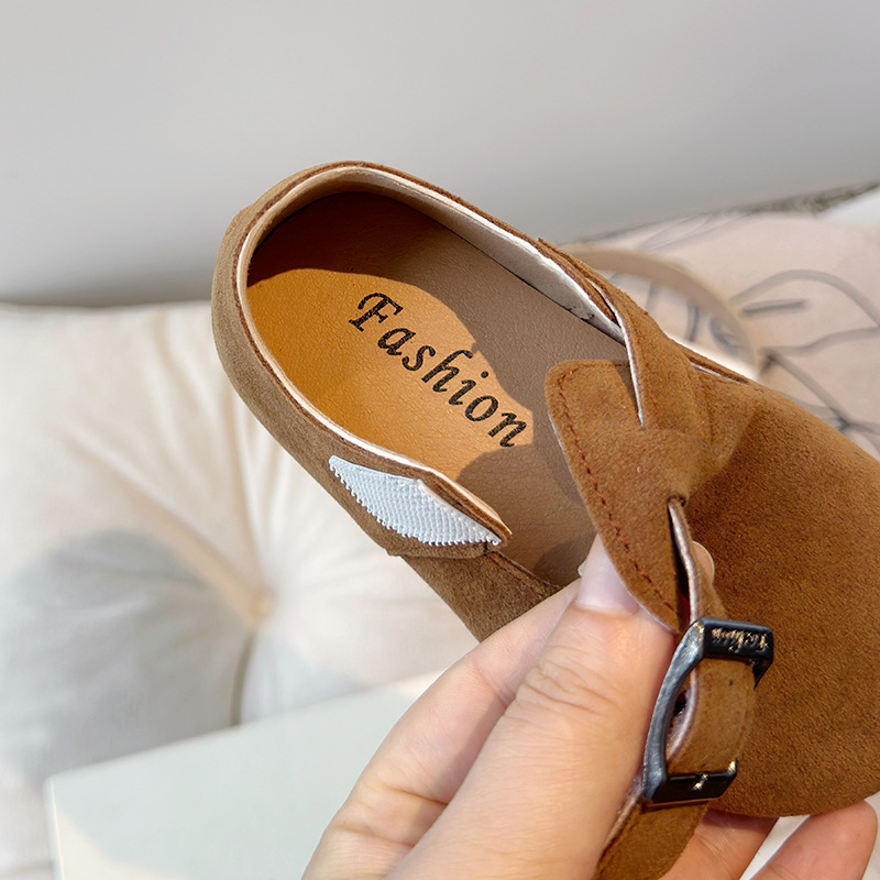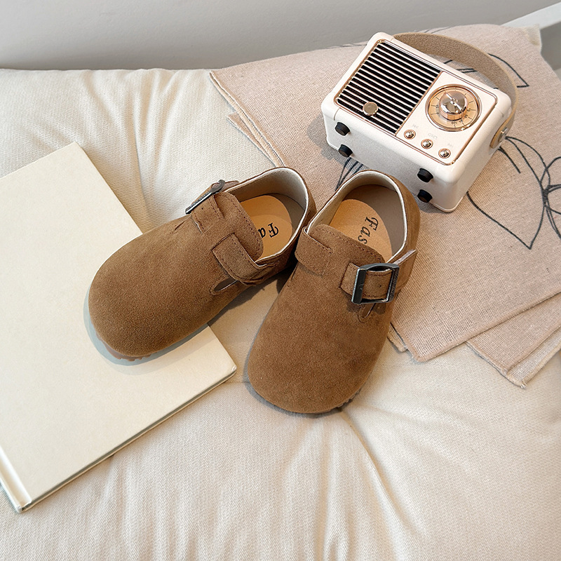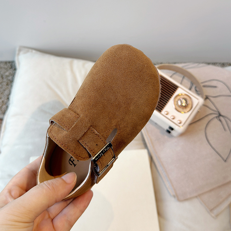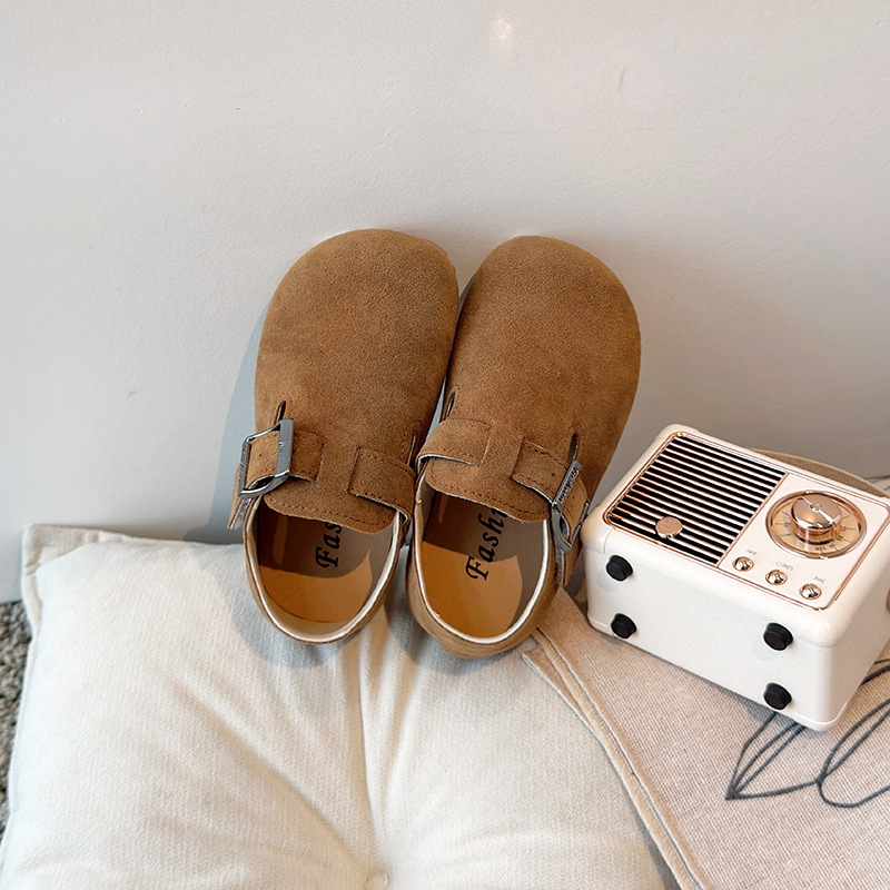 어린이 Birkenstock 2025 봄과 가을 새로운 가죽 신발 소녀 싱글 신발 소년 패션 신발 아기 부드러운 밑창 비니 신발
