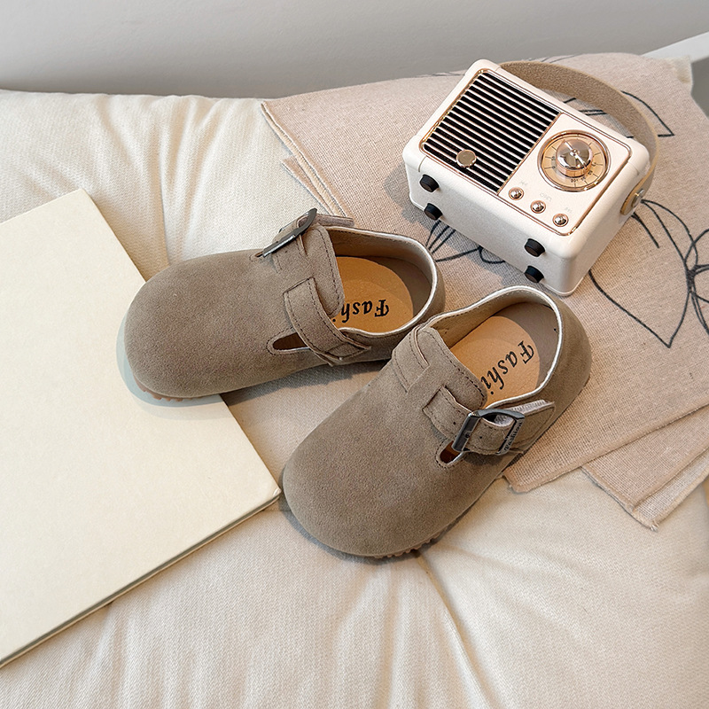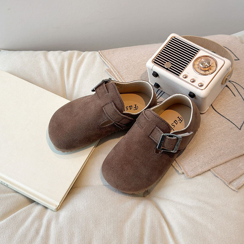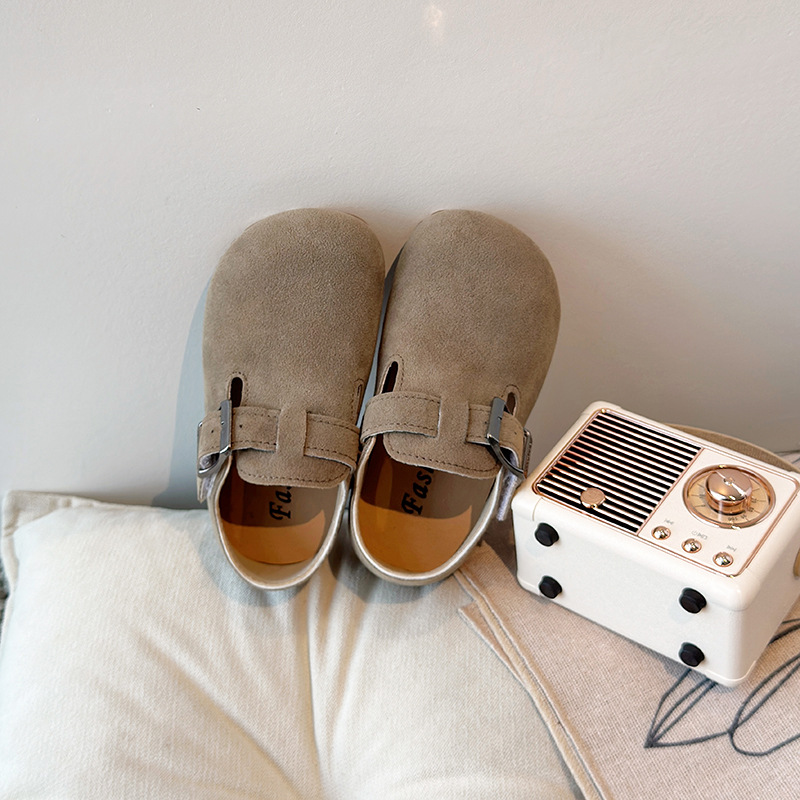 어린이 Birkenstock 2025 봄과 가을 새로운 가죽 신발 소녀 싱글 신발 소년 패션 신발 아기 부드러운 밑창 비니 신발스토어 가기