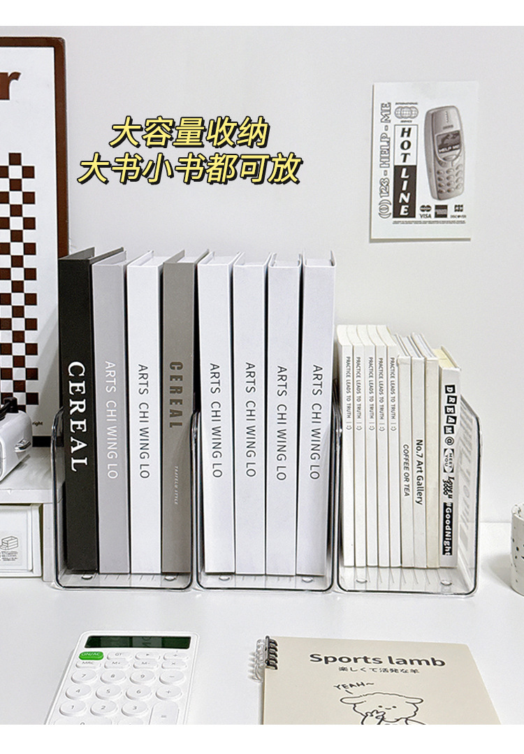 책꽂이 데스크탑 투명 아크릴 책꽂이 학생 도서 고정 보관함 사무실 파일 랙 보관함