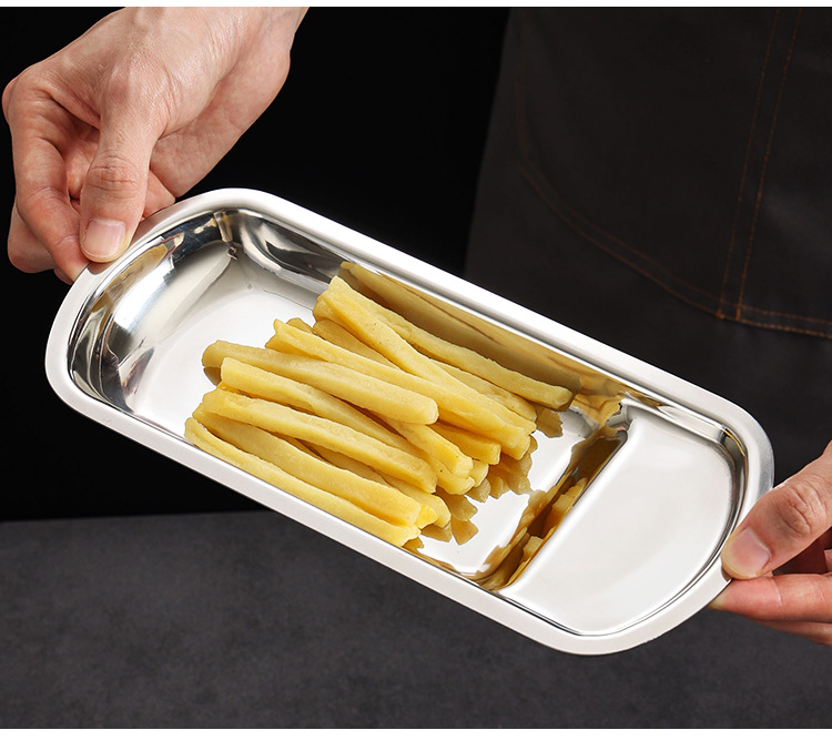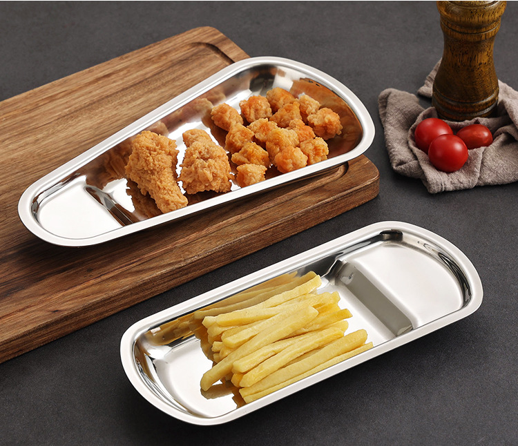 두꺼운 스테인레스 스틸 팬 모양의 트레이 스푼 홀더 식사 클립 식품 클립 선반 뷔페 클립 식기 랙 접시 감자 칩 트레이스토어 가기