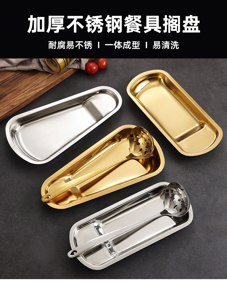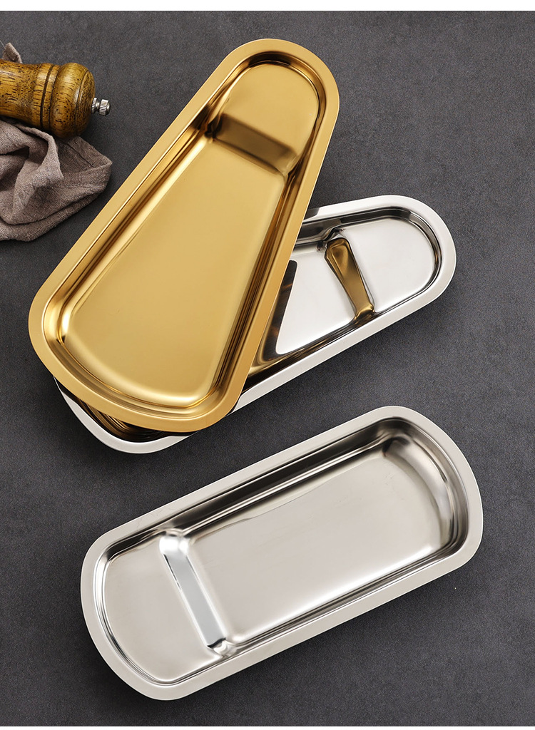 두꺼운 스테인레스 스틸 팬 모양의 트레이 스푼 홀더 식사 클립 식품 클립 선반 뷔페 클립 식기 랙 접시 감자 칩 트레이