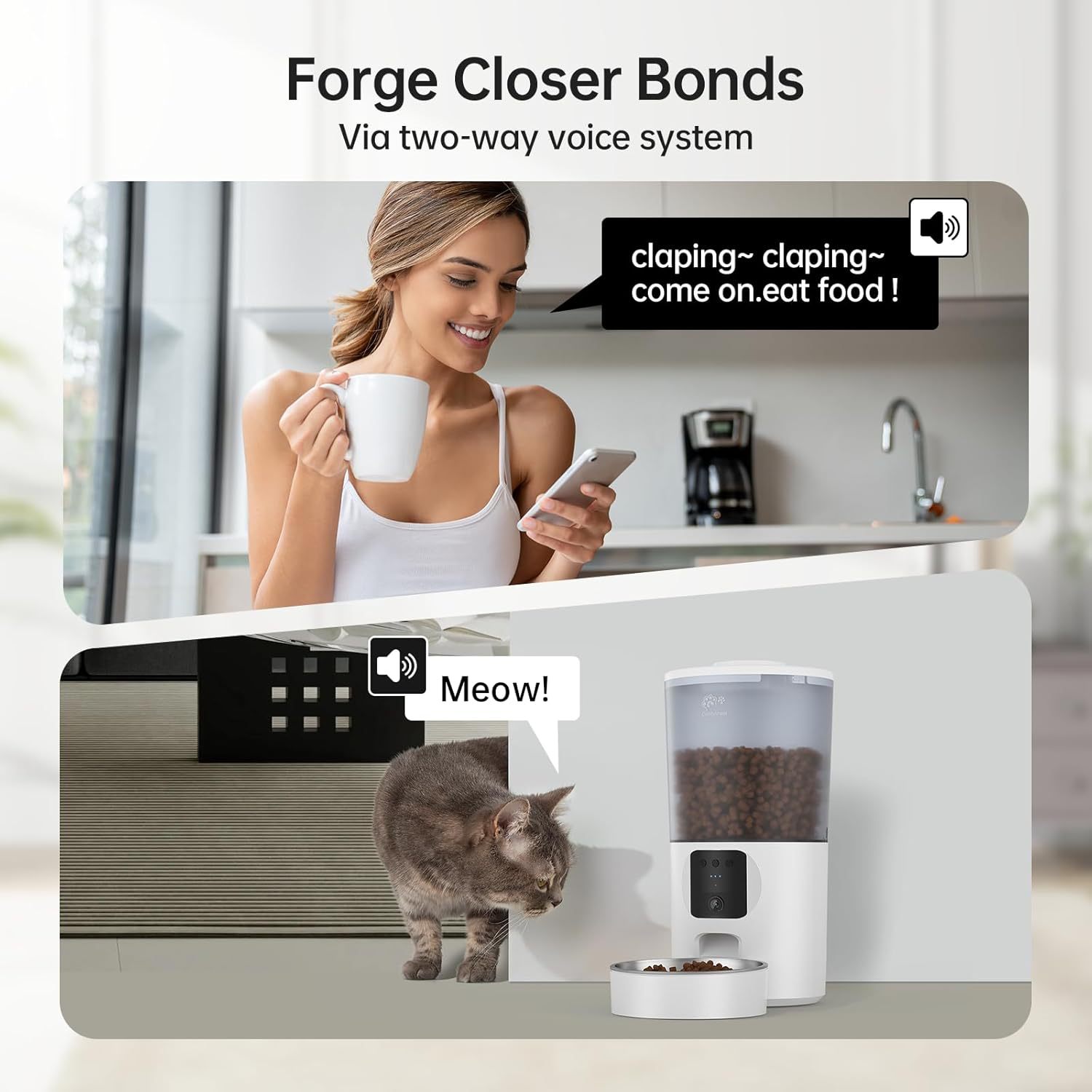 6L 자동 고양이 개 스마트 피더 1080P 양방향 오디오 5GWiFi 모션 알람 애완 동물 피더 APP스토어 가기