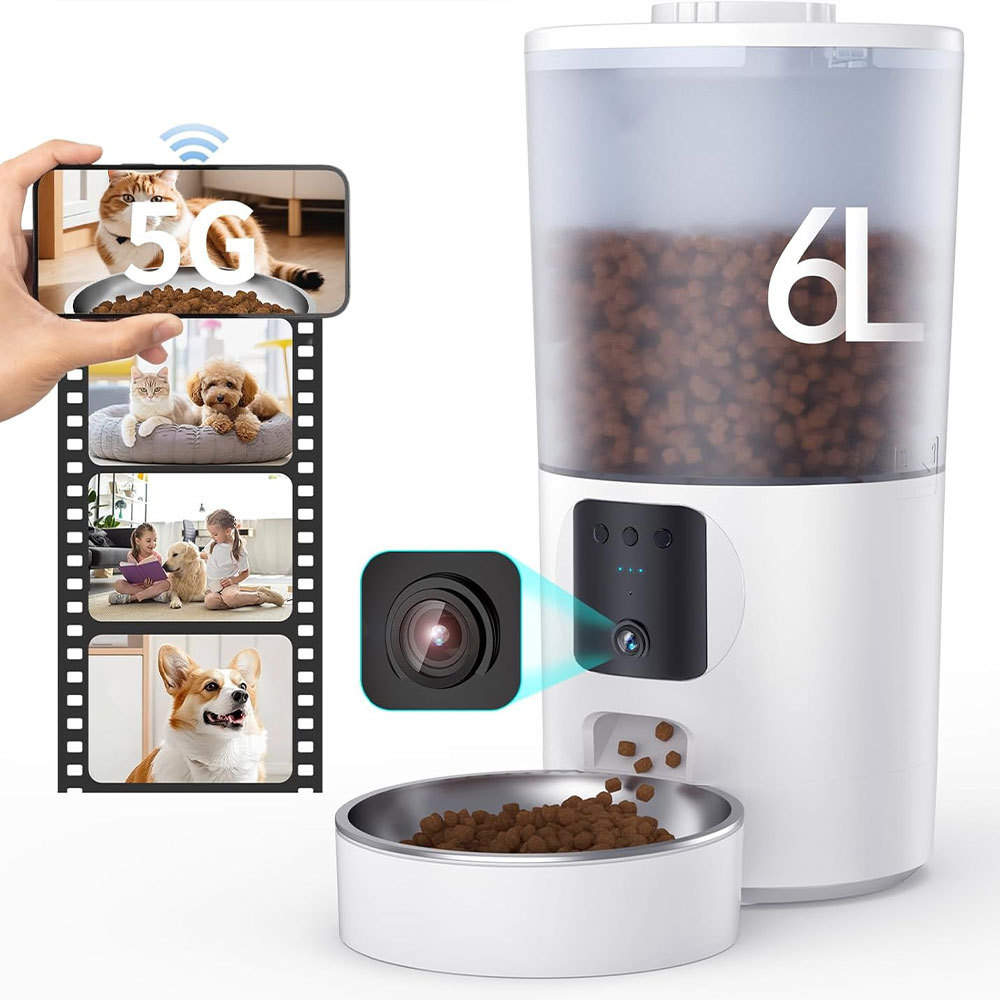 6L 자동 고양이 개 스마트 피더 1080P 양방향 오디오 5GWiFi 모션 알람 애완 동물 피더 APP