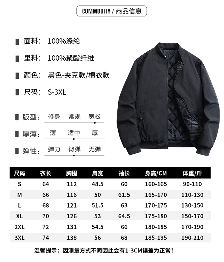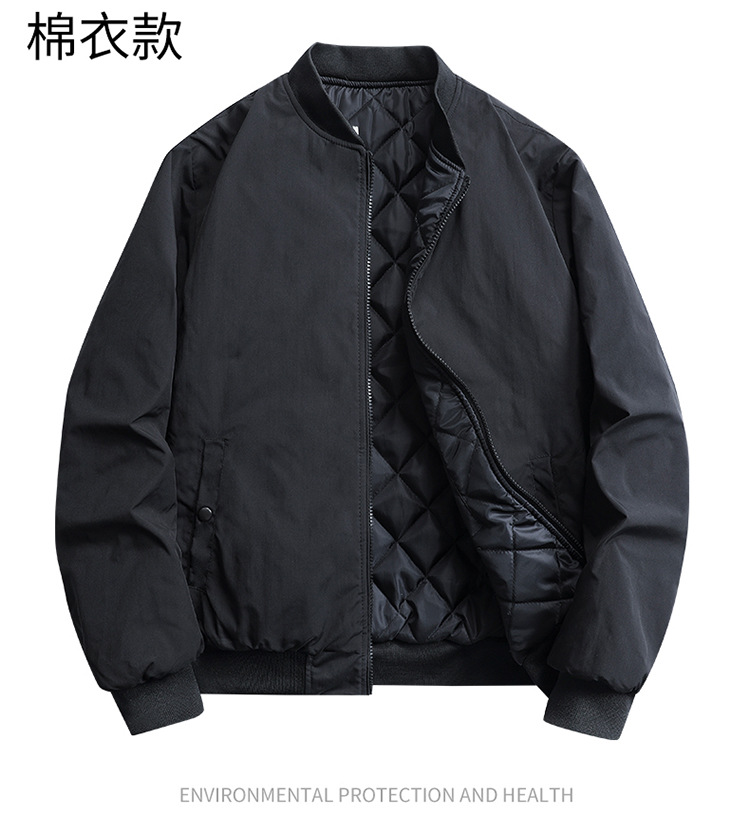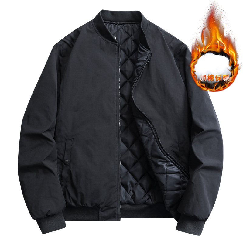 봄과 겨울 남성용 블랙 야구 칼라 재킷 면 코트 새로운 다목적 패션 캐주얼 통근 퀼트 비행복 재킷