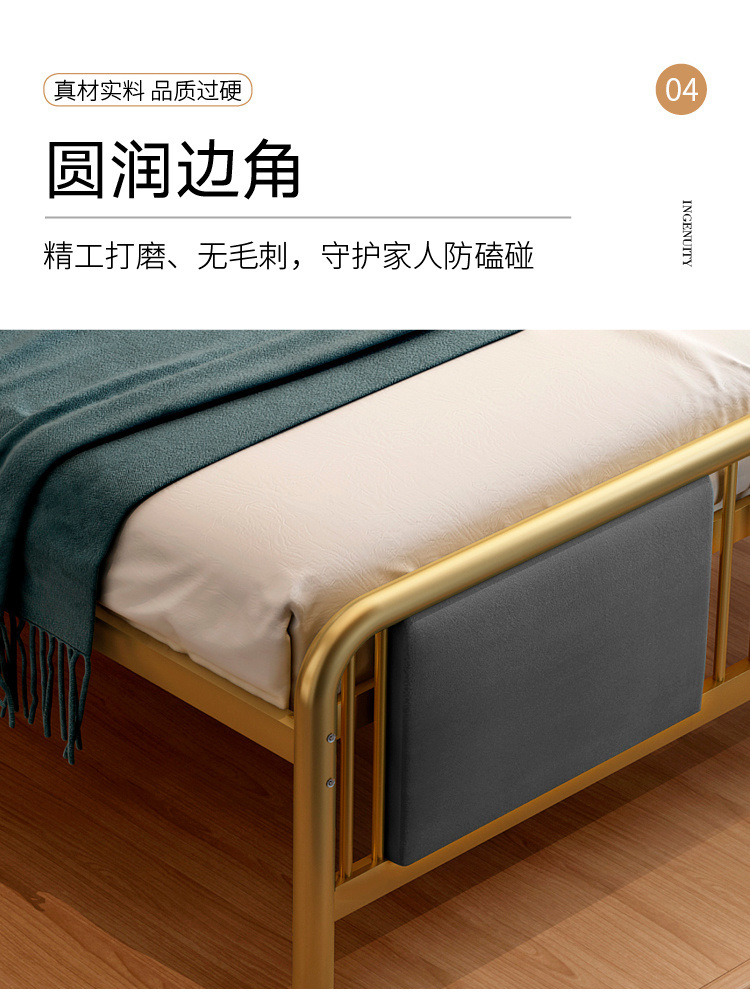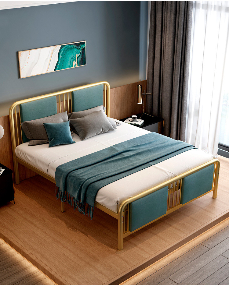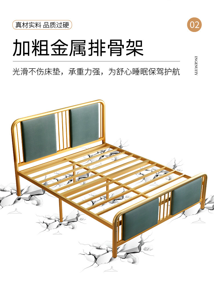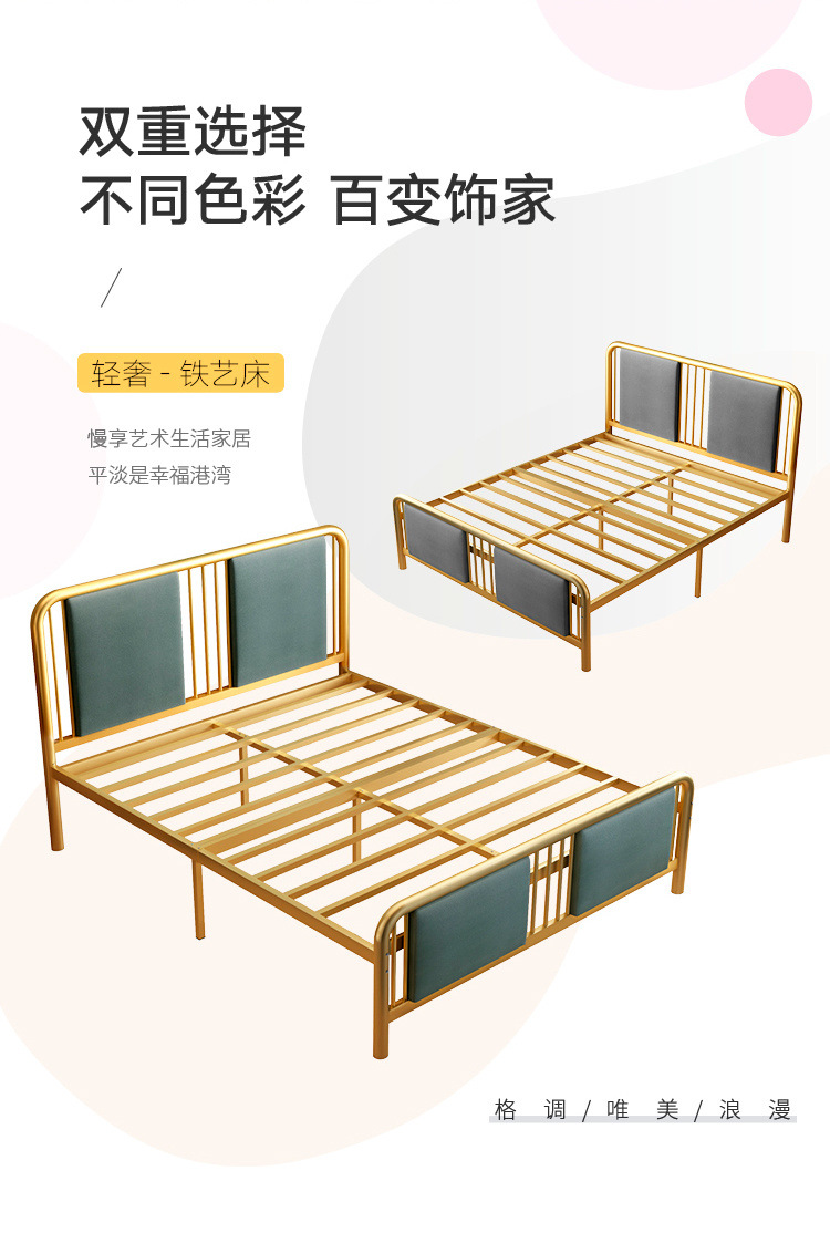 현대 미니멀리스트 라이트 럭셔리 새로운 중국 스타일 철 침대 1.38m 골드 소프트 등받이 철 침대 프레임 금속 더블 철 침대