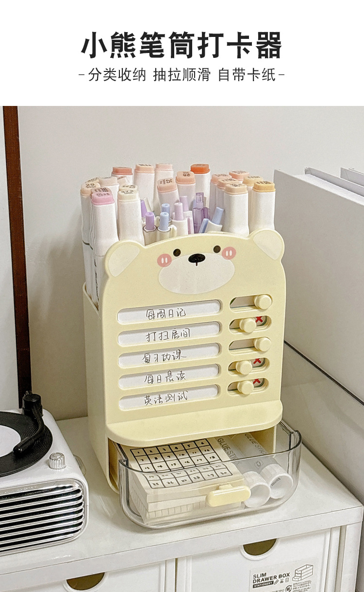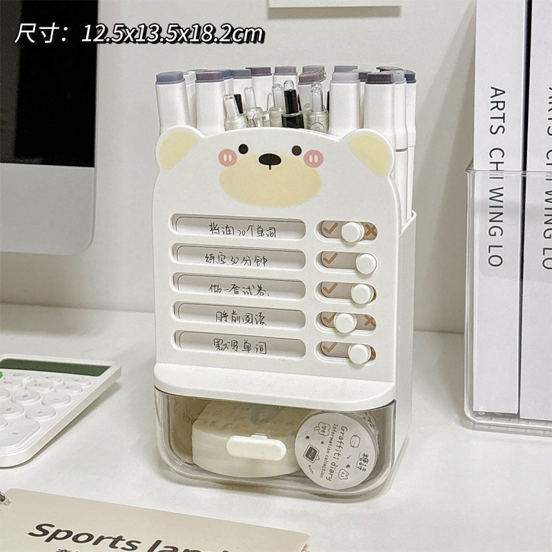 어린이와 소녀를위한 데스크탑 펜 홀더 보관 상자 자기 훈련 체크인 보관 버킷 학생 책상 대용량 마커 펜 보관