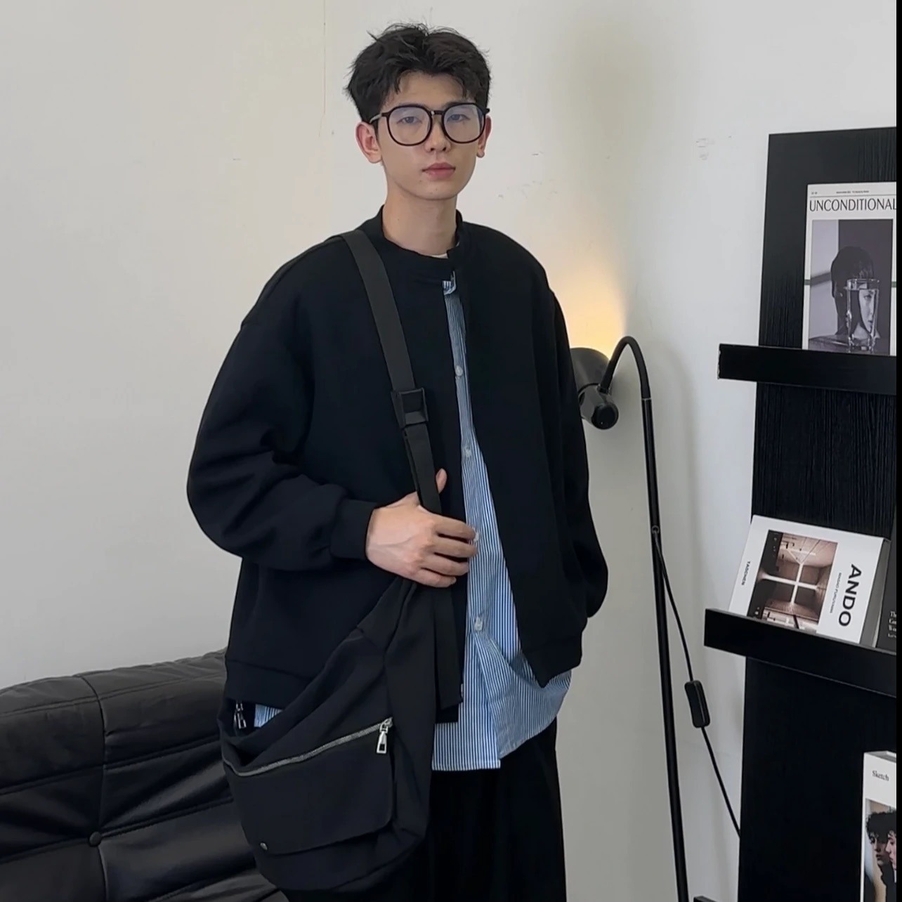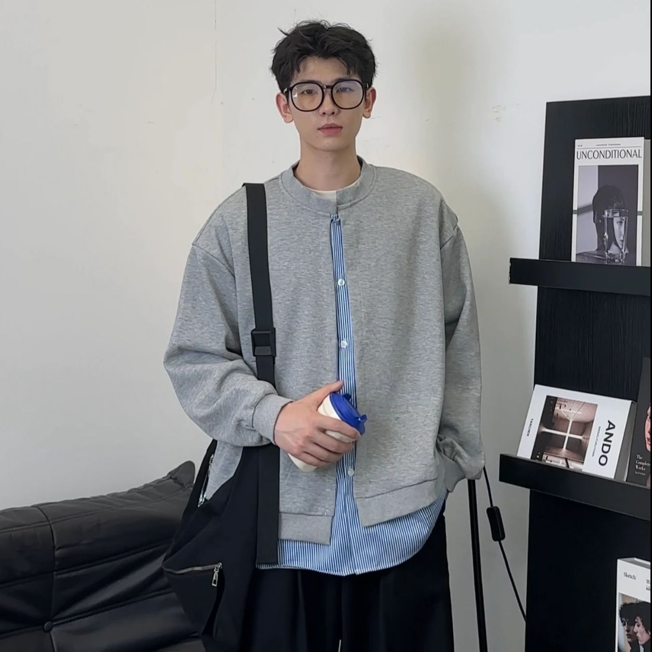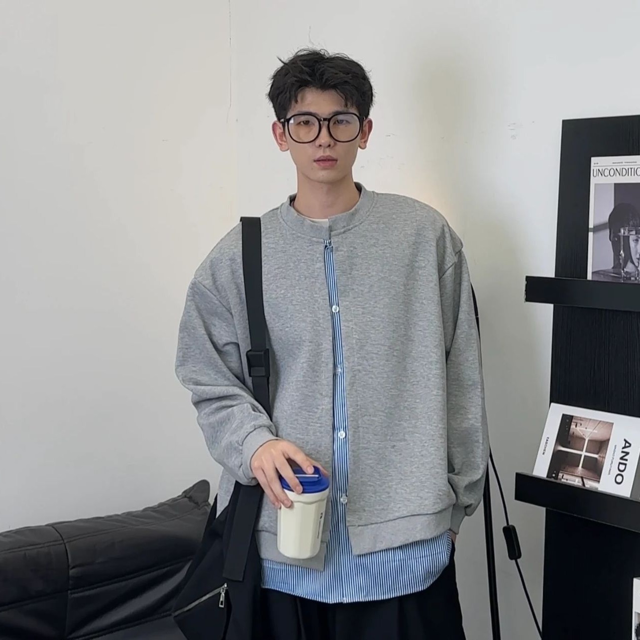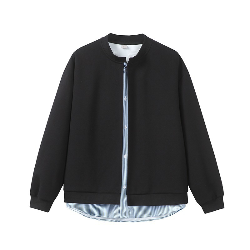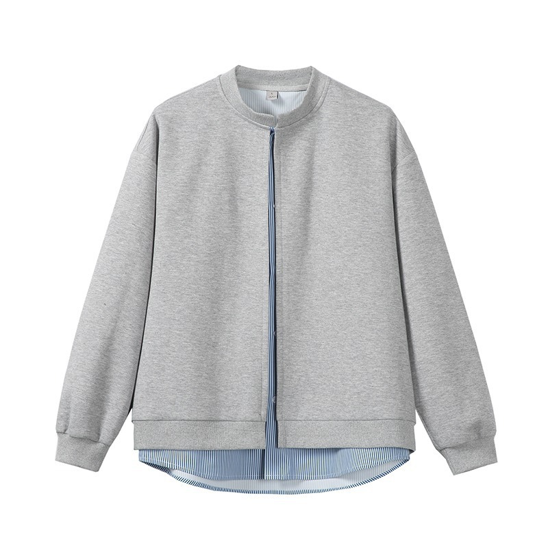 아메리칸 스트라이프 페이크 투피스 카디건 스웨트셔츠 남성 가을 클린핏 재킷 트렌디 브랜드 하이엔드 그레이 탑