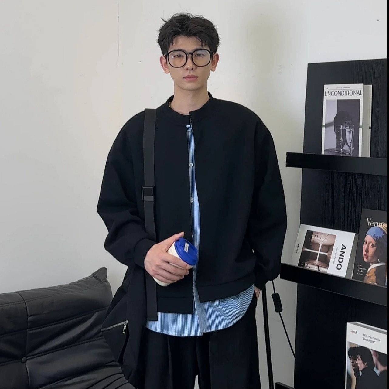 아메리칸 스트라이프 페이크 투피스 카디건 스웨트셔츠 남성 가을 클린핏 재킷 트렌디 브랜드 하이엔드 그레이 탑스토어 가기