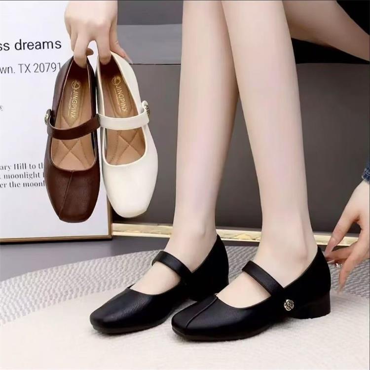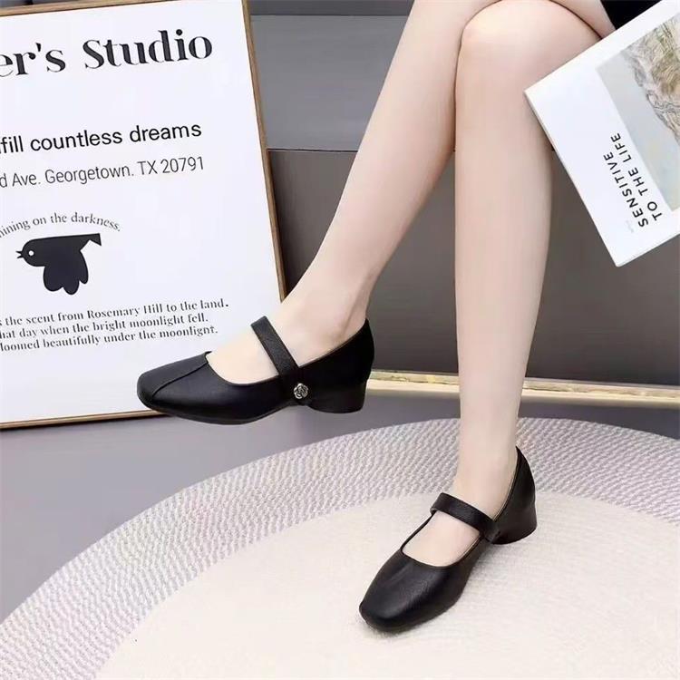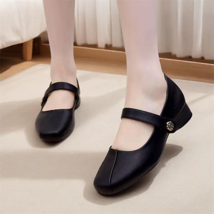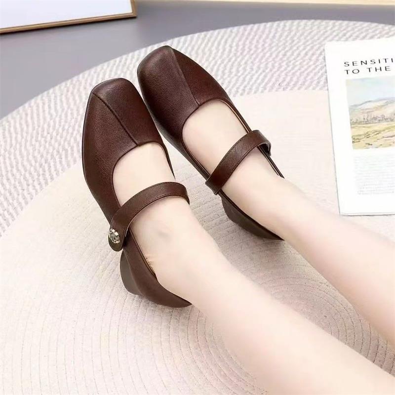2025 여름 복고풍 부드러운 가죽 라운드 발가락 펌프 여성용 원 스트랩 디자인 편안한 부드러운 밑창 메리 제인 가죽 신발스토어 가기
