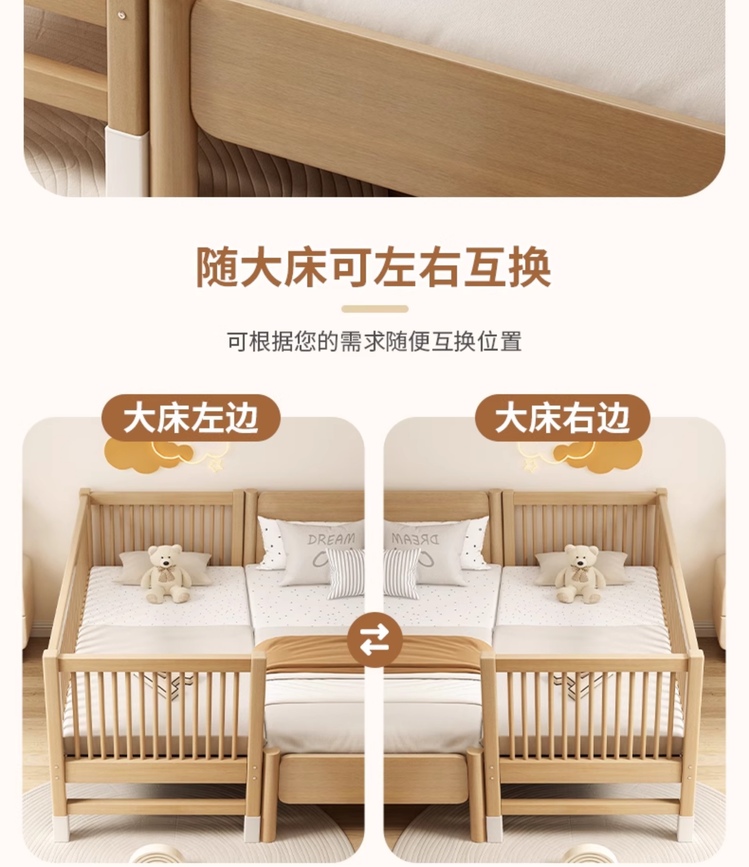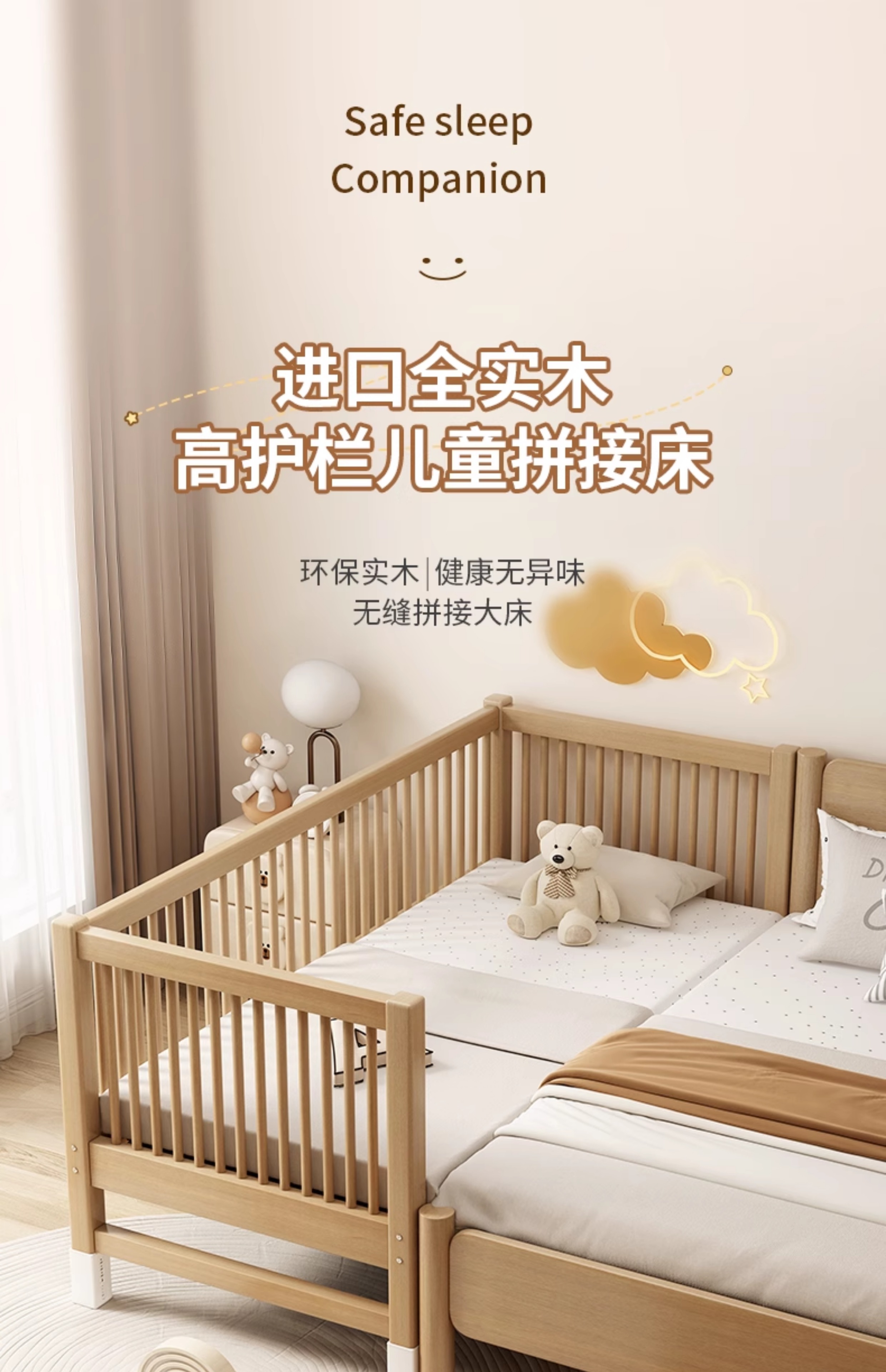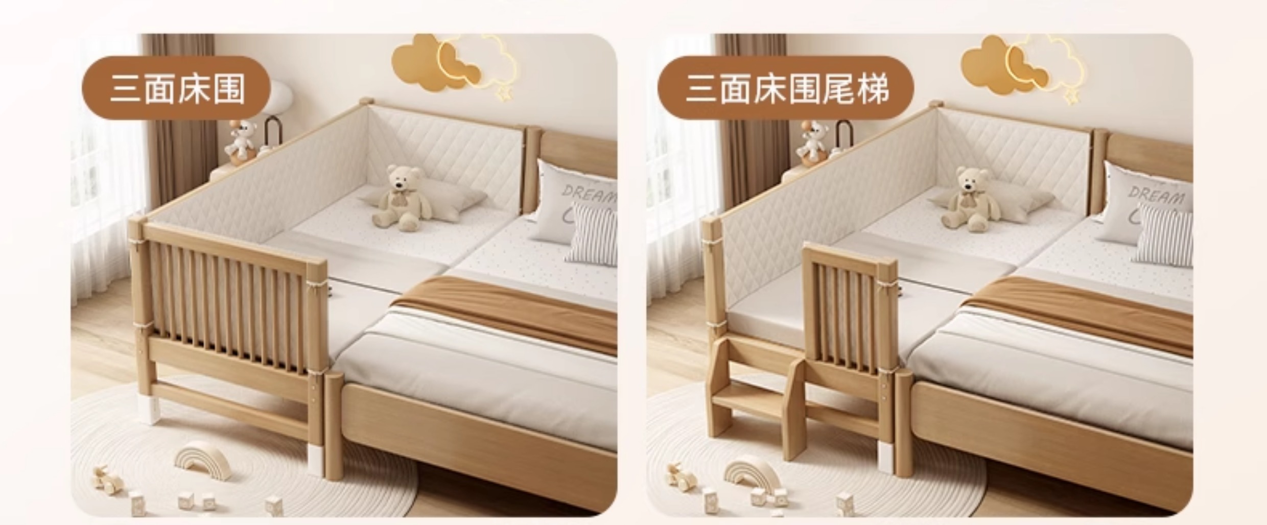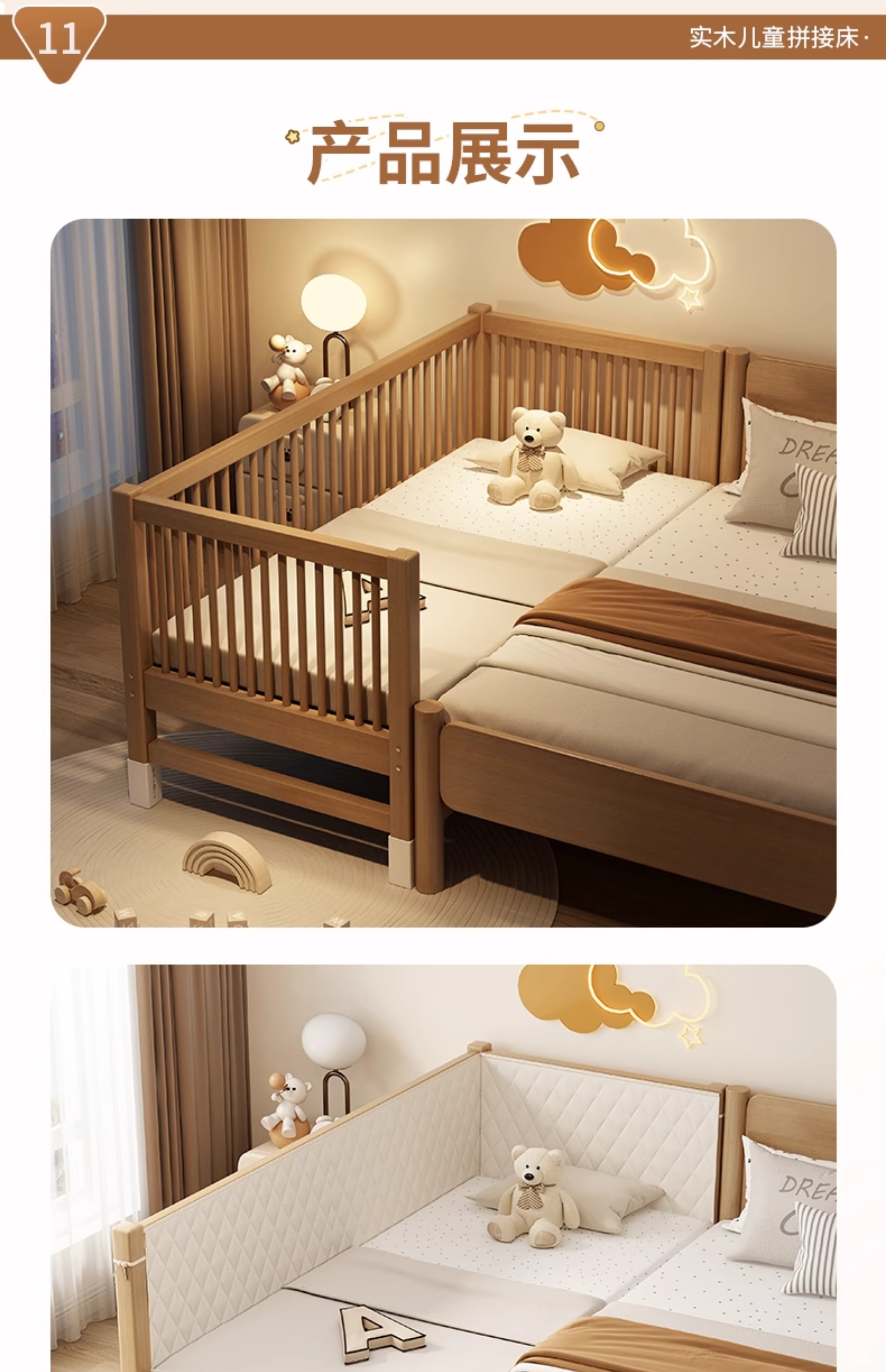 원목 어린이 접합 침대 유아용 침대 접합 대형 침대 옆 침대 가로형 침대 가로형 침대 가드레일 포함 소년 소녀 싱글 침대스토어 가기