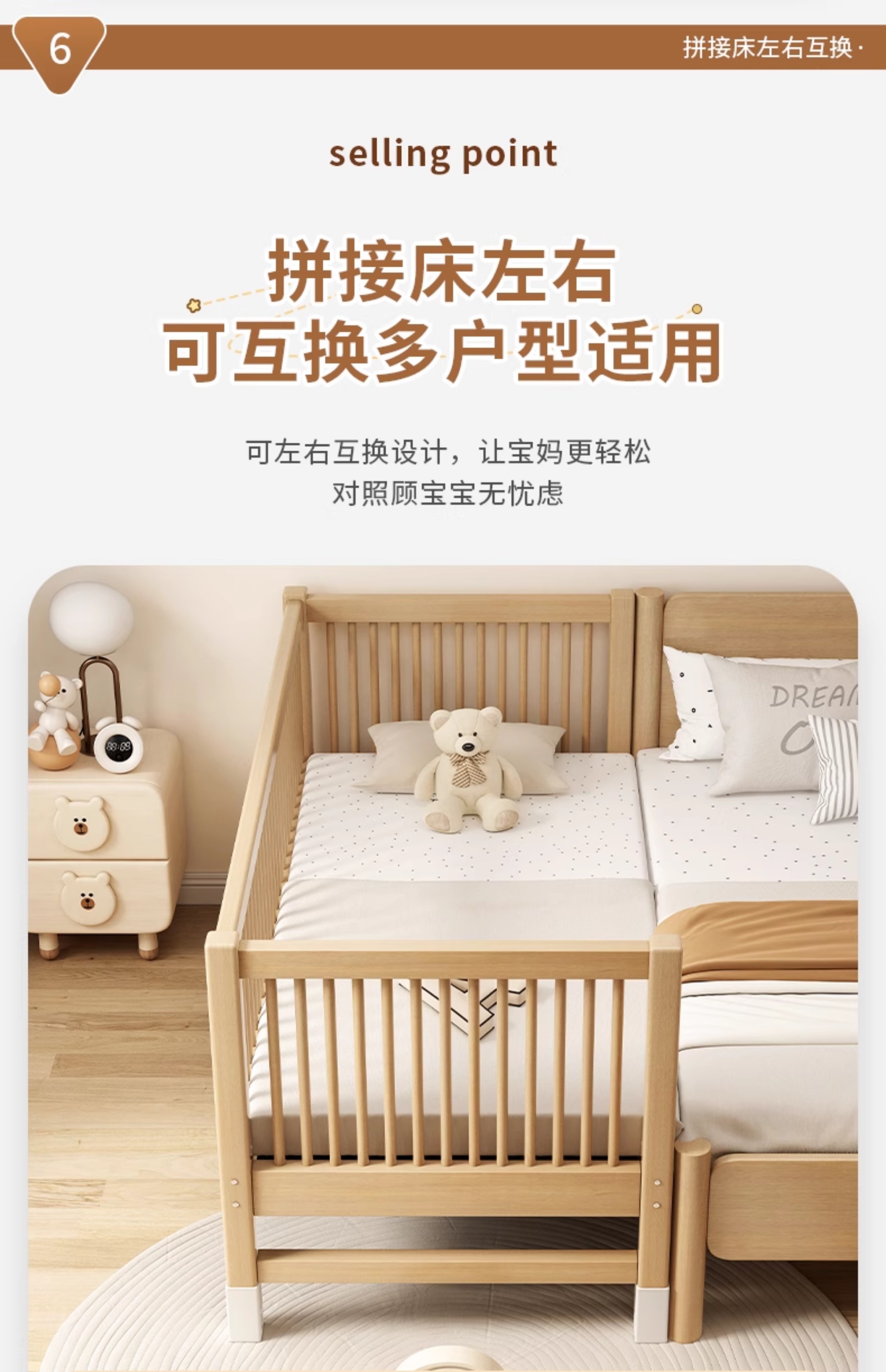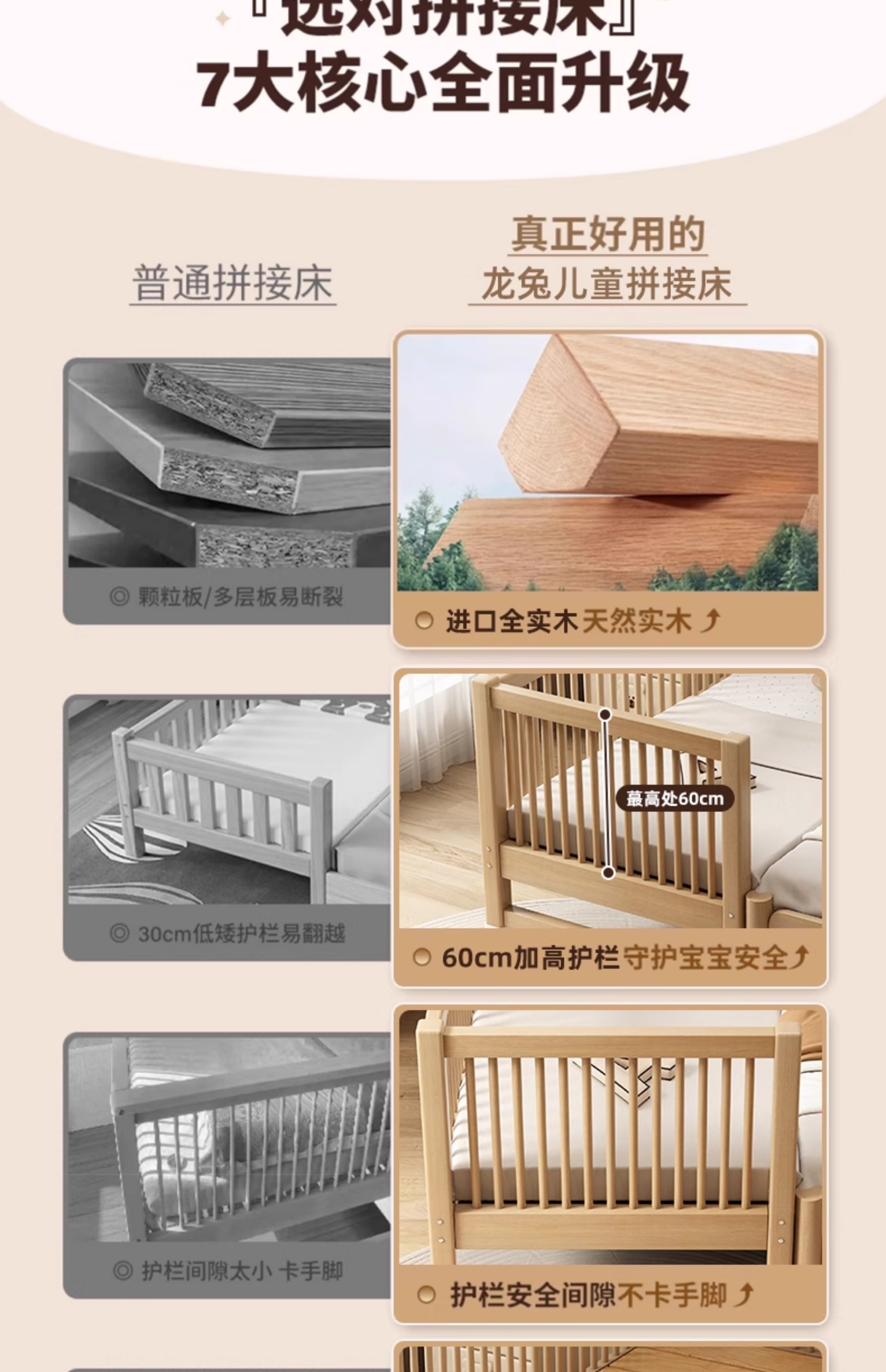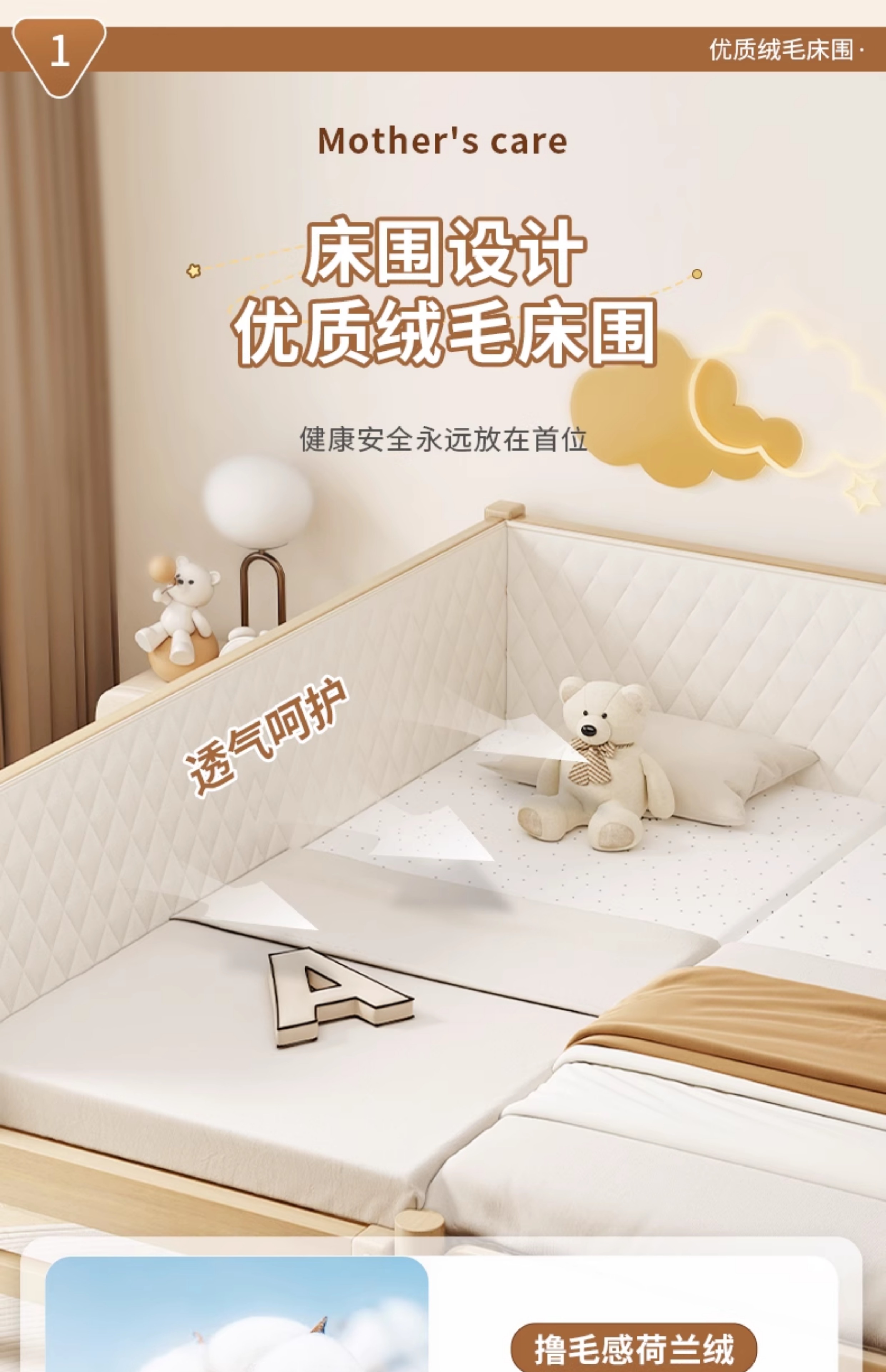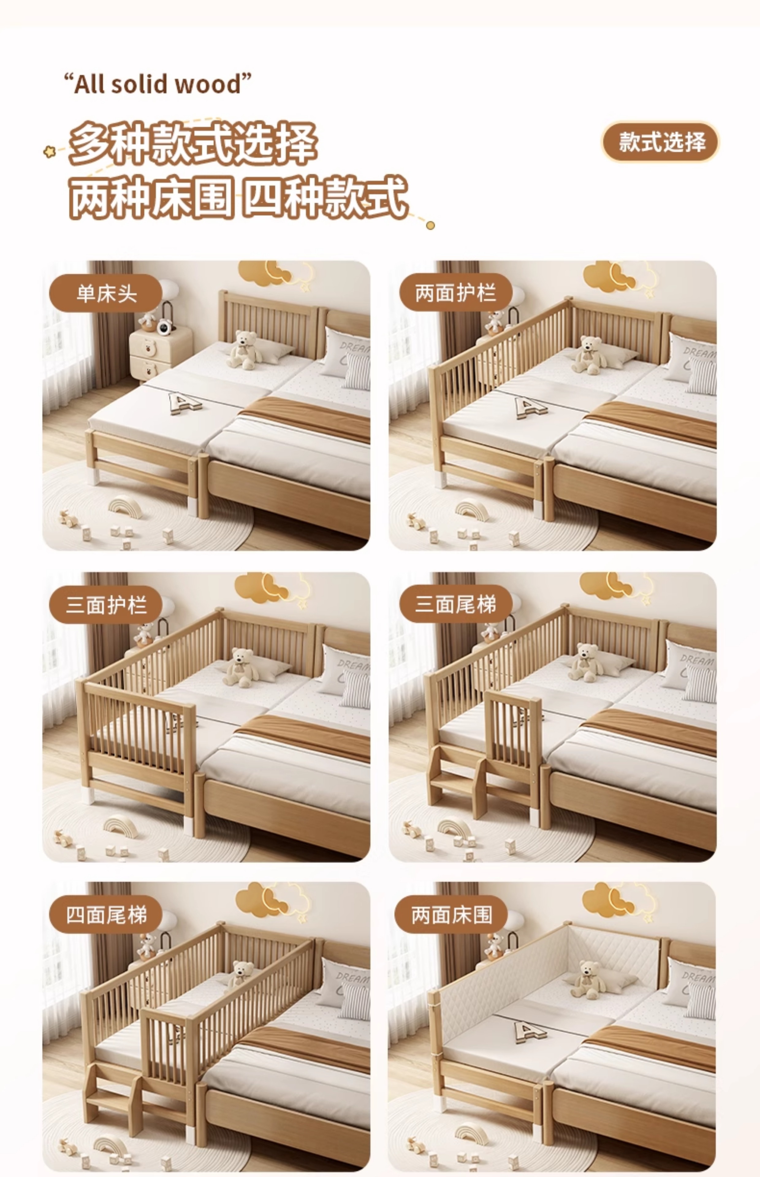 원목 어린이 접합 침대 유아용 침대 접합 대형 침대 옆 침대 가로형 침대 가로형 침대 가드레일 포함 소년 소녀 싱글 침대스토어 가기
