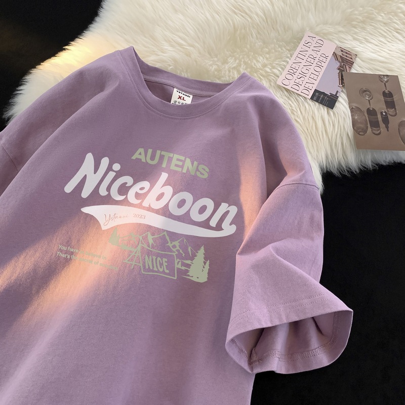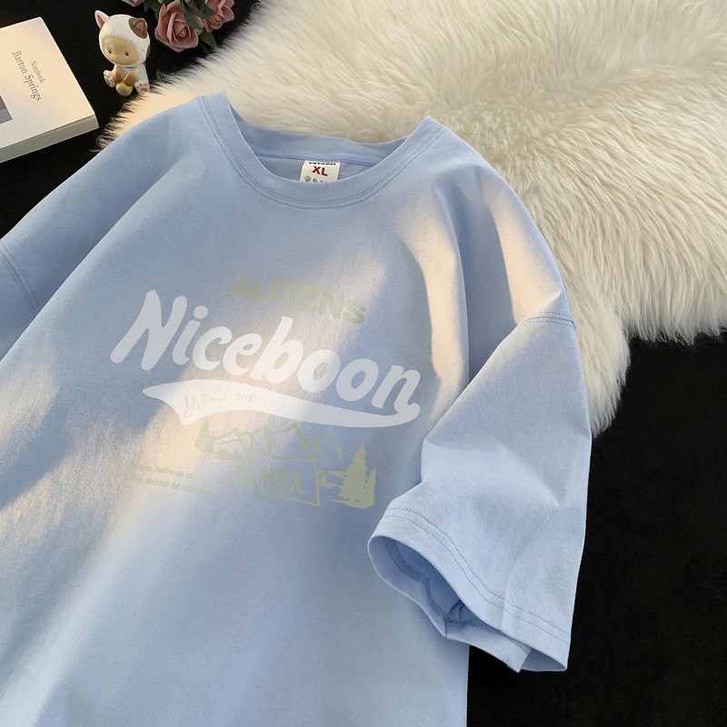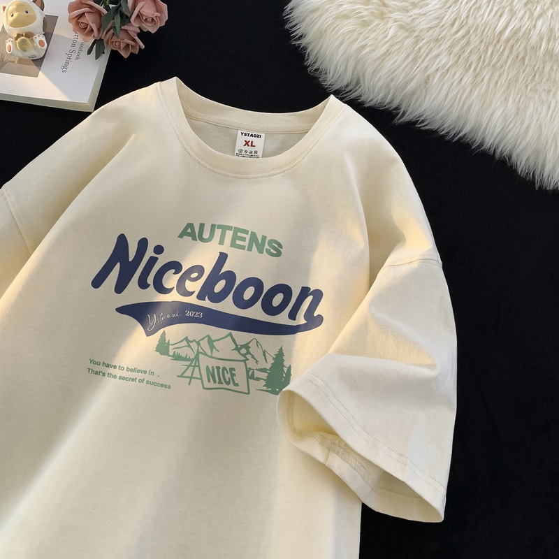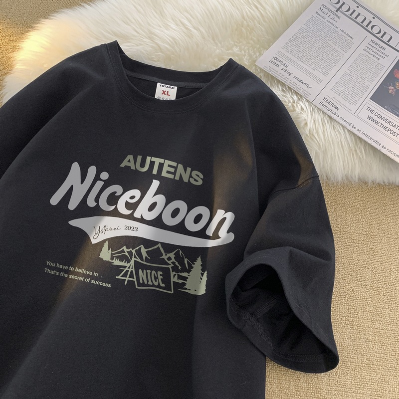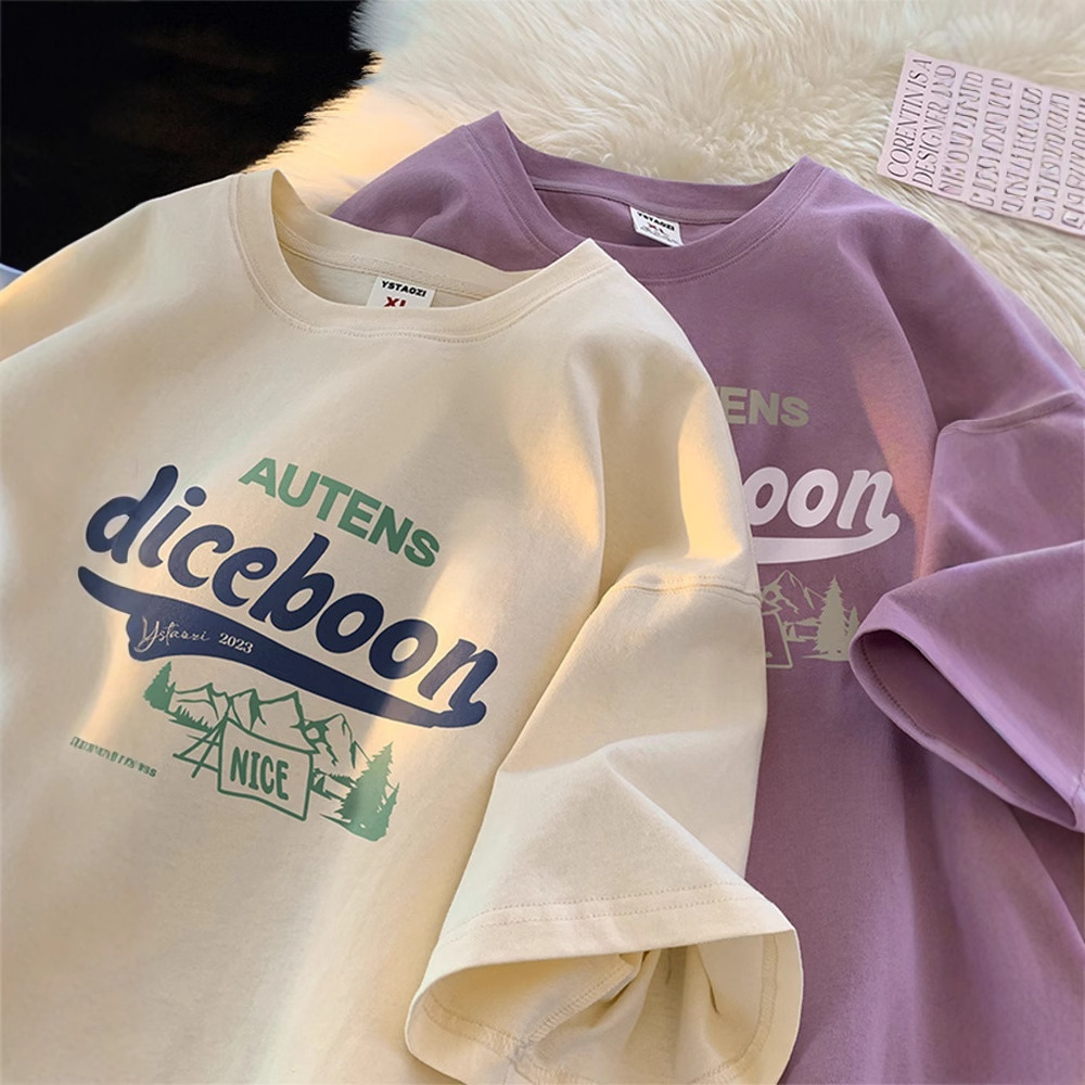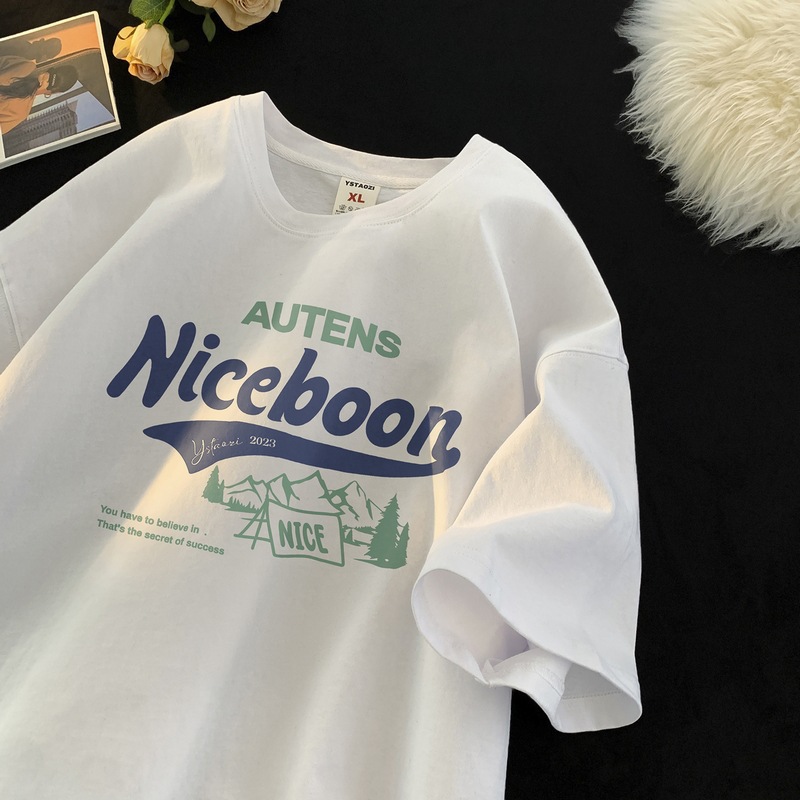 순수 코튼 심플 맞춤형 레터 프린트 라운드 넥 반팔 티셔츠 남성용 2025 여름 루즈 5부 소매 이너 탑스토어 가기