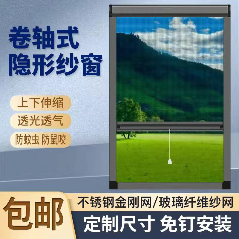 모기 방지 슬라이딩 다이아몬드 메쉬 보이지 않는 스크린 통기성 및 광 투과성 두꺼운 알루미늄 합금 못이없는 설치 롤 리프팅 크로스 보더스토어 가기