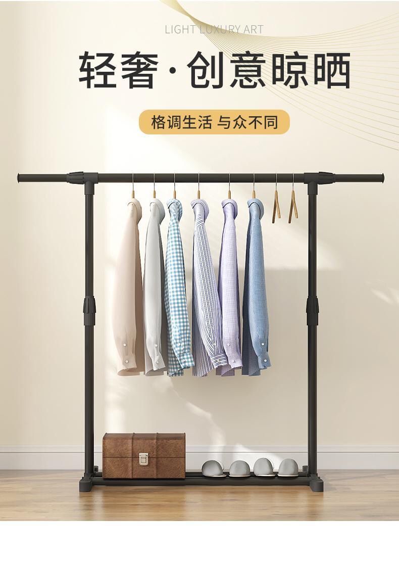 옷걸이, 기숙사 바닥걸이, 가정용 단일봉 두꺼운 옷걸이, 텔레스코픽 발코니 수납 옷걸이스토어 가기
