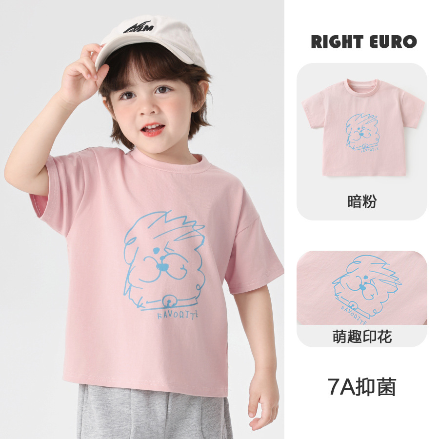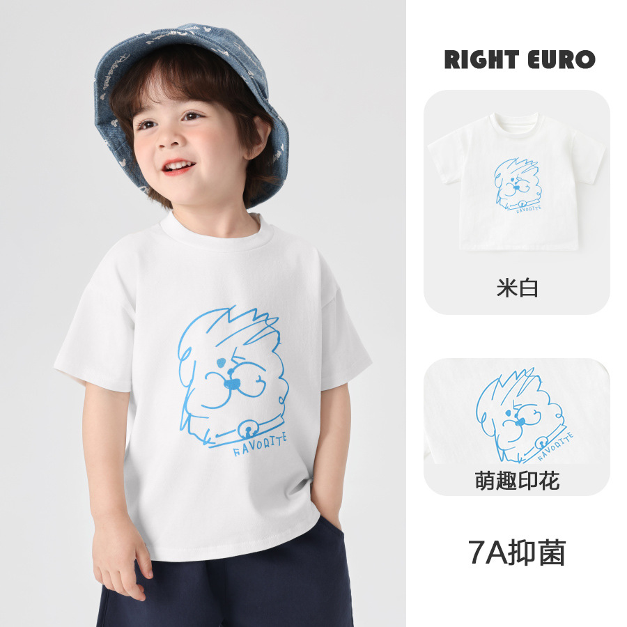 오른쪽 유럽 소년 여름 반팔 티셔츠 2025 새로운 아동 의류 아동용 베이비 탑 반팔 여름 얇은 스타일스토어 가기