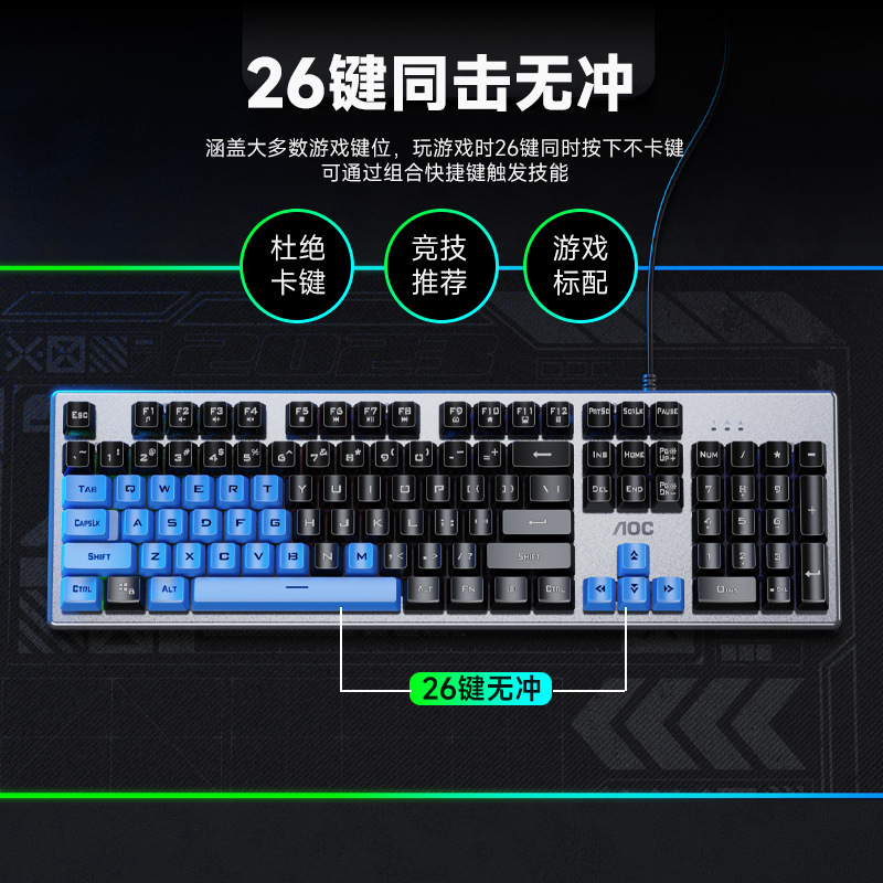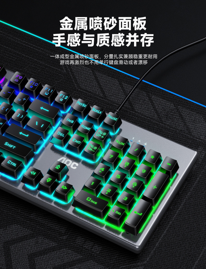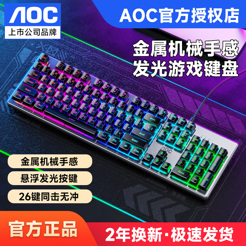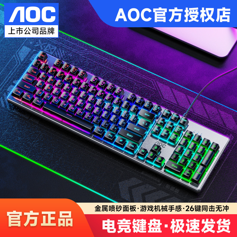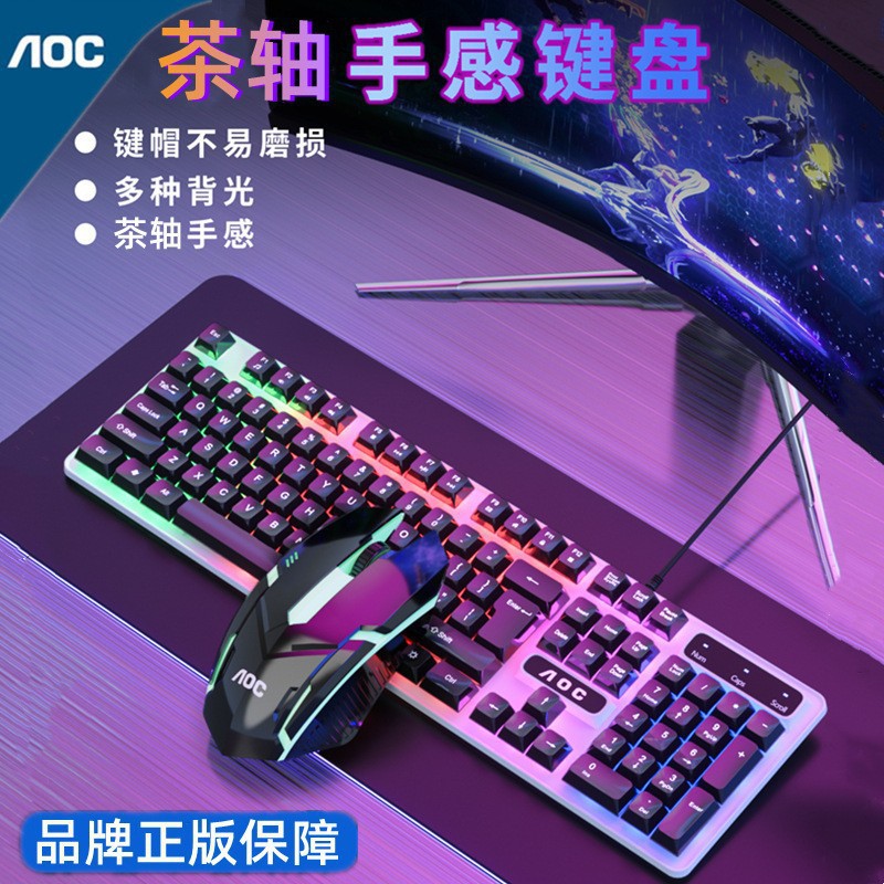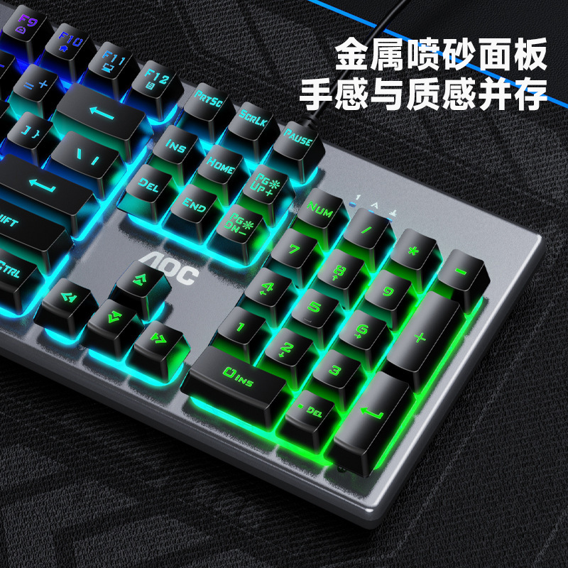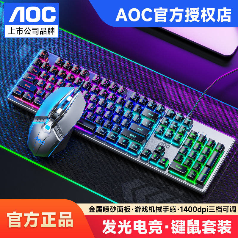 새로운 AOC KM410 유선 키보드 및 마우스 세트 발광 기계적 느낌의 금속 게임용 데스크탑 컴퓨터