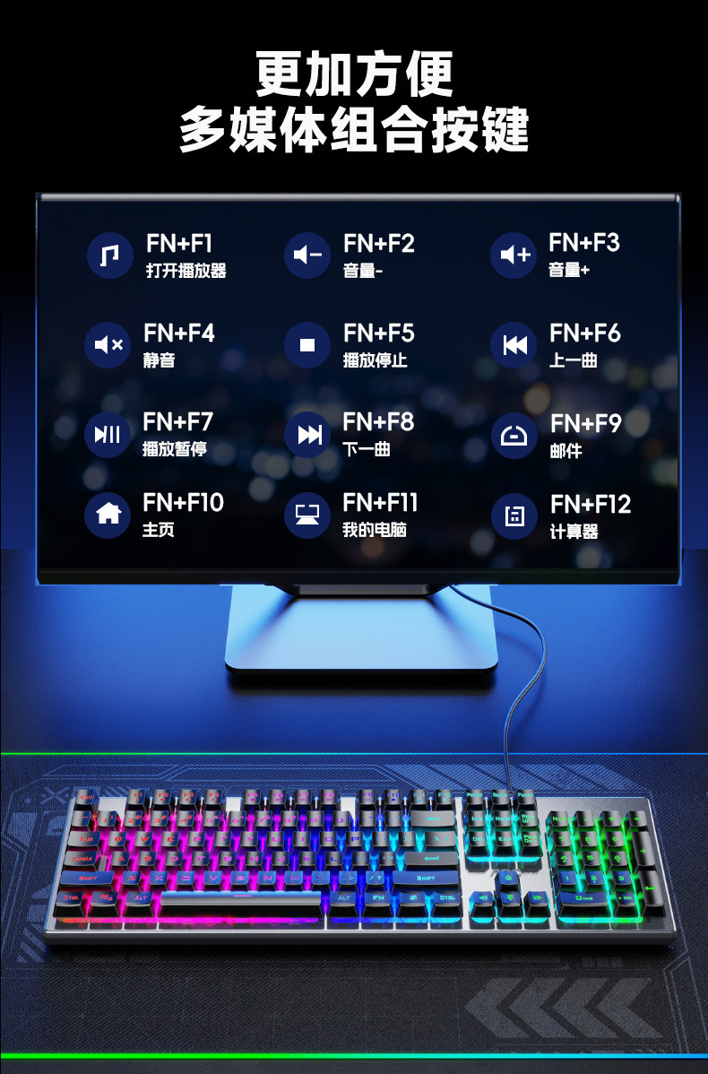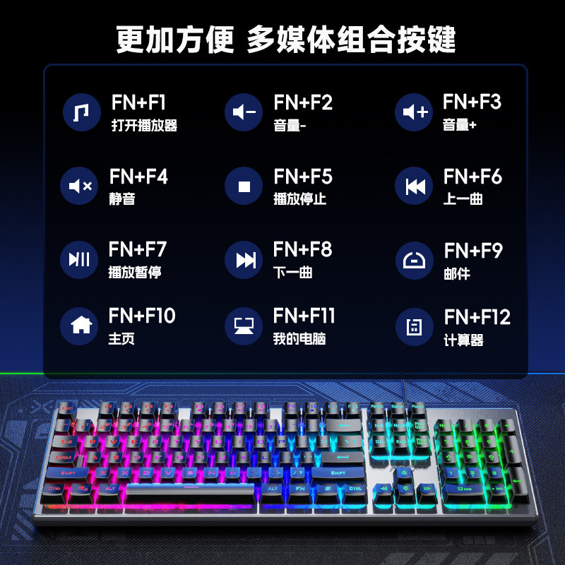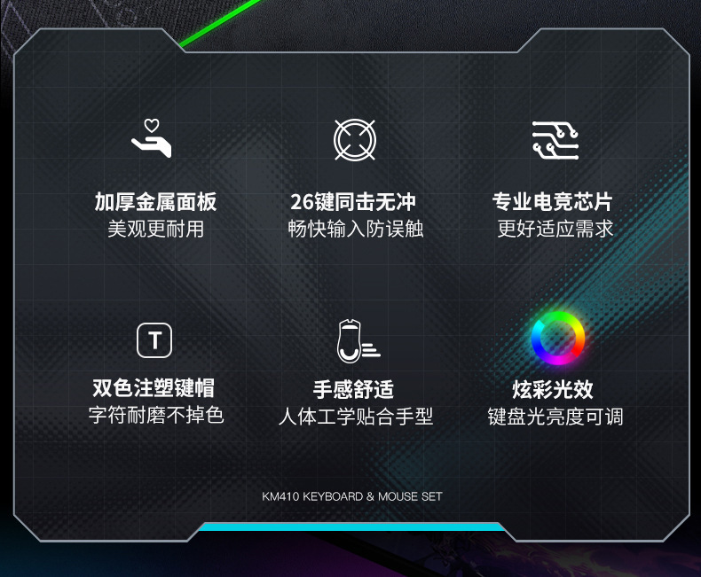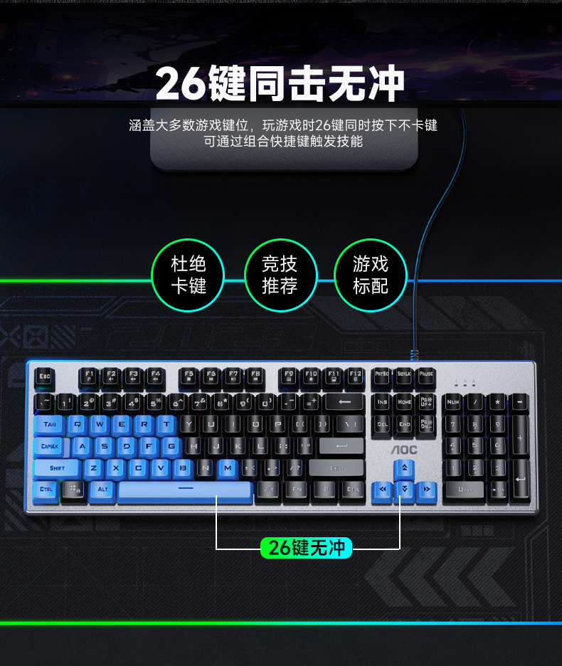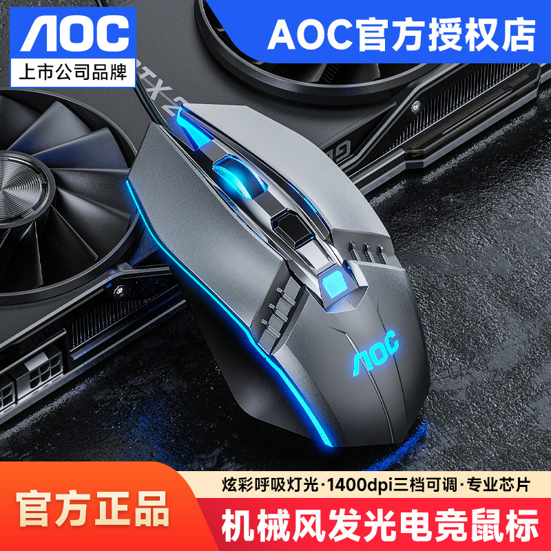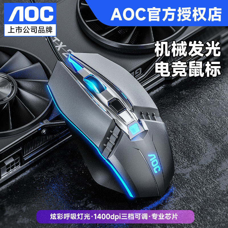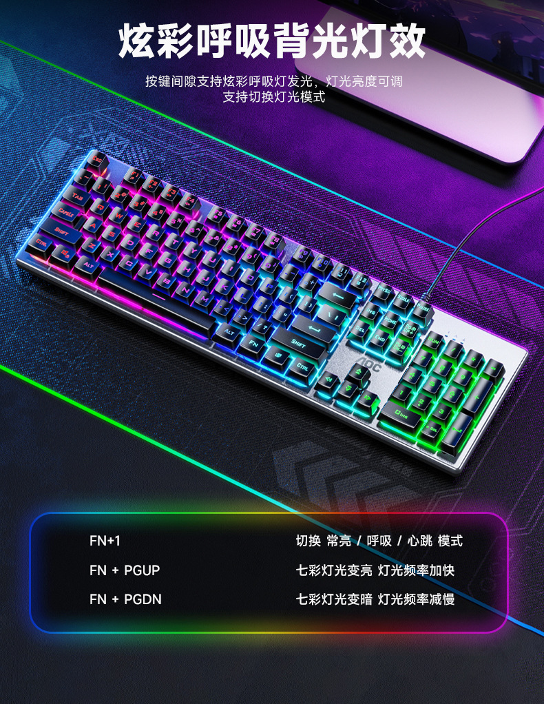 새로운 AOC KM410 유선 키보드 및 마우스 세트 발광 기계적 느낌의 금속 게임용 데스크탑 컴퓨터