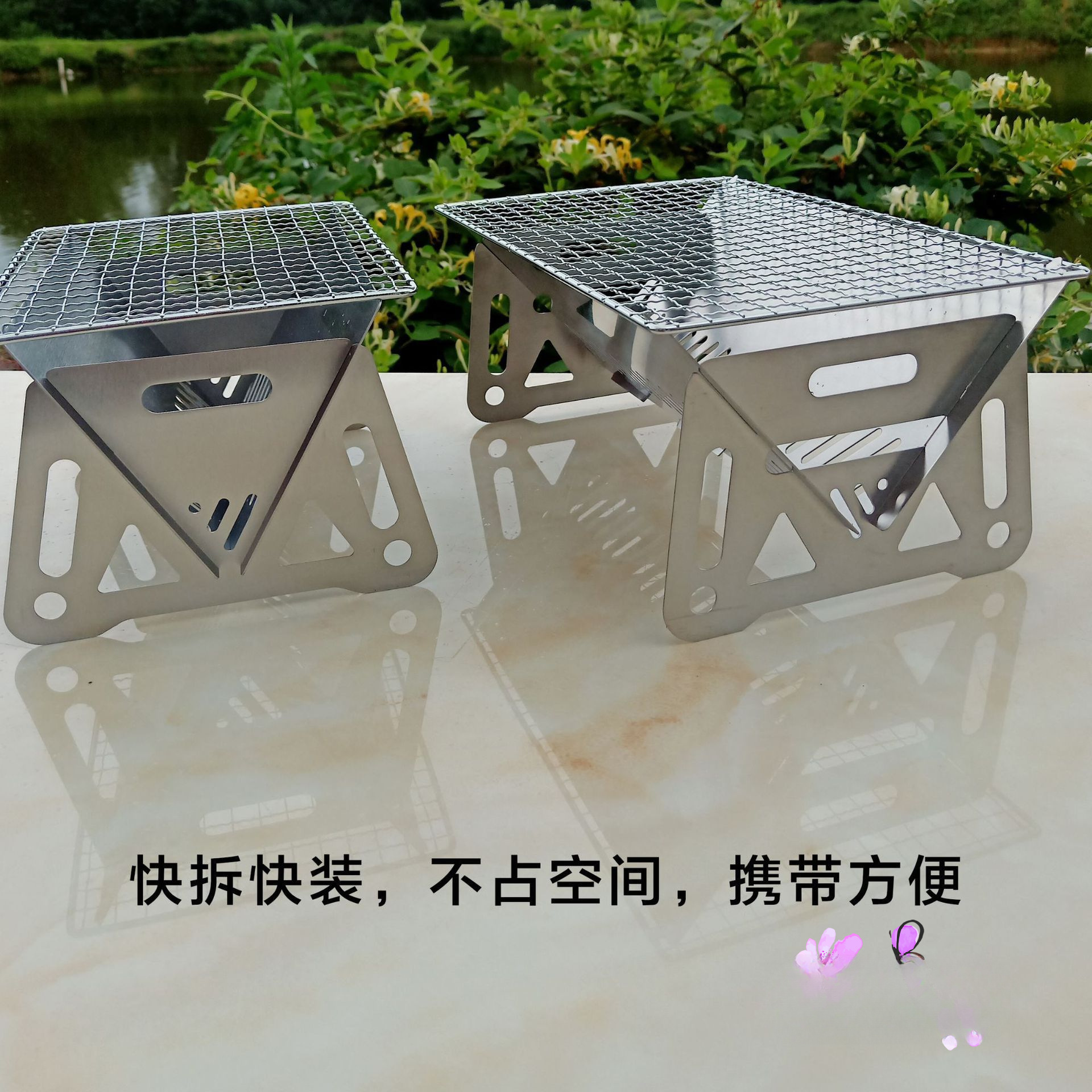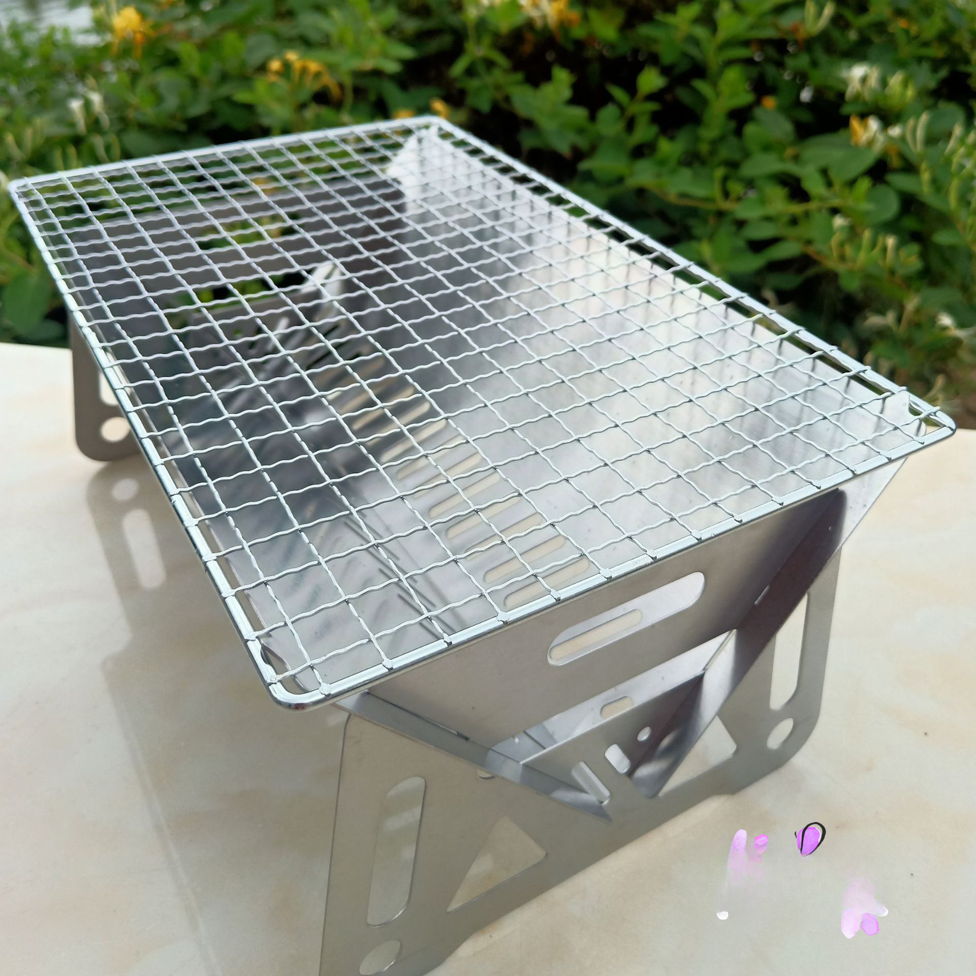 • 스테인레스 스틸 카드 접이식 바베큐 그릴 (소형 + 천 보관 가방)