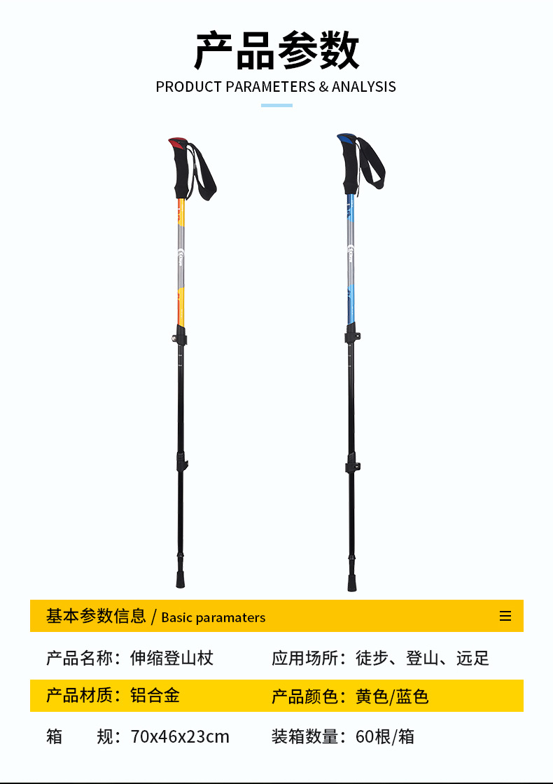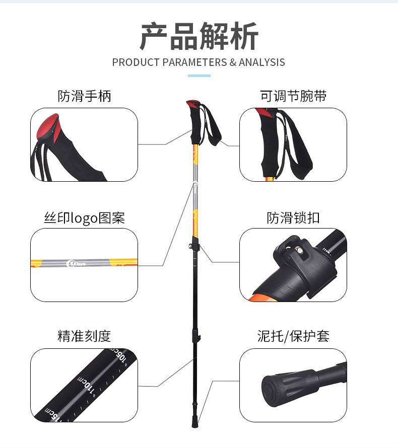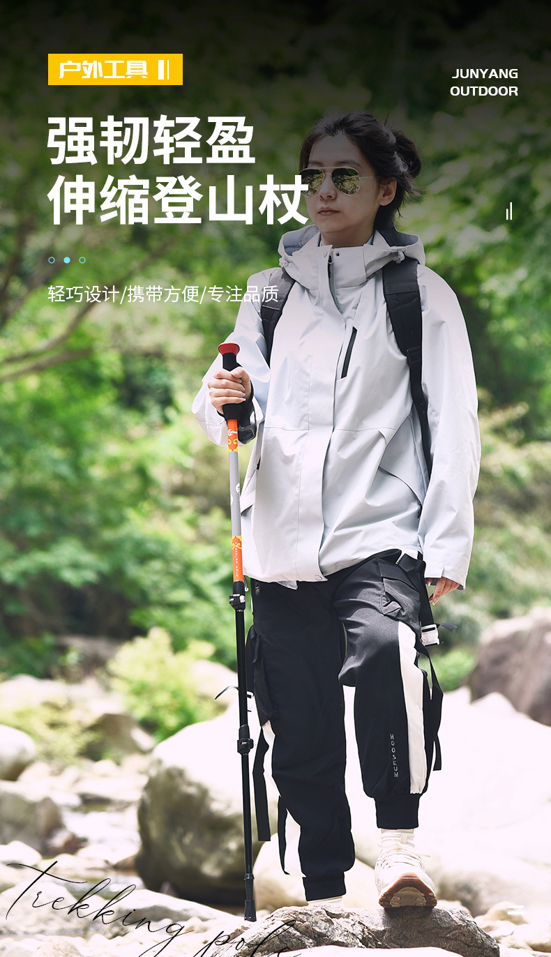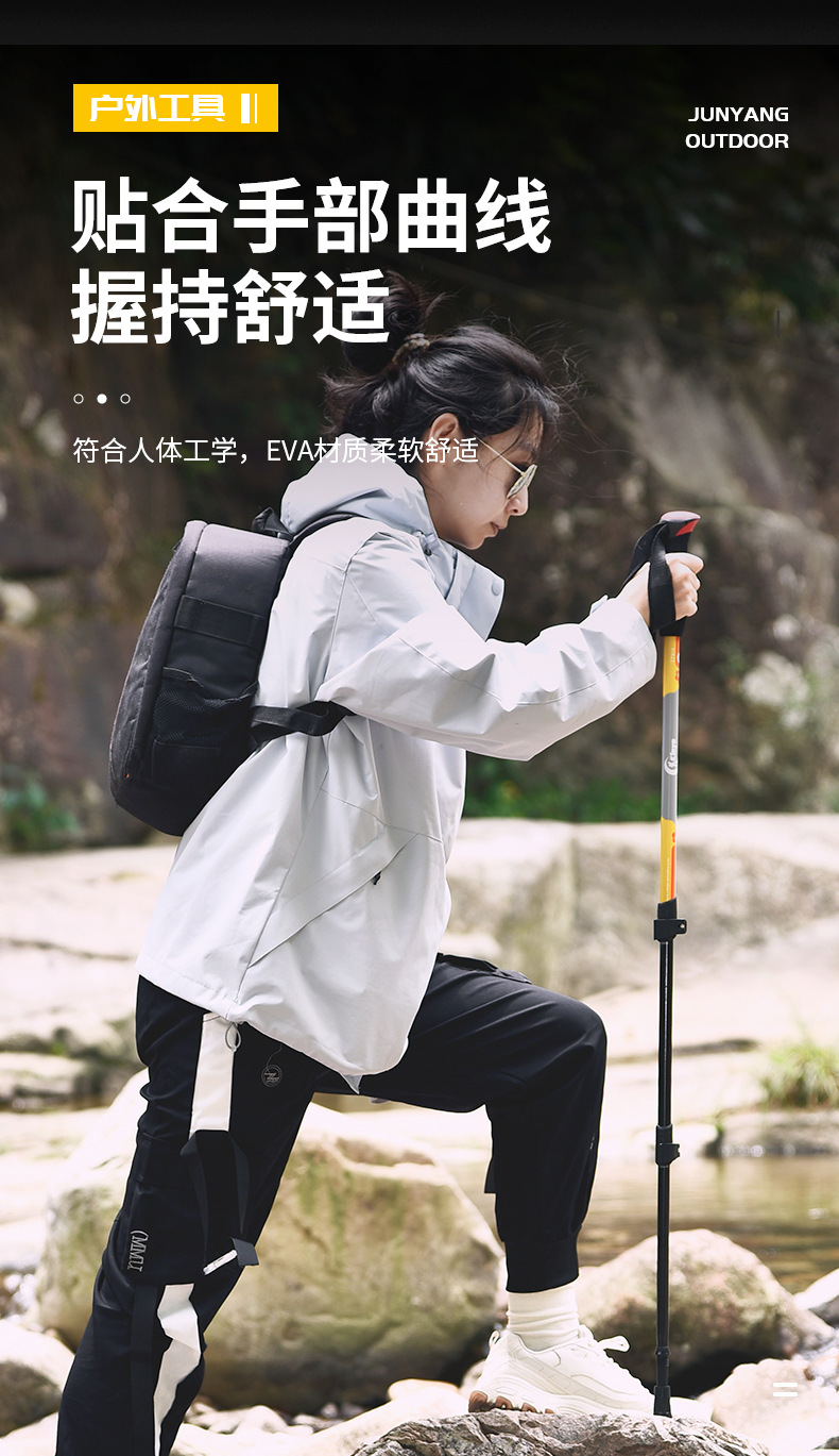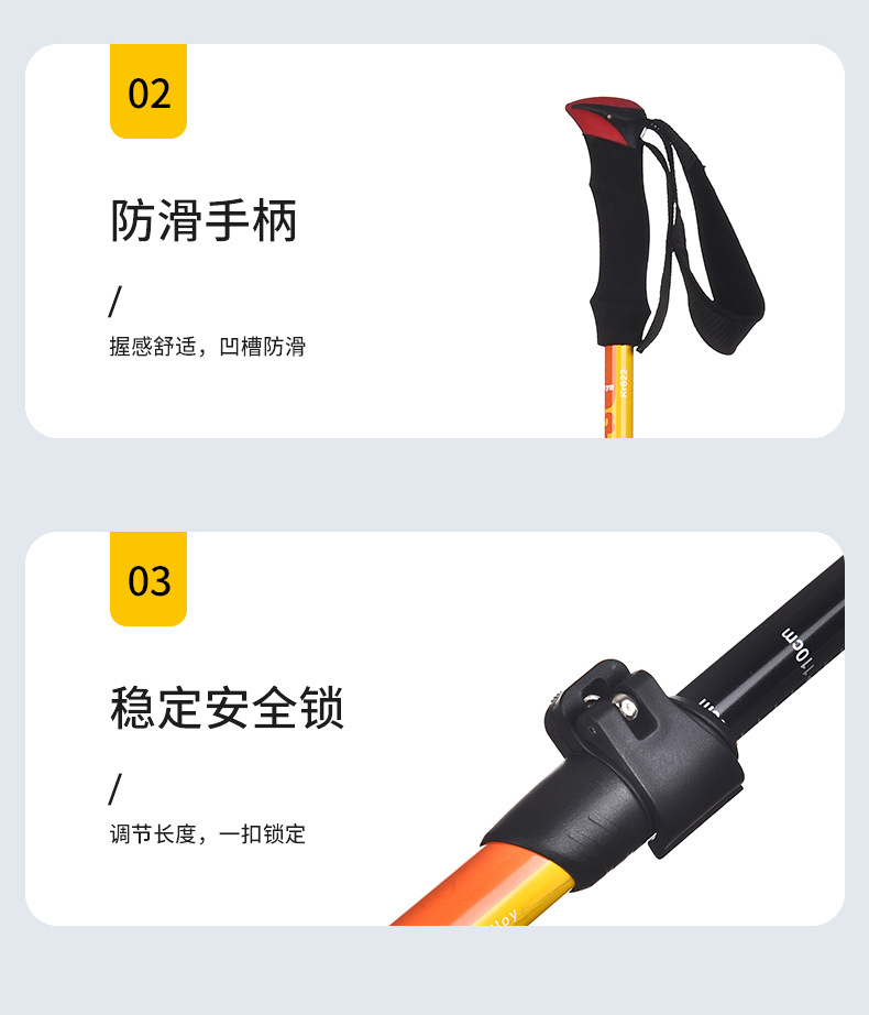 야외용 알루미늄 합금 등산 스틱, 텔레스코픽 외부 잠금 지팡이, 3단 충격 흡수 하이킹 등산 스틱, 제조사 직판스토어 가기