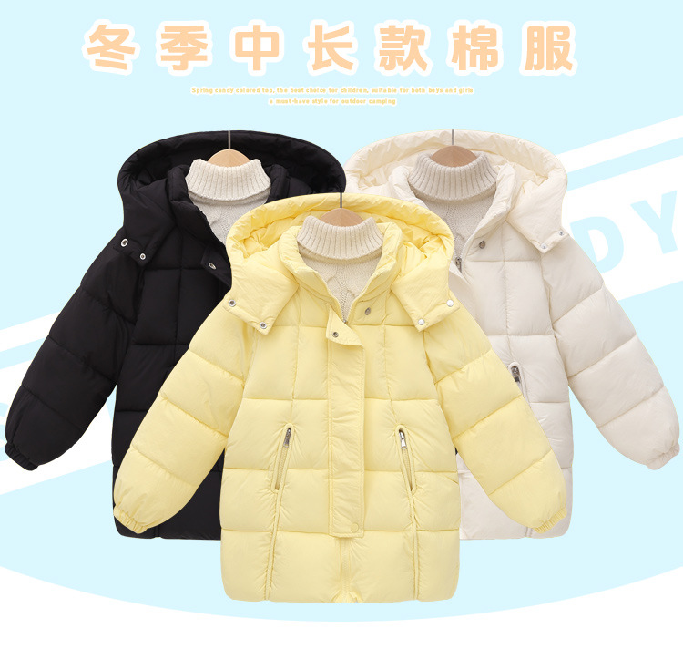 873 아동용 면옷 아동복 면 재킷 중간 길이 면옷 남아 여아 두꺼운 후드 면 재킷 도매스토어 가기
