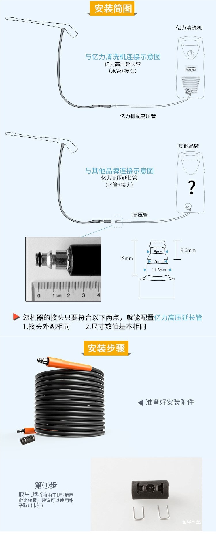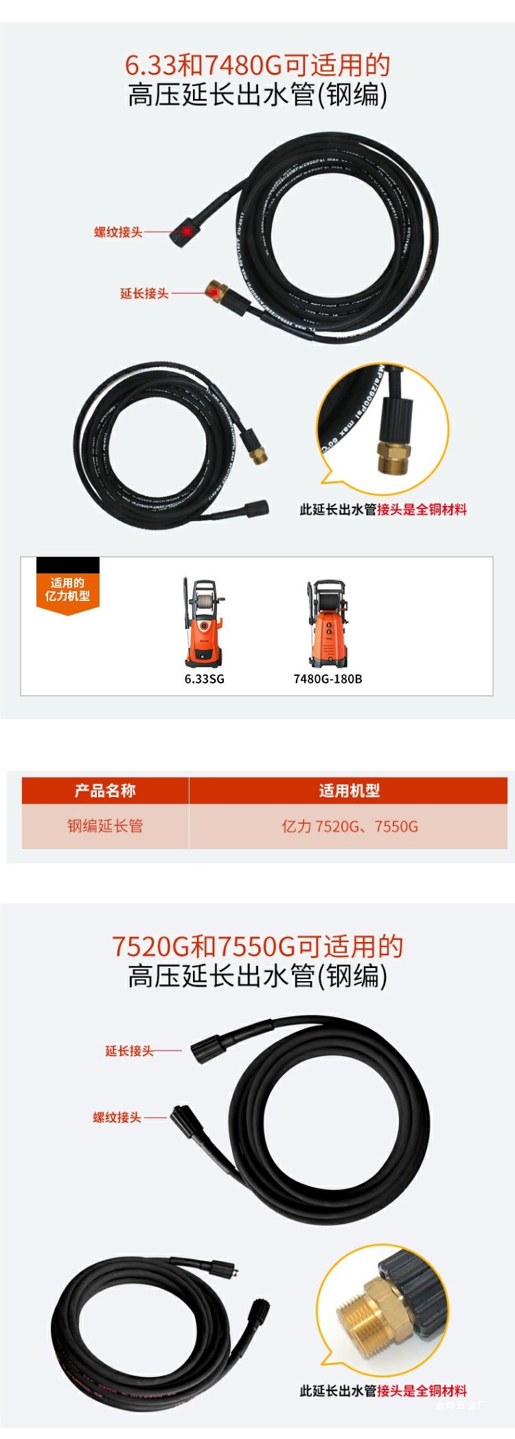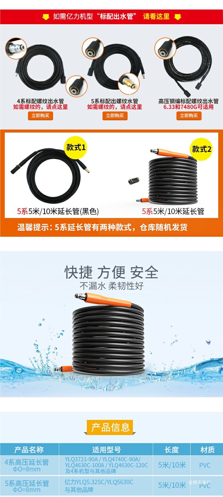 Yili 세차기 고압 배출관 연장 파이프 액세서리 워터 펌프 10.4m 시리즈 5 시리즈 와이어 오리지널 Jinye스토어 가기