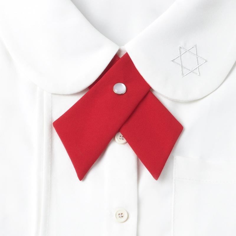 JK 작은 넥타이 학생복 크로스 넥타이 버건디 칼라 꽃 여성용 여자 교복 셔츠 Bowknot
