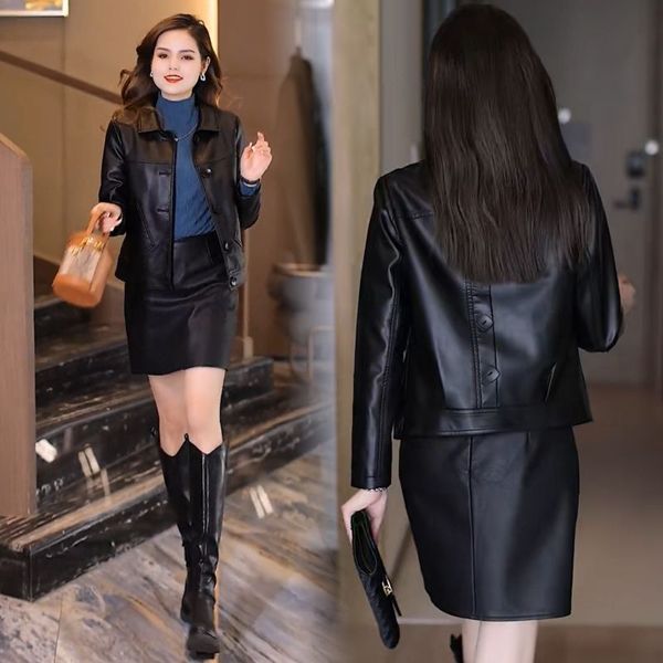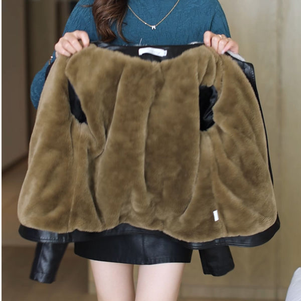 여성을위한 벨벳 두꺼운 짧은 가죽 자켓 2025 가을, 겨울 새로운 스타일 작은 스타일 가죽 자켓 탑 모조 모피스토어 가기