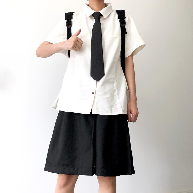 MIMI 넥타이 여성 핸드메이드 학생 솔리드 컬러 기본 블랙 작은 넥타이 짧은 스타일 잘 생긴 캐주얼 다목적 장식 트렌드스토어 가기