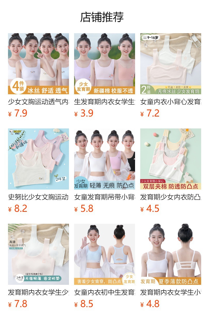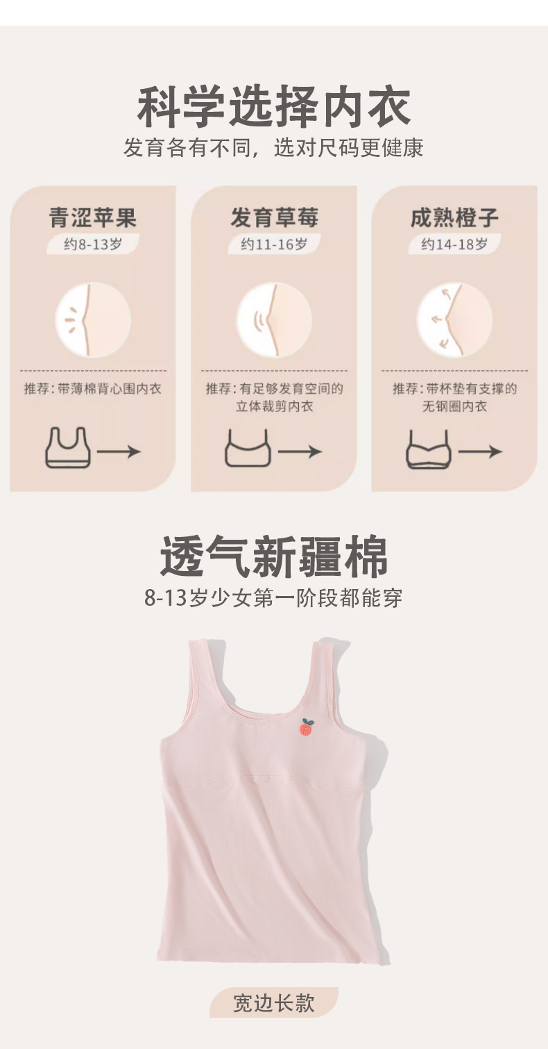 아동 속옷 발달기 학생 여아 조끼 중학생 초등학생 여아 볼록 중간 길이 얇은 중학교스토어 가기