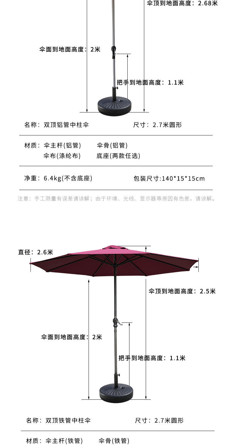 • 두꺼워진 업그레이드 모델 2.7m 싱글 탑 센터 컬럼 우산-[베이스 없음]