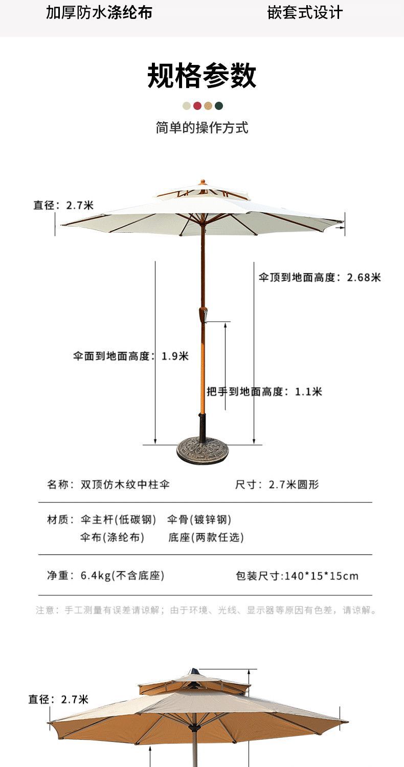 • 2.7m 수동식 원목봉 중간기둥 우산 + [이중상판+베이스]