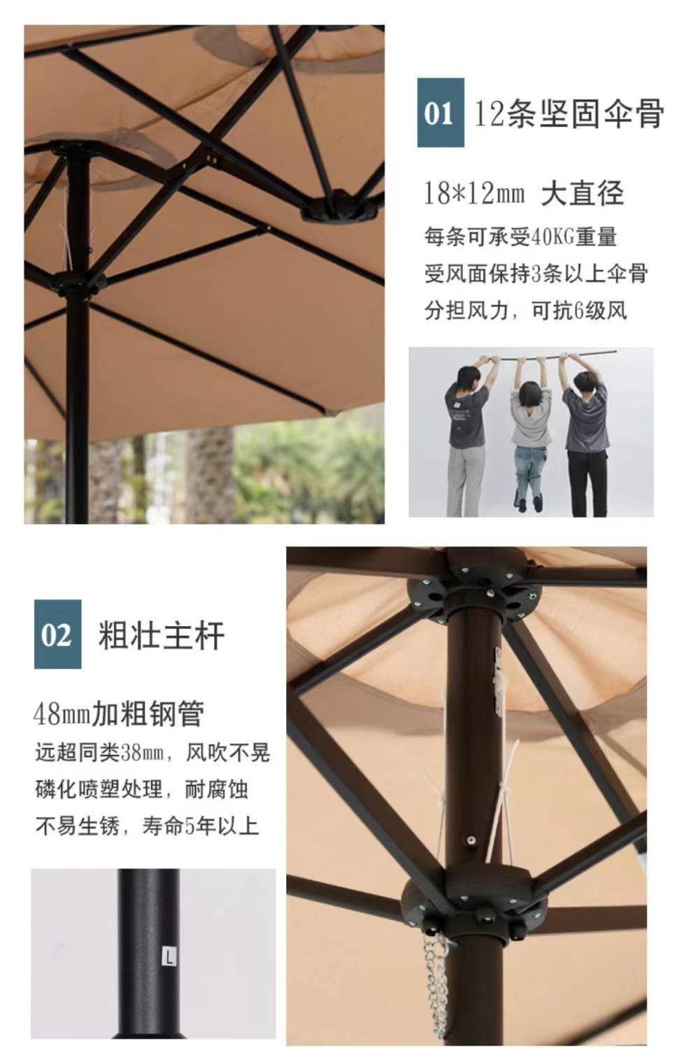 야외 상업용 대형 태양 우산 야외 카페 테라스 우산 인터넷 인기 스톨 우산 3 헤드 중간 기둥 우산 코트야드 햇빛