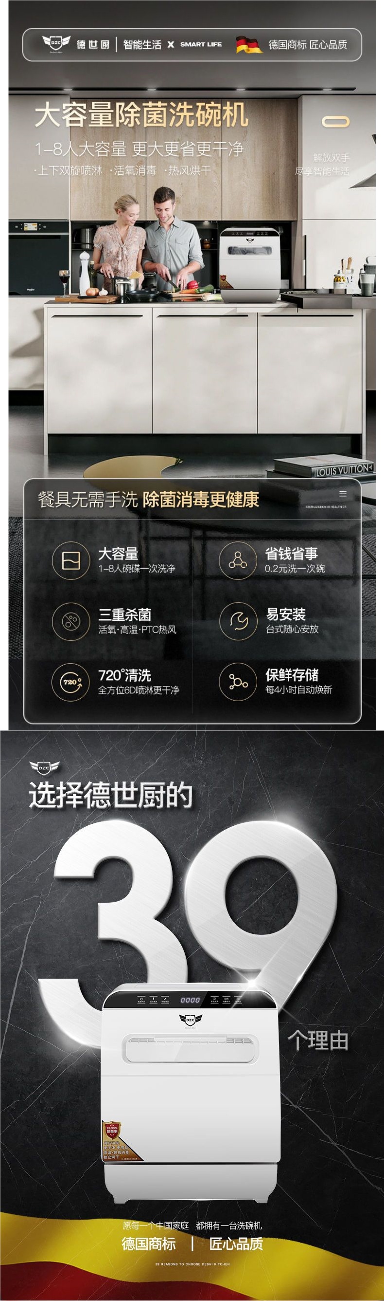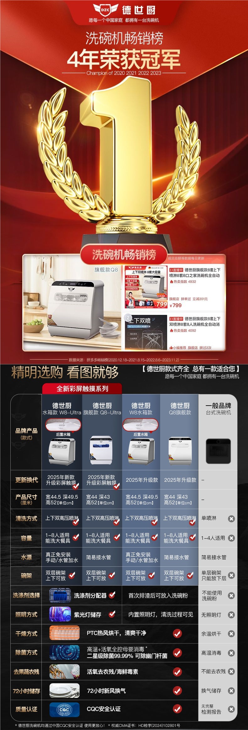 Deshikuchu Q8 임베디드 식기 세척기 가정용 소형 8인용 지능형 자동 위아래 이중 스프레이 건조 데스크탑스토어 가기