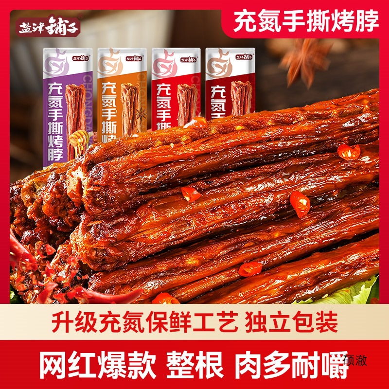 Yanjin 상점 질소로 채워진 손으로 찢어진 로스트 넥으로 갈망을 덜어줍니다. 검은 오리 맛 그물 빨간색 비 공기 건조 오리 목 간식 스낵 식품스토어 가기