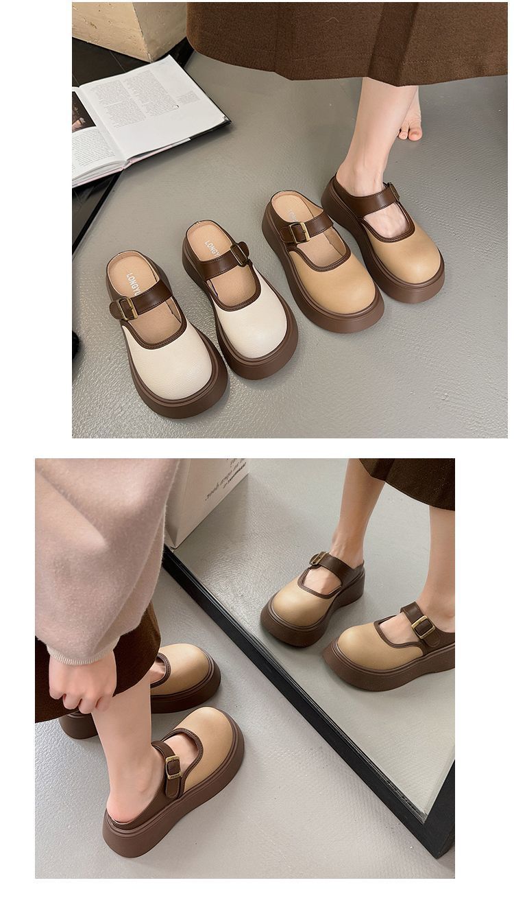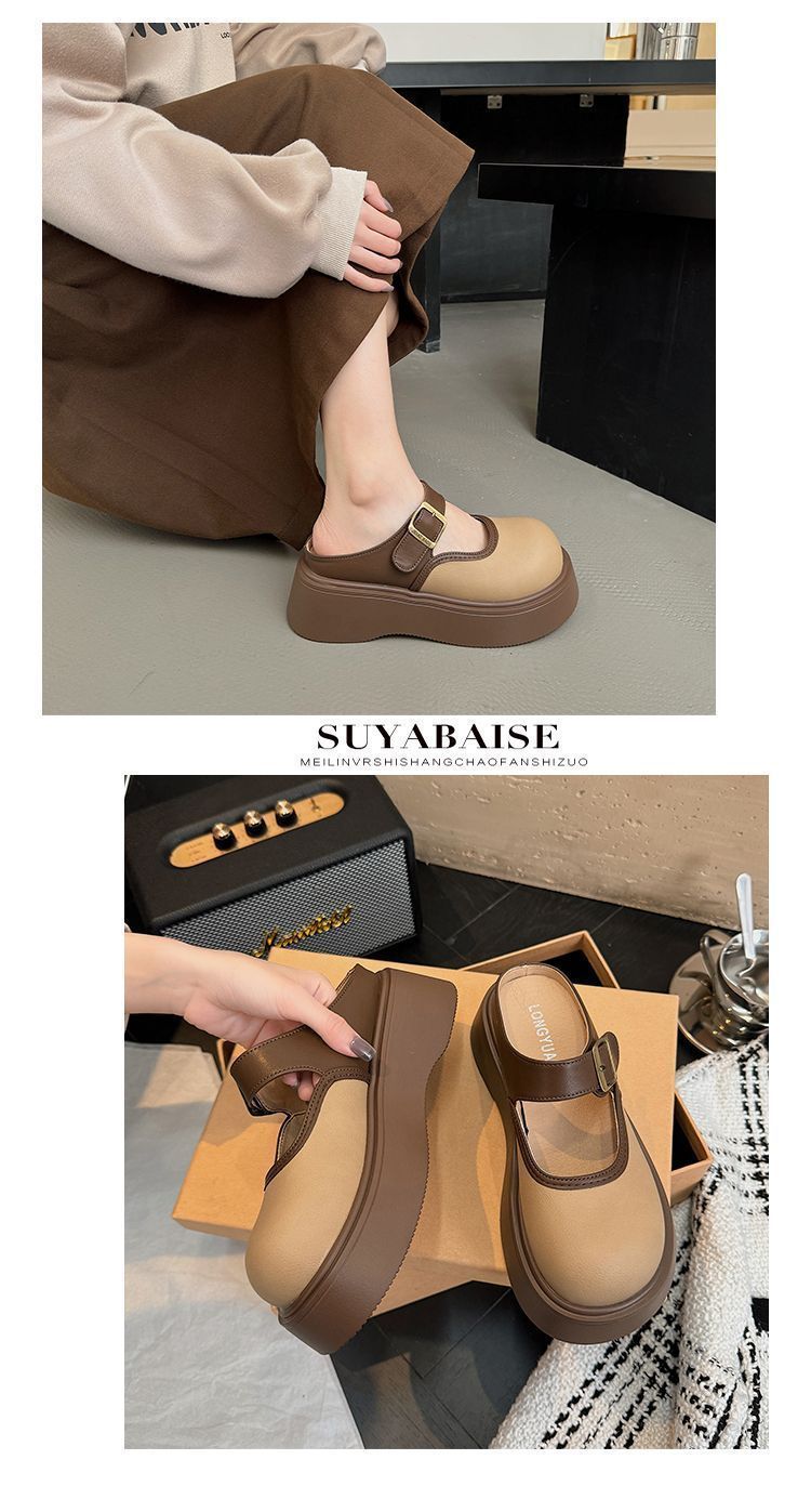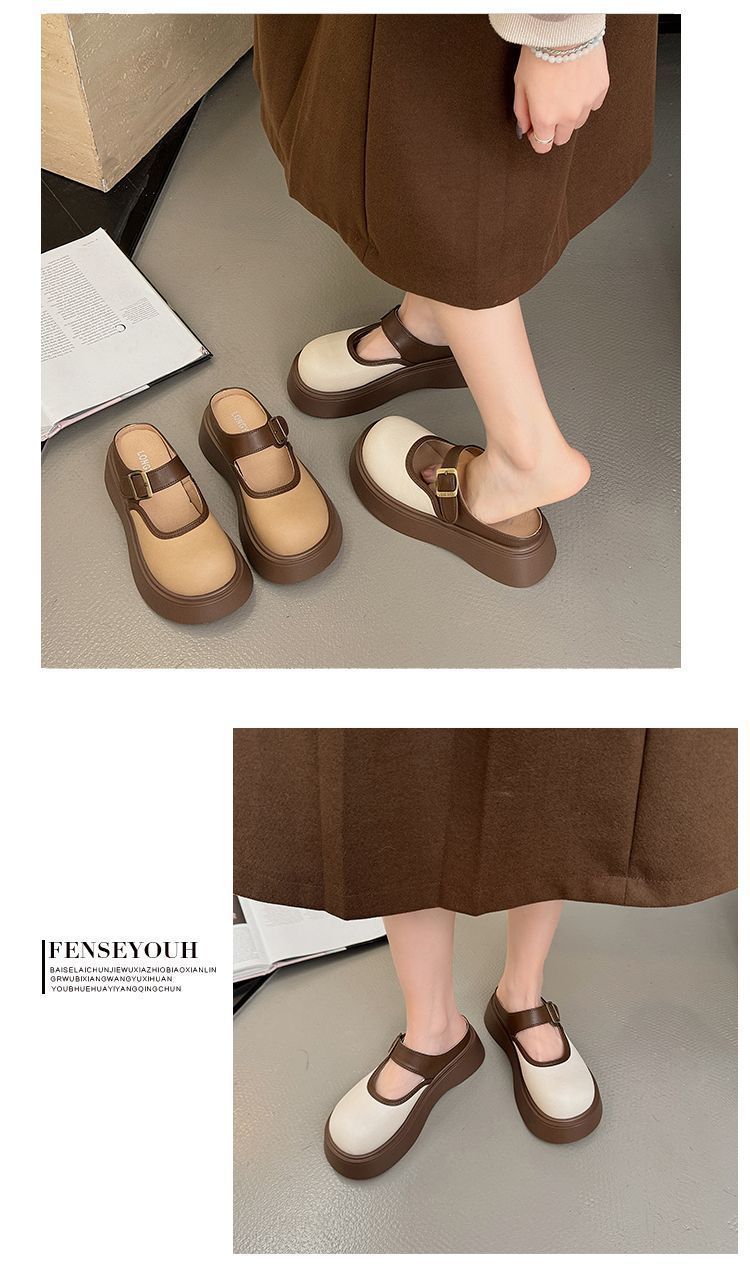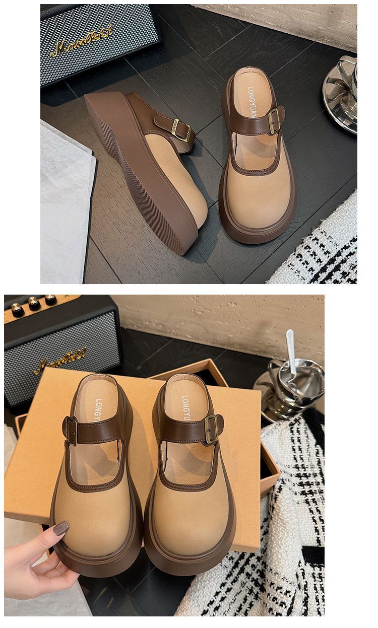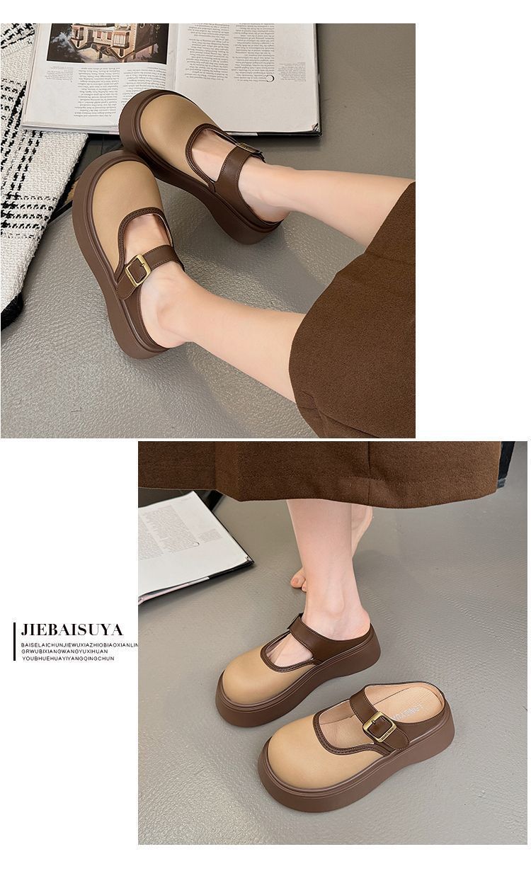 여성용 Birkenstock 작은 슬리퍼 2025 새로운 봄 두꺼운 밑창 키가 큰 Baotou Mary Jane 인터넷 연예인 패션 하프 슬리퍼