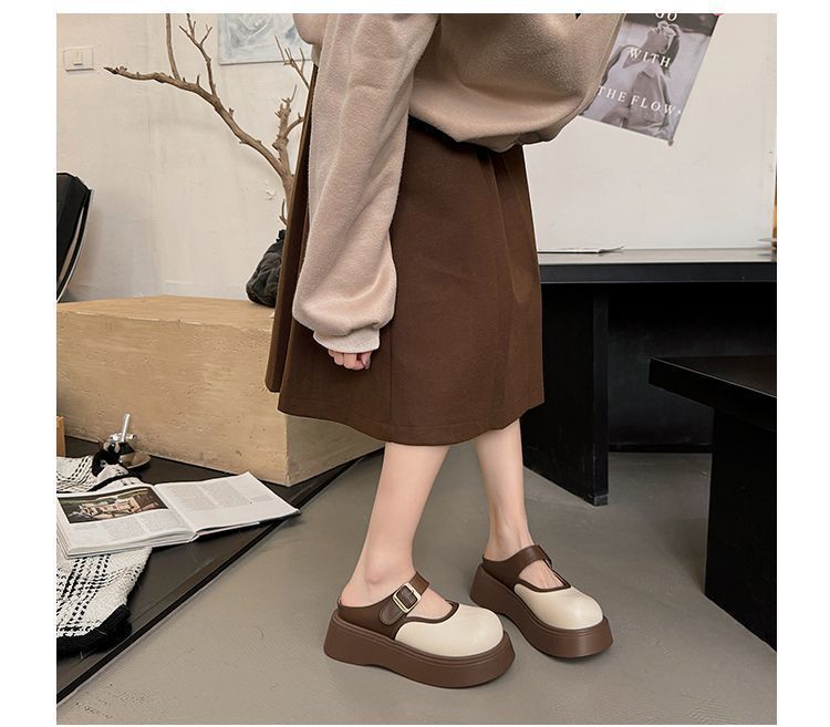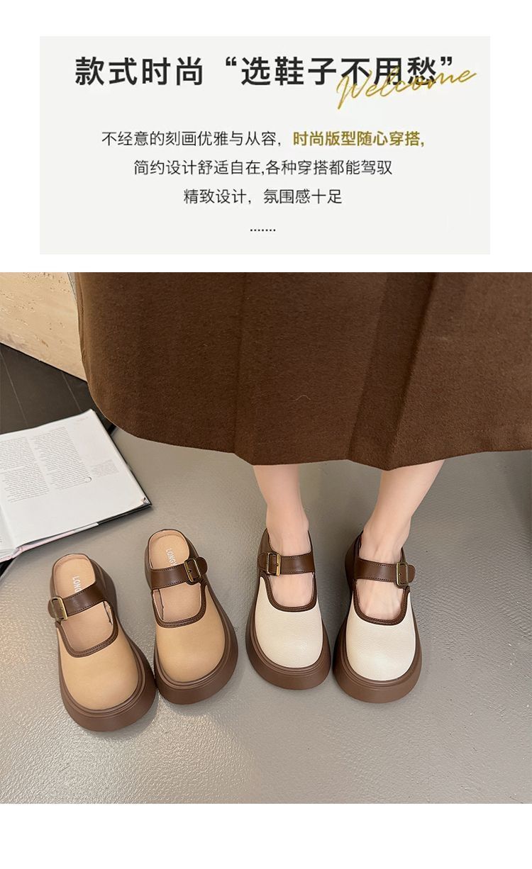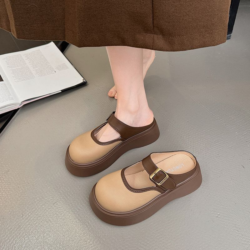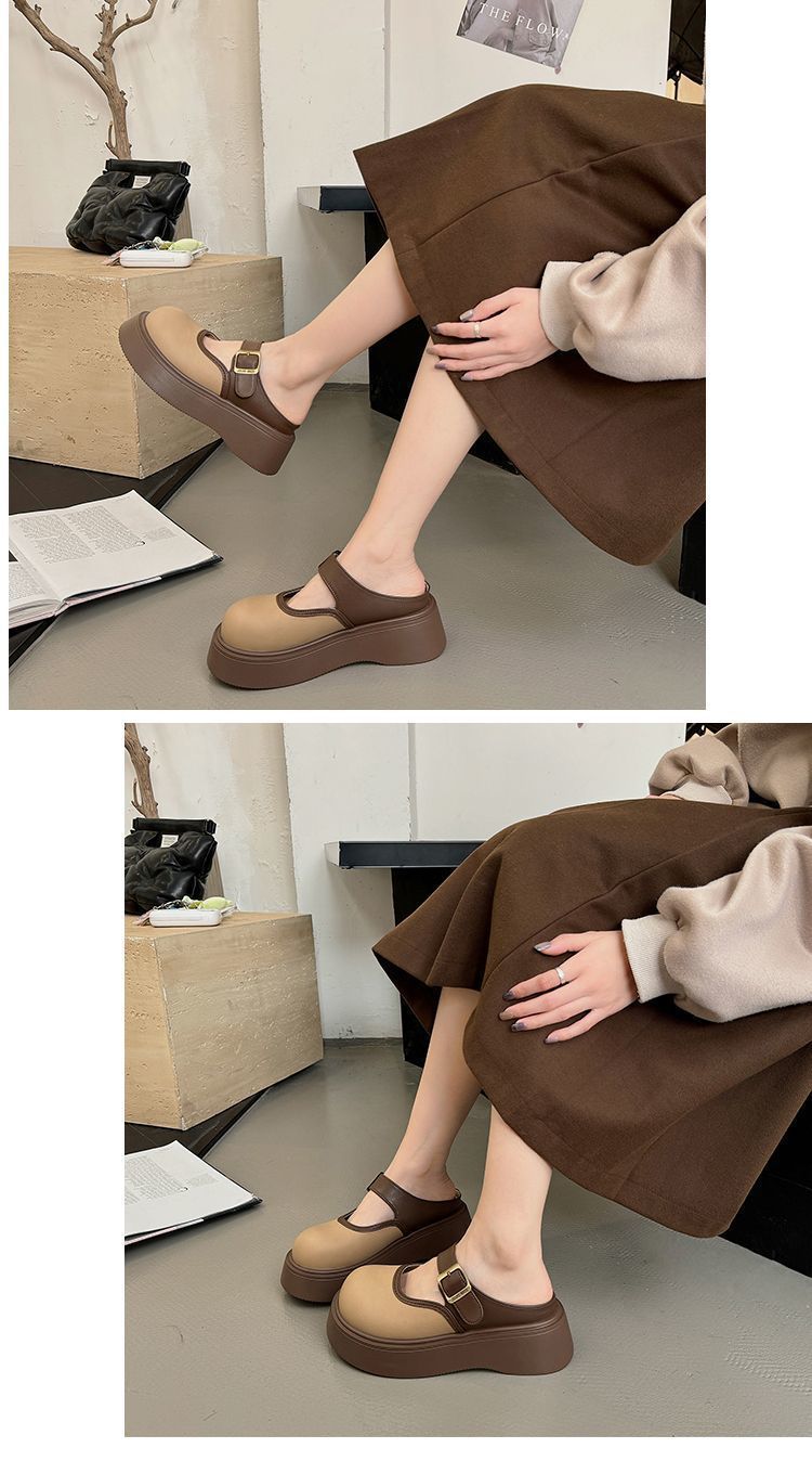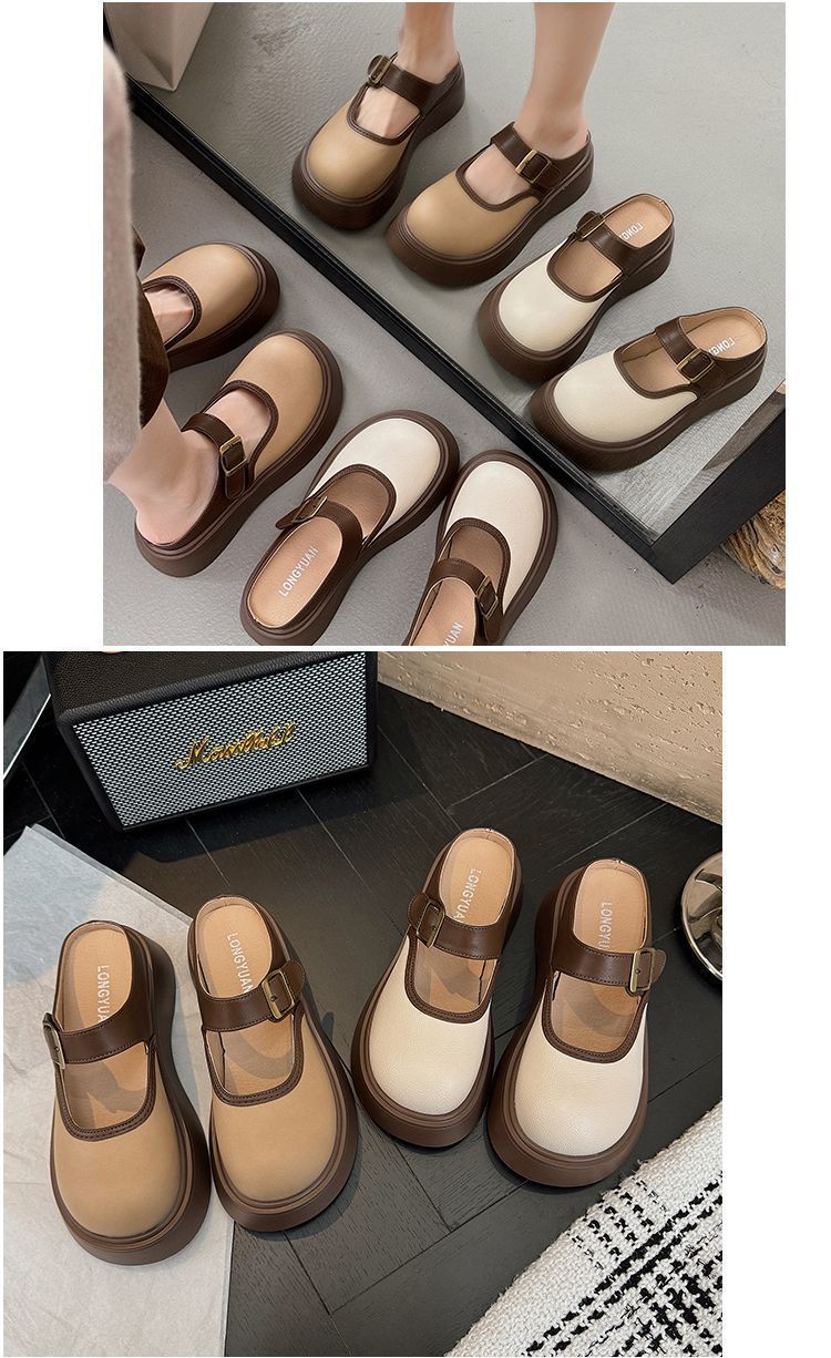 여성용 Birkenstock 작은 슬리퍼 2025 새로운 봄 두꺼운 밑창 키가 큰 Baotou Mary Jane 인터넷 연예인 패션 하프 슬리퍼